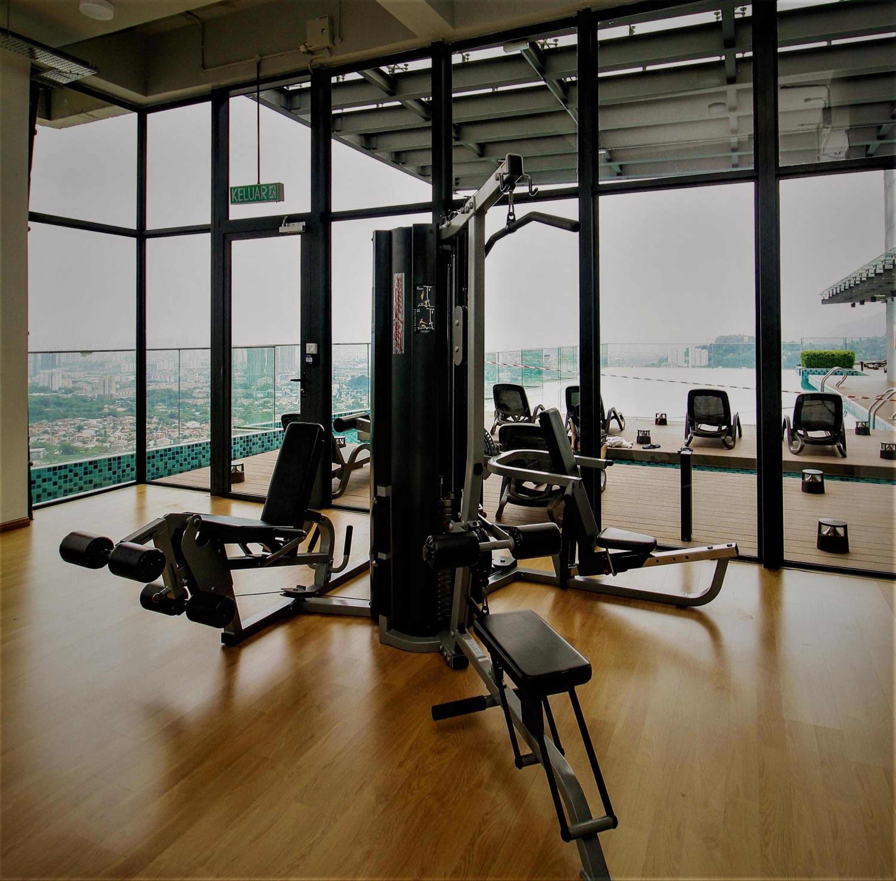 Indulge in a sauna, hot tub, and spa facilities at MLH Designer Duplex Suite @ EkoCheras. Unwind in style with city views, a patio, and a swimming pool.