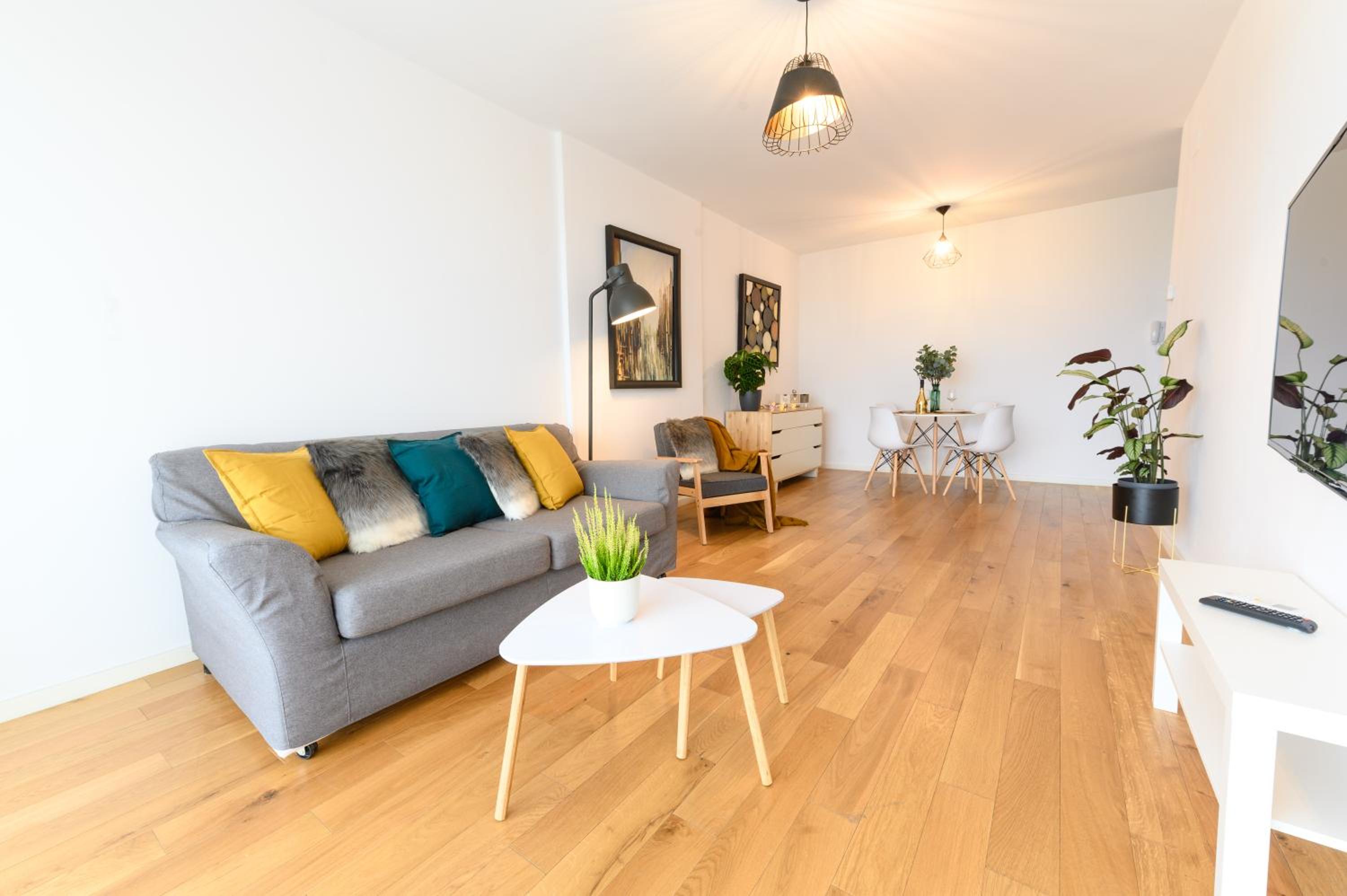 Spacious, clean and well equipped. Several supermarkets around. Situated in a residential and safe area. We found parking on the street.