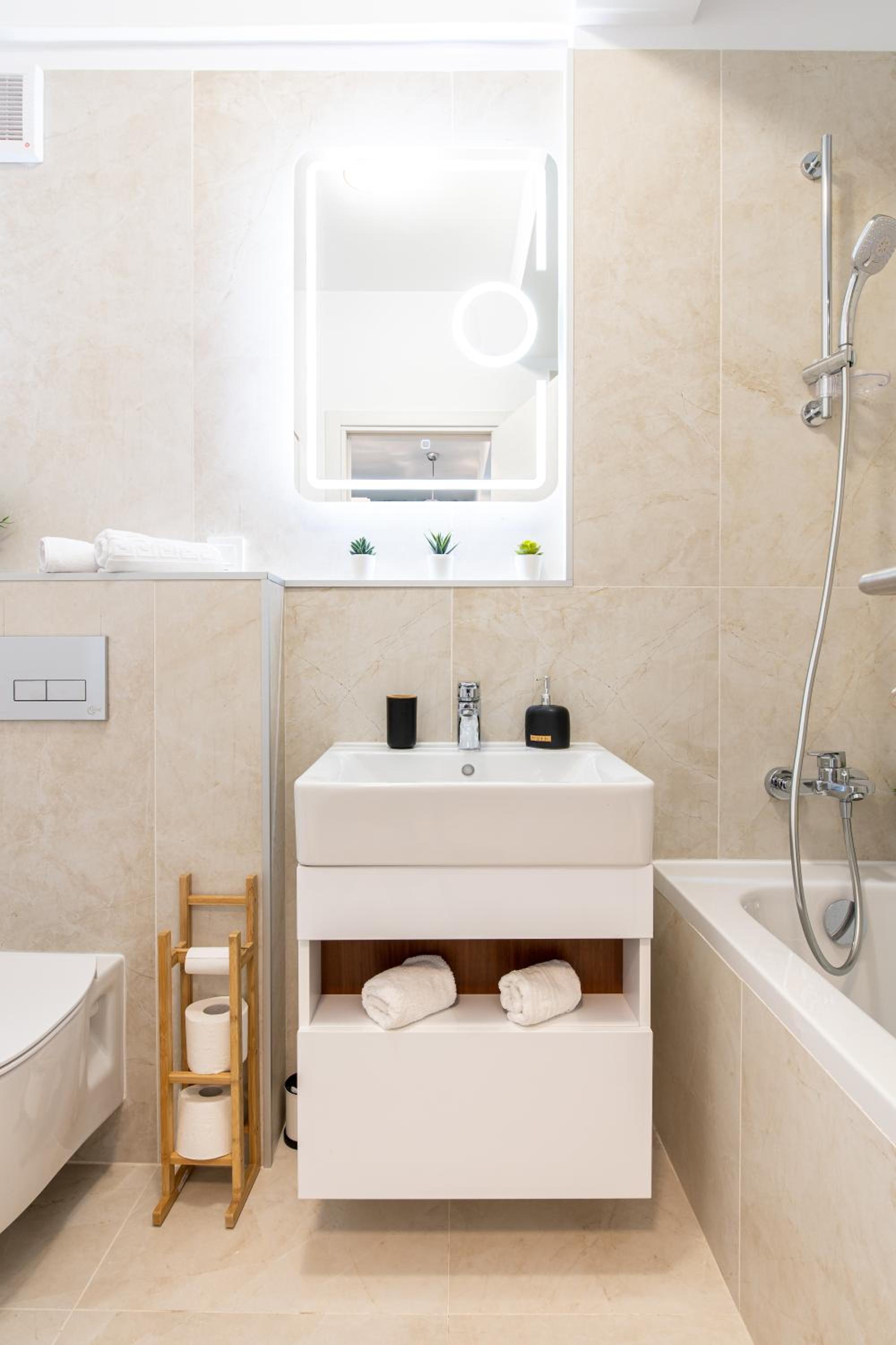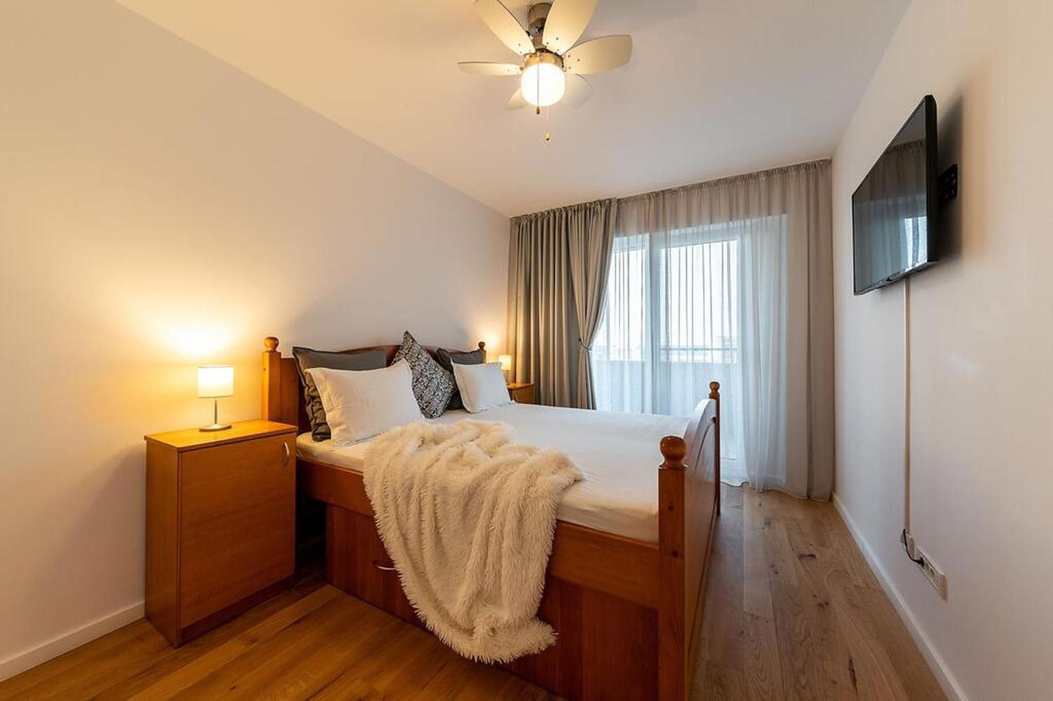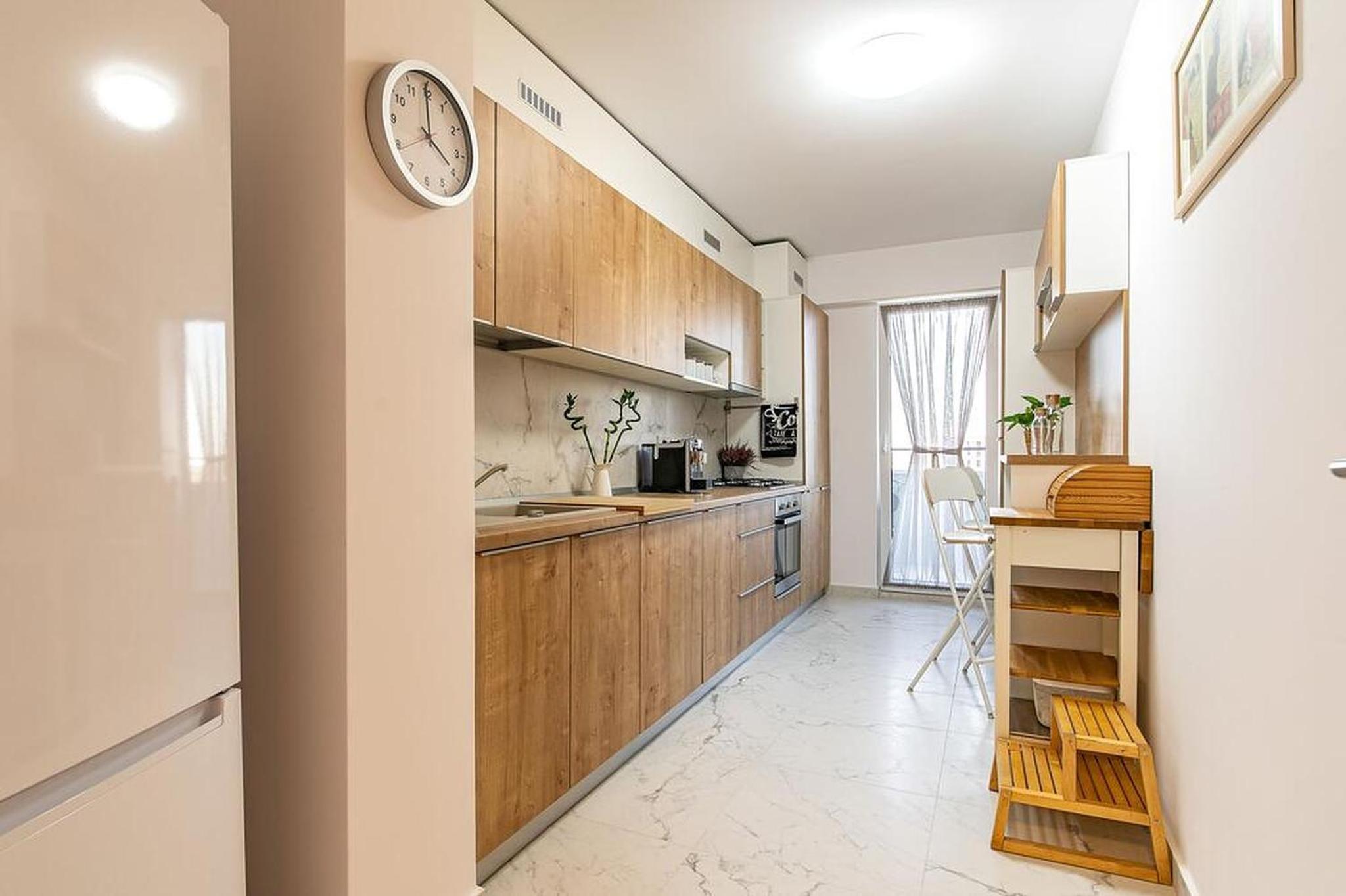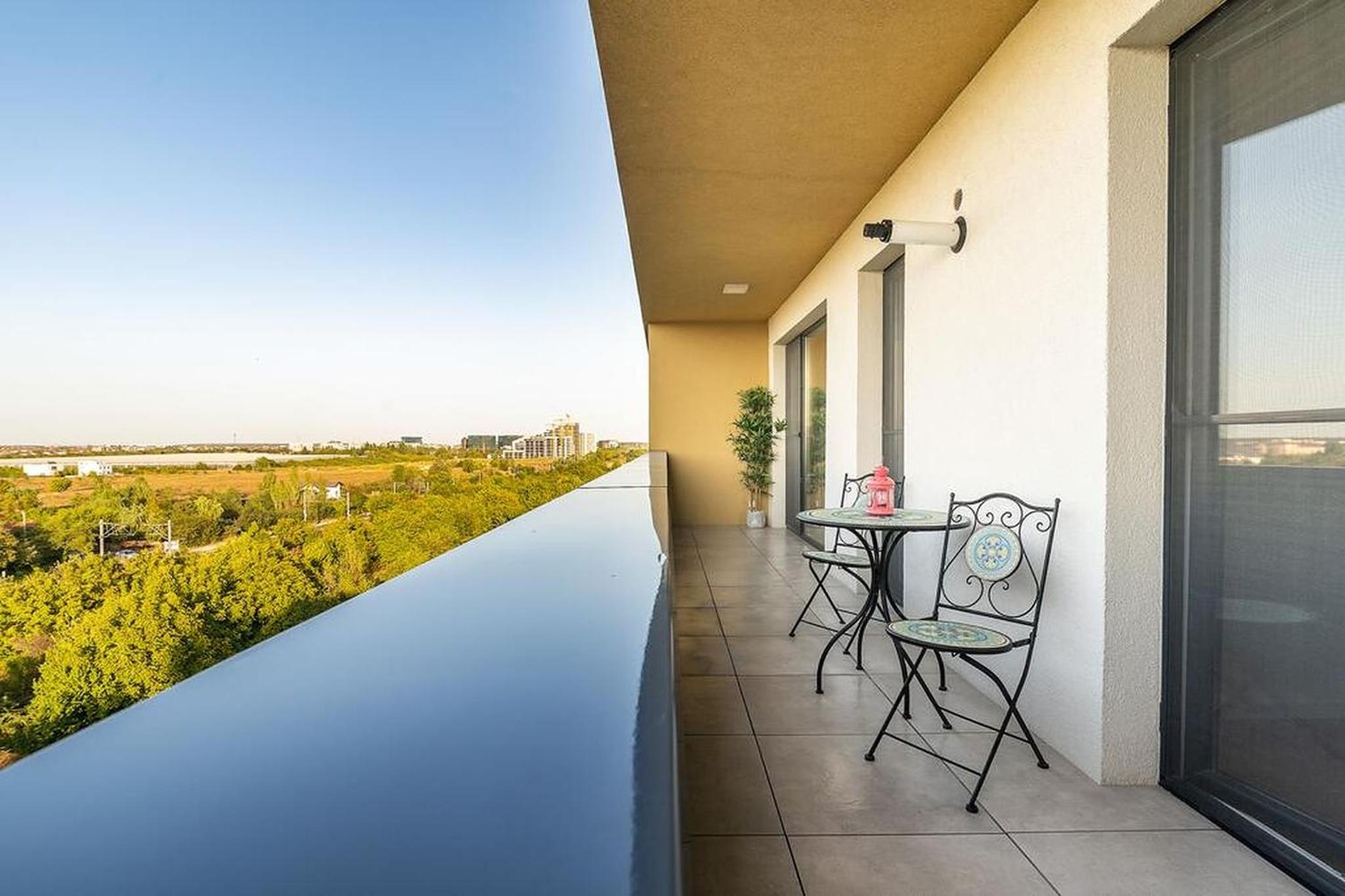 Apartment in einem neuen und modernem Wohnkomplex, 6.Etage, Lift, schneller Check-in/Check-out, moderne Ausstattung, großer Balkon mit Panoramablick, Klimaanlage im Wohnzimmer, sehr sauber, Bus- und Straßenbahnhaltestellen 5 Minuten entfernt, Metrostation 1 km entfernt und durch Bus und Straßenbahn schnell erreichbar, Promenada-Mall in der Nähe der Metrostation, Supermärkte und Restaurants ungefähr 100 m entfernt, großer Park in der Nähe