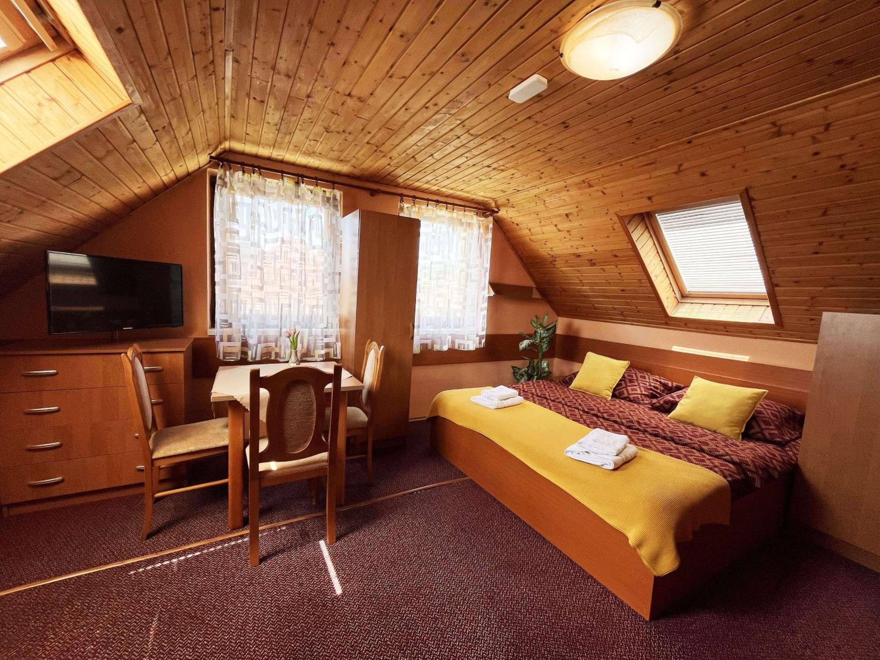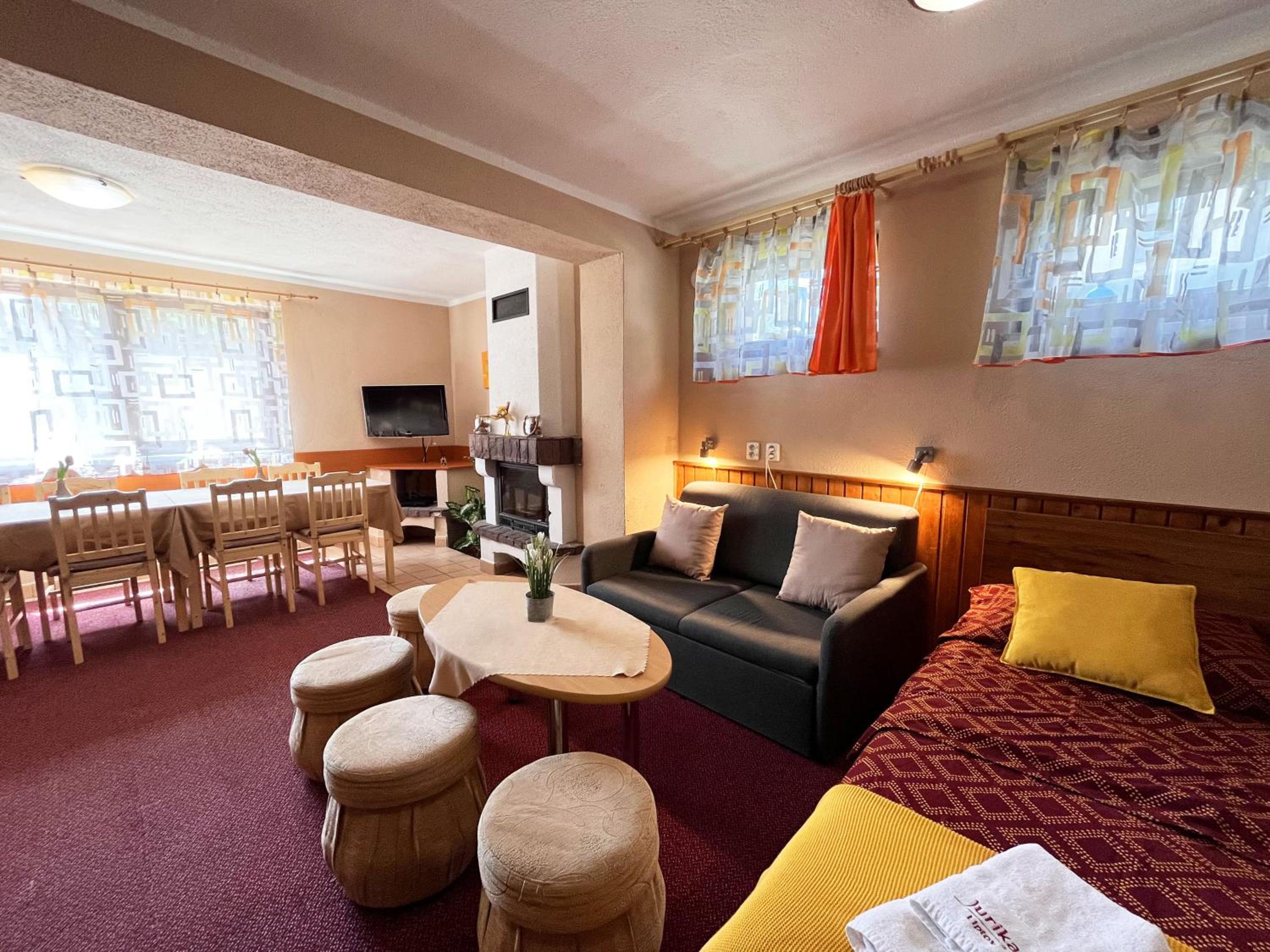 Jurika Liptov, a recently renovated aparthotel in Liptovský Mikuláš, offers a range of beautifully designed units with private entrances, dining areas, fireplaces, and ovens. Enjoy the comfort of a seating area, flat-screen TV, and free WiFi in every unit. Some rooms even feature balconies with garden views, providing a serene retreat for guests.