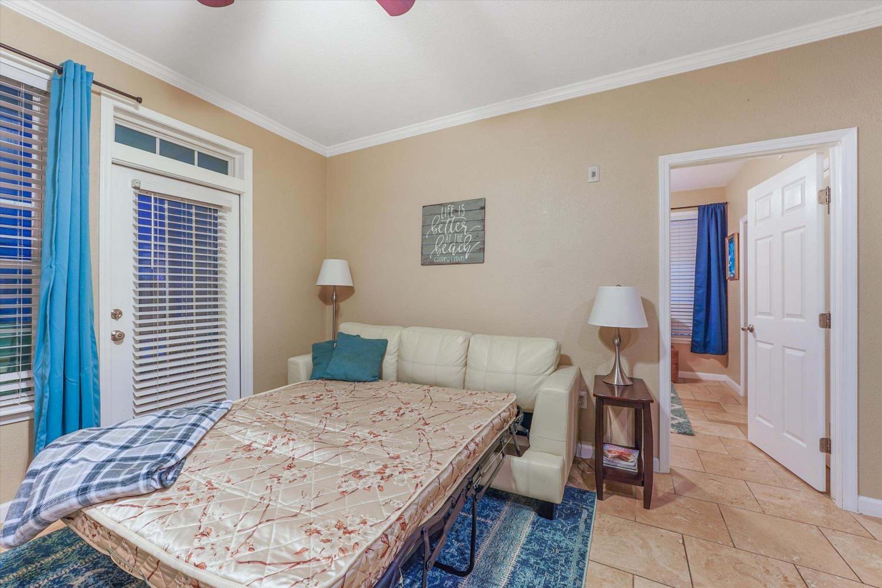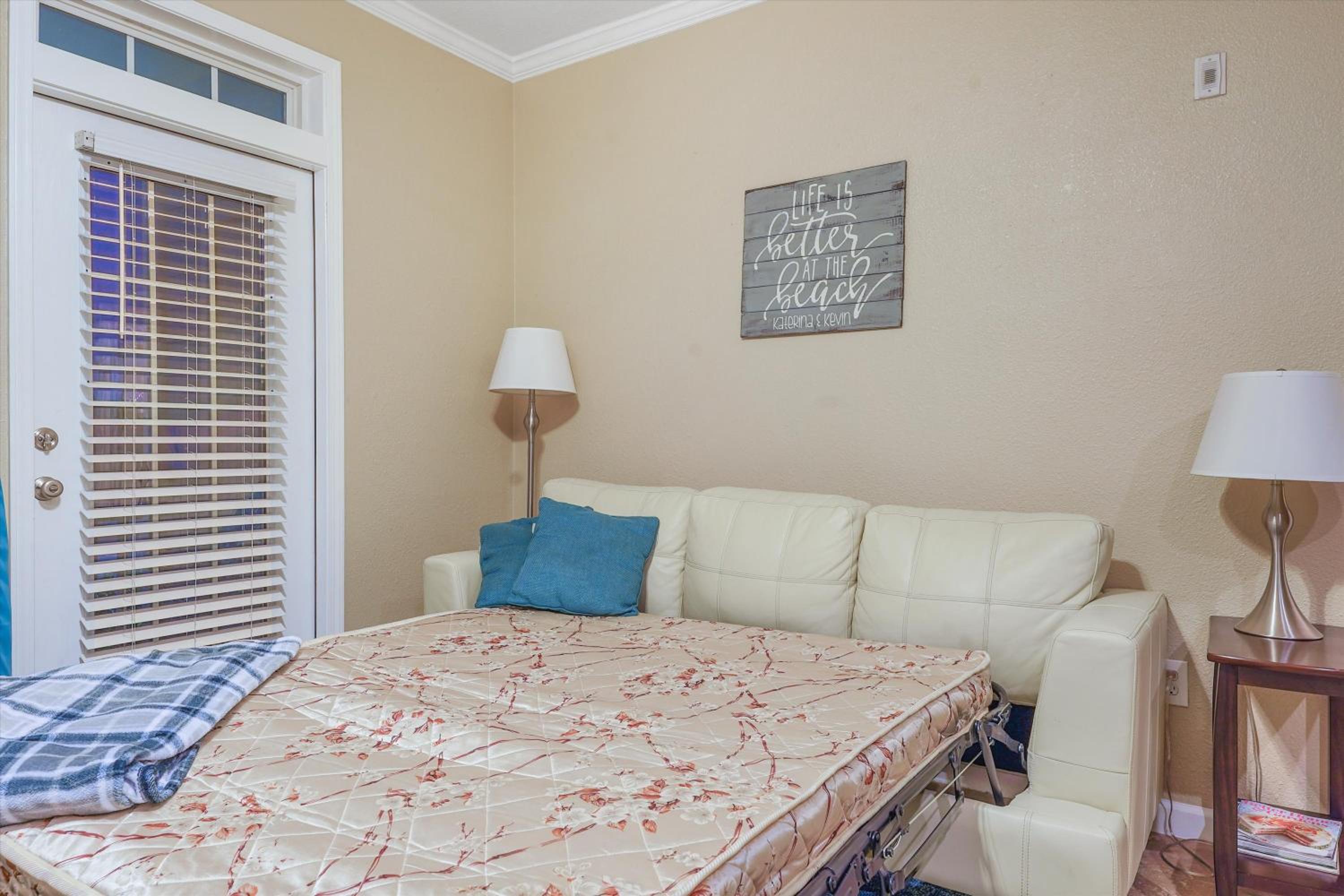 Great location!!! The condo was nice, the pools were great, and the property manager was responsive with my two questions. The main bed was very comfy, the kitchen and bathroom are roomy and had what we needed.