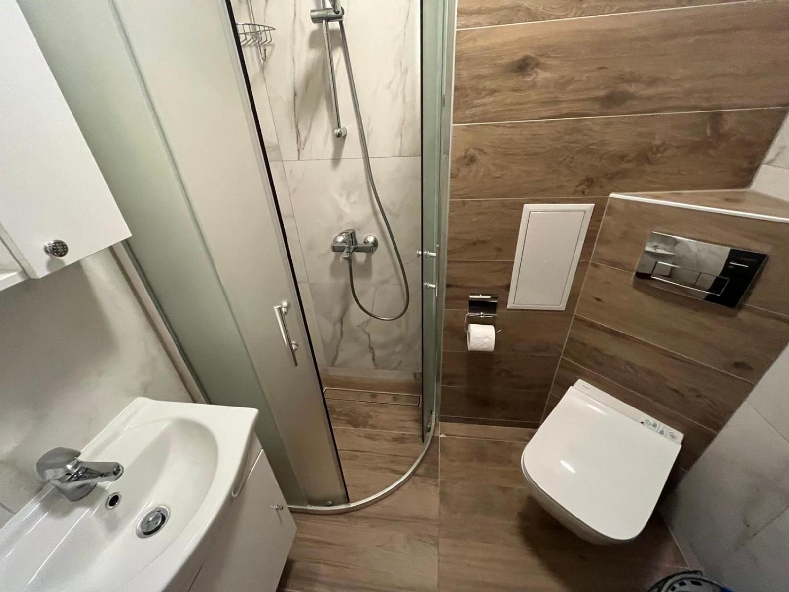 Location is very good, the center is 15 min by foot. There is bus and metro station in 5 min walk. A grocery shop is only 2 min away. Hot water is okey, the room was very spacious.