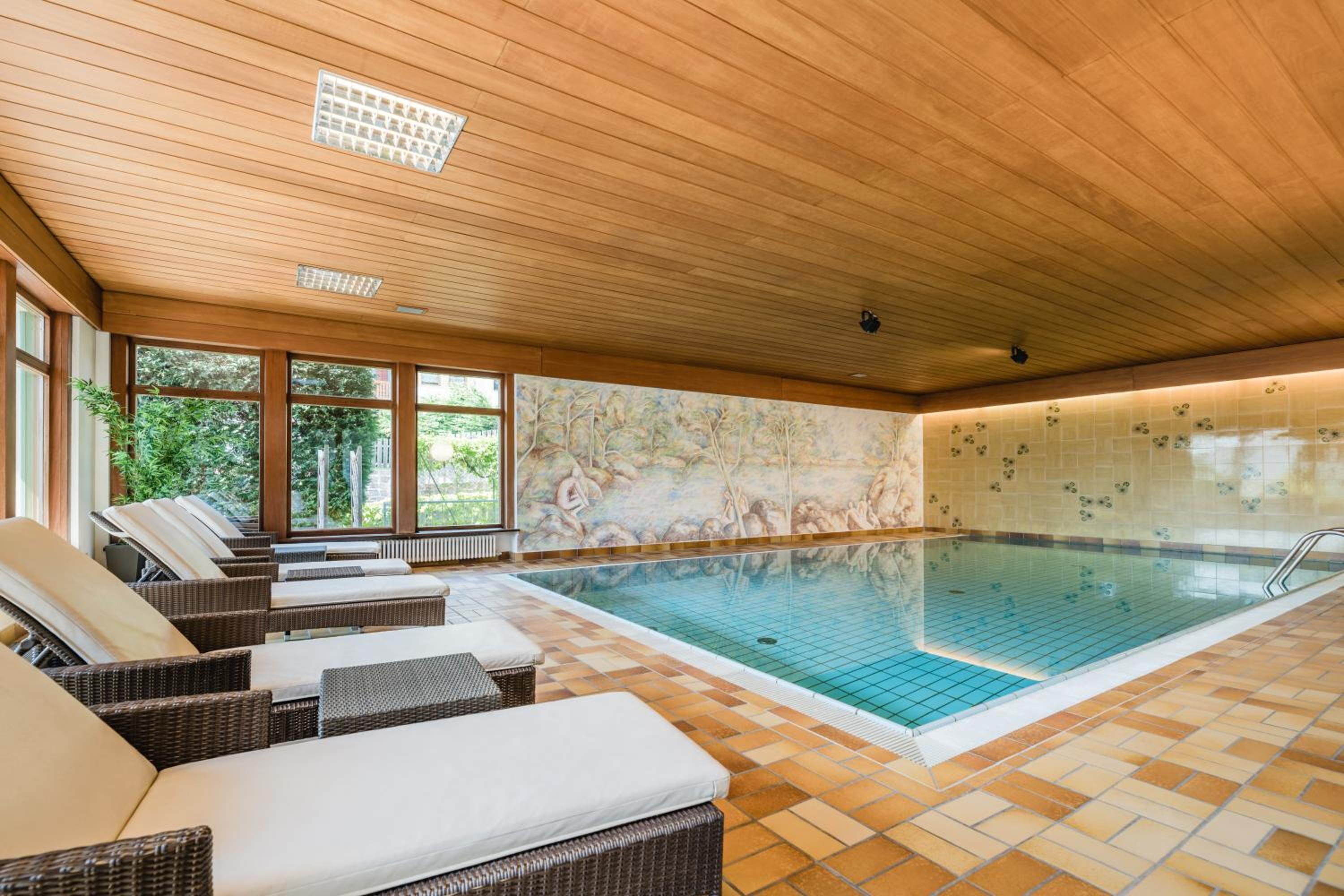 Das kleine Hallenbad im Erdgeschoß war warm und einladend und von 7 bis 19:30 Uhr rund um die Uhr verfügbar.