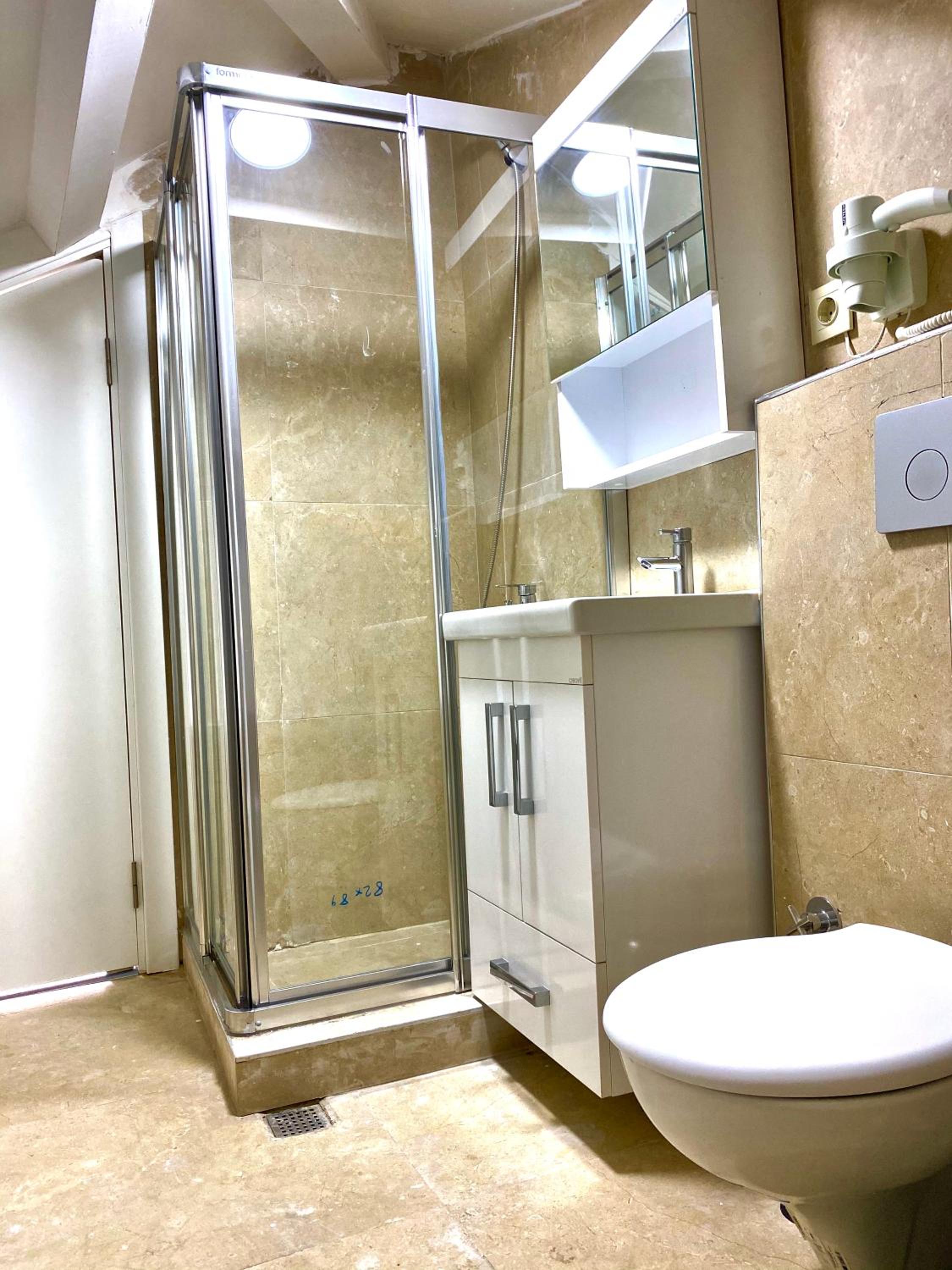 The temperature was too high in the room because of the floor heating and you couldn’t set it lower so we had to sleep with all of the windows open.