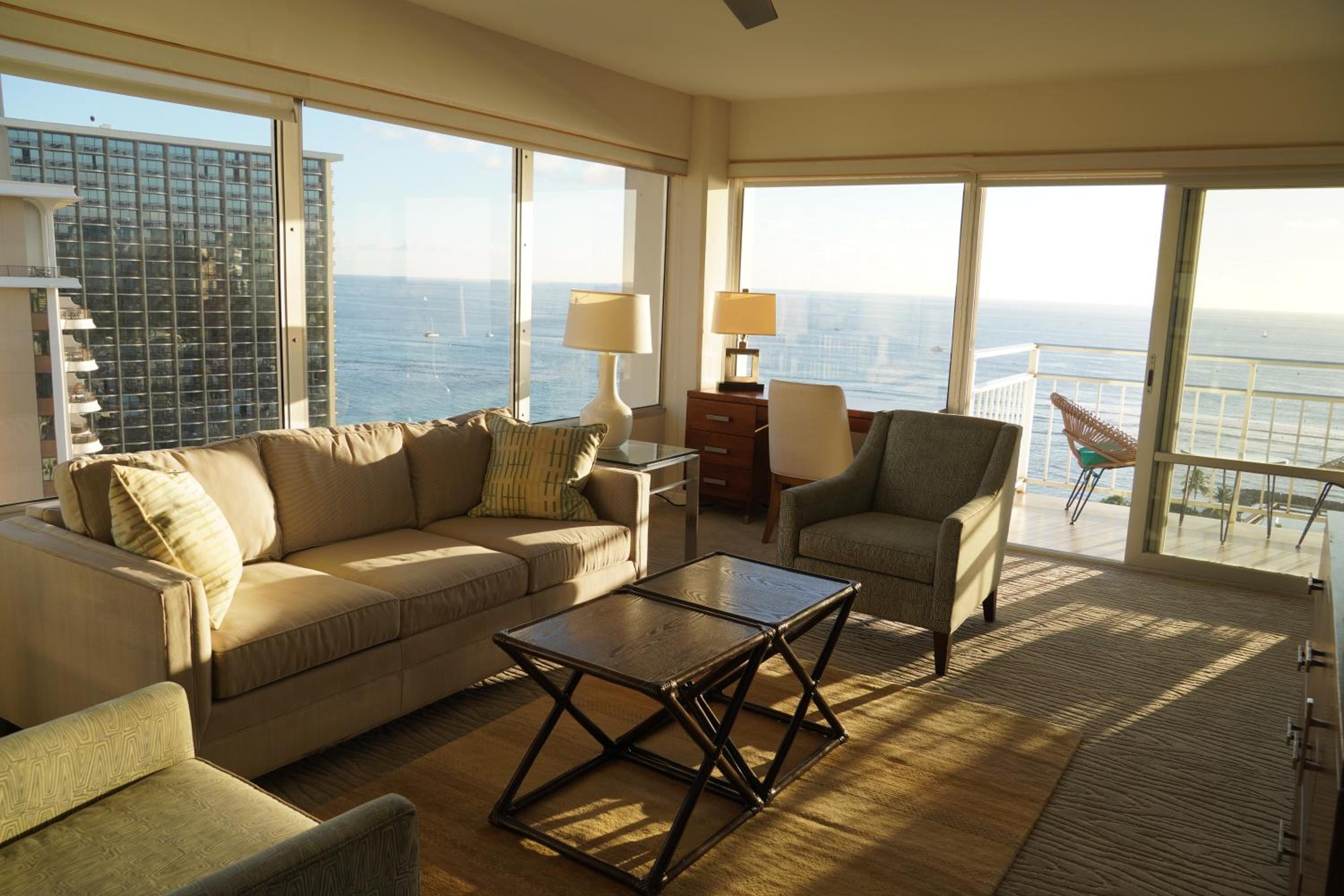 Experience the beauty of Waikiki at New Hotel Condo 2bed 2bath with a fantastic ocean view. Relax on the balcony and soak in the sea views while enjoying the comfort of air conditioning.