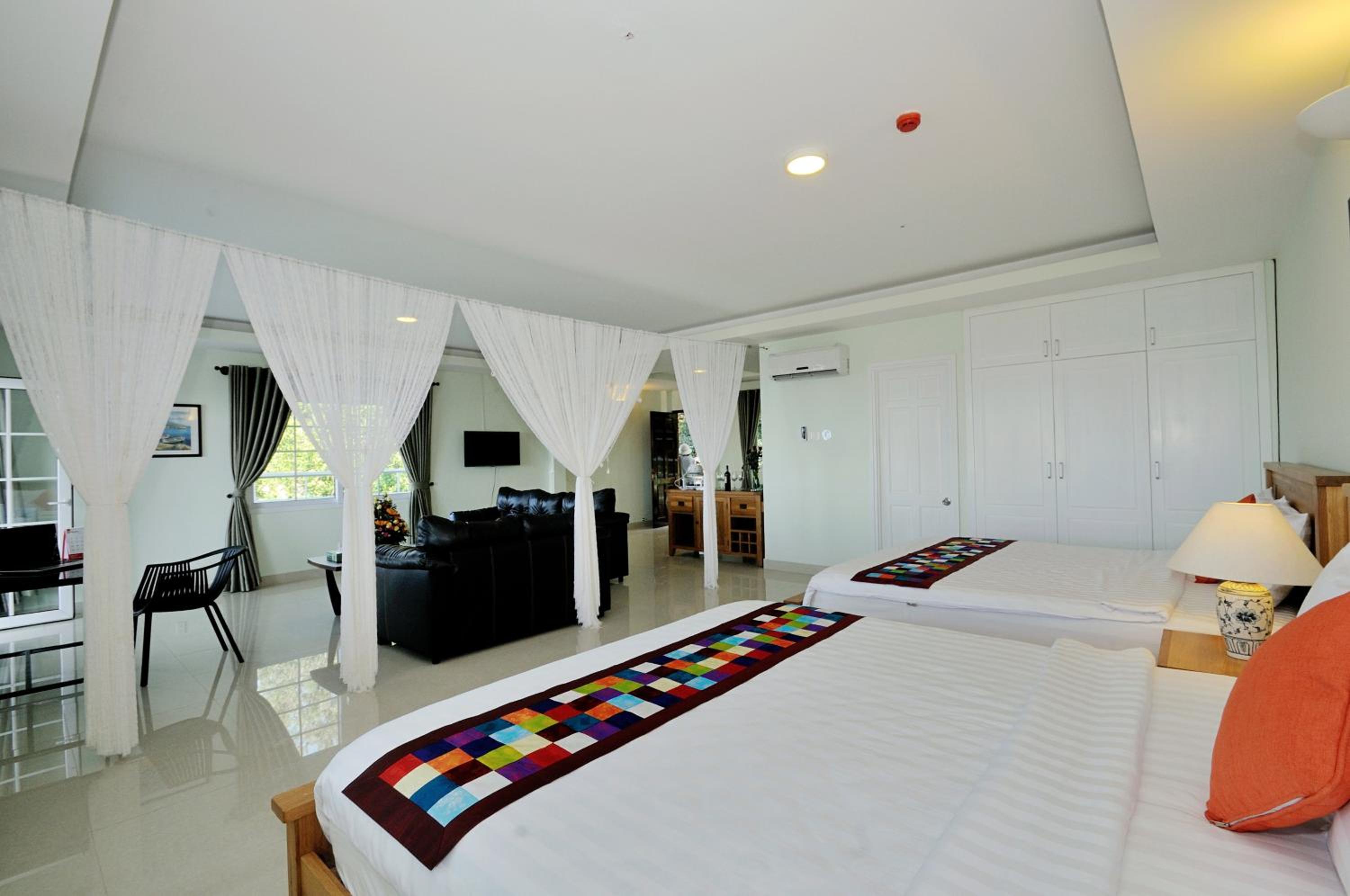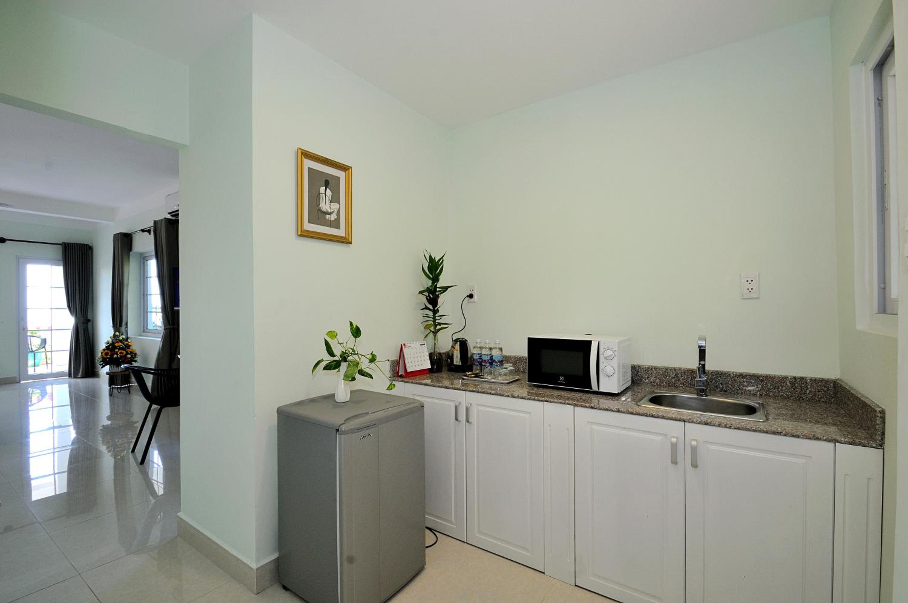 the room was huge compared to other places we had stayed at in Vietnam and had a little kitchenette. Very very spacious and wonderful environment, Can see the sea from the room balcony. there is a little hillock close by which one can walk to to see the sunrise . The statue of Jesus and the light house are visible from there.
