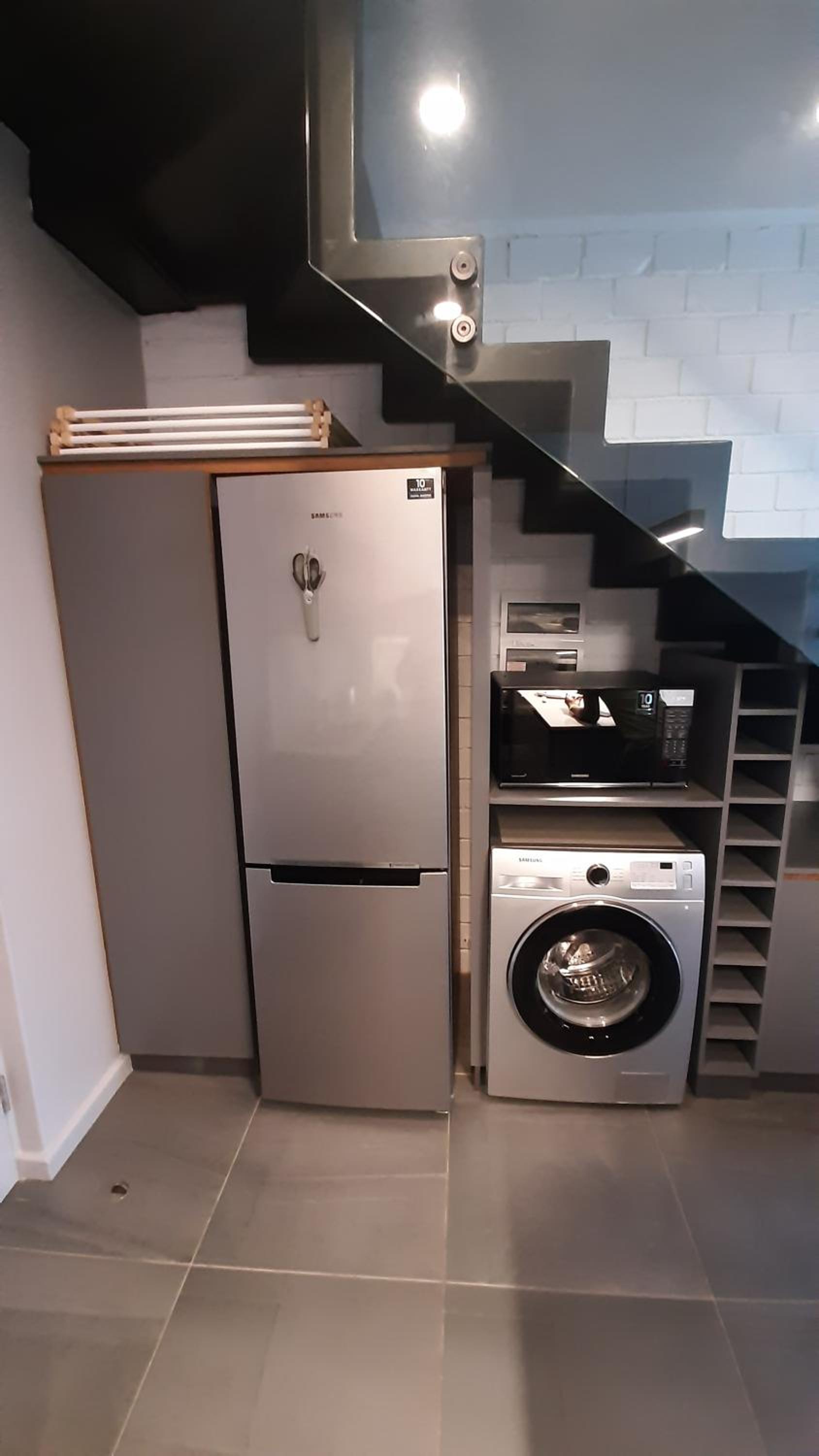 The apartment was not cleaned properly. The carpet was really dirty and rolling up at the corners, the glass stair railing wasn't clean, the pots were not cleaned properly. The sliding door stopper was removed/broken which led to me injuring my fingers when opening it. After visiting the beach we wanted to dry our swimming clothes only to find the washing rack broken. The cleaning staff need to improve and clean under the furniture and between the fridge and washing machine because there was dirt there as well. The walls upstairs around the bathroom are cracked and have water damage.
