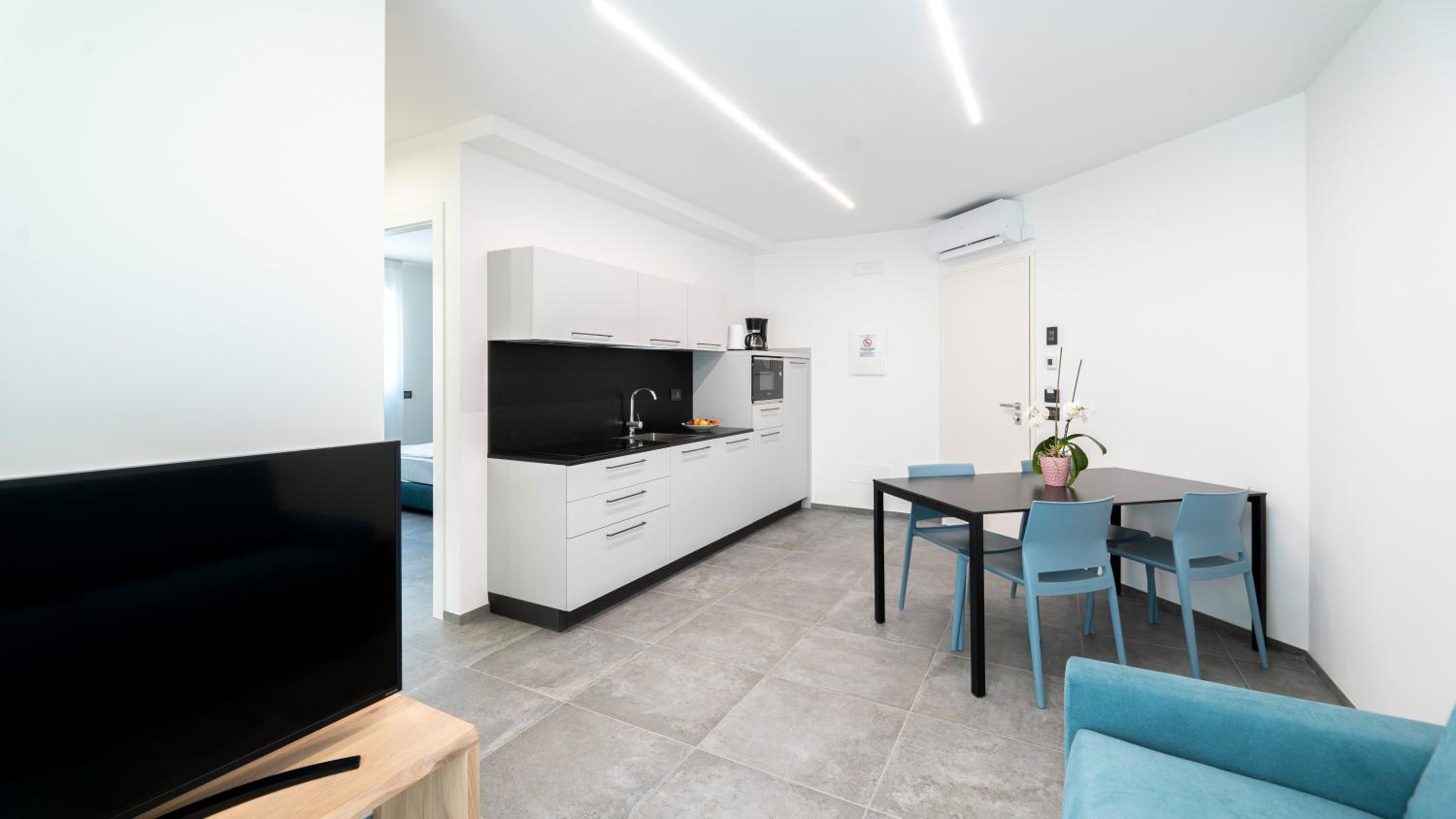 Experience comfort and style at Ca' de L'Olif - Holiday Clima Apartments, where every unit is thoughtfully equipped with modern amenities and scenic balconies overlooking the mountains or pool. From air-conditioning to a fully equipped kitchen, we ensure a relaxing stay for all our guests.