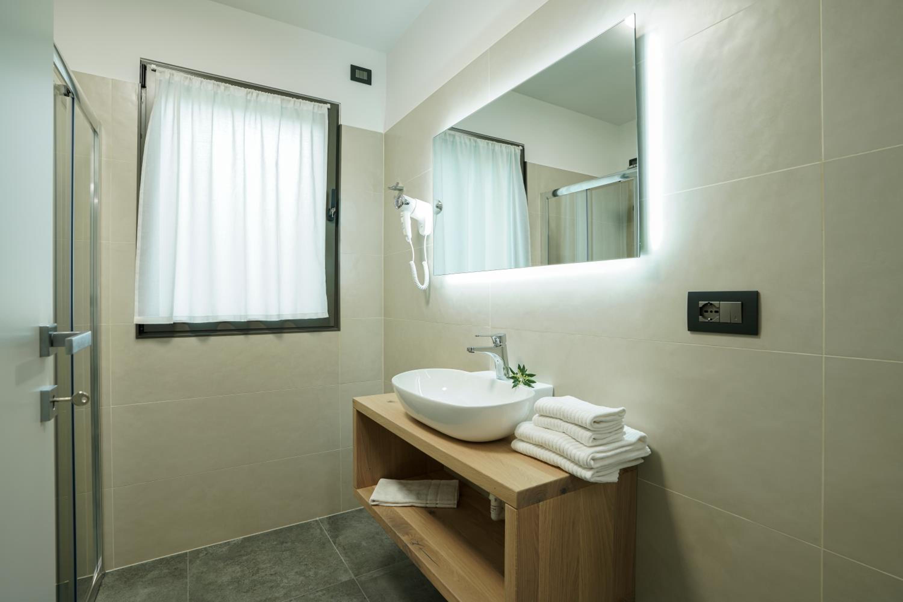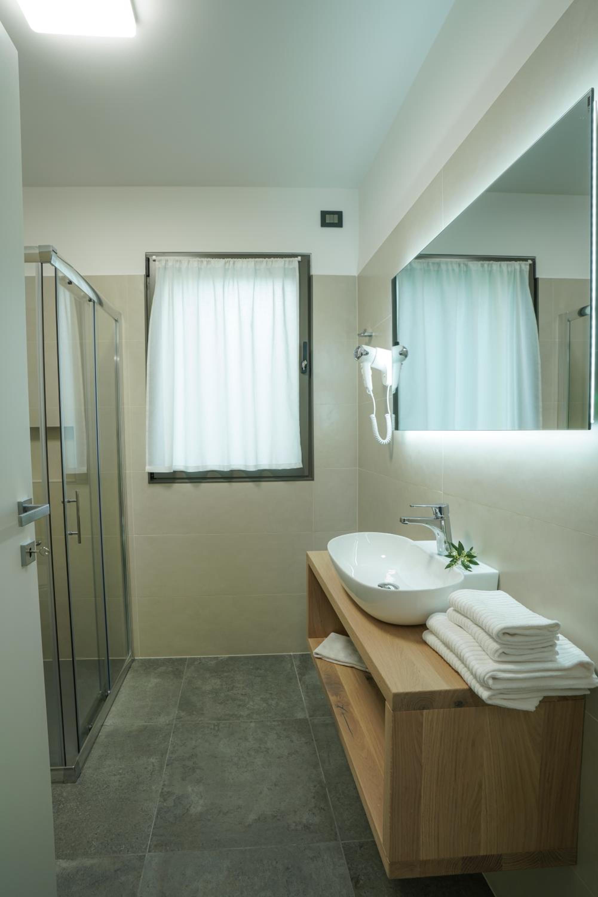 Nowoczesny bardzo zadbany hotel z podziemnym garażem i oddzielnie klimatyzowanymi pokojami. Obok garażu dostępna pralnia z żelazkiem. Właściciel cały czas obecny i pomocny. Polecamy na wakacje z dziećmi.