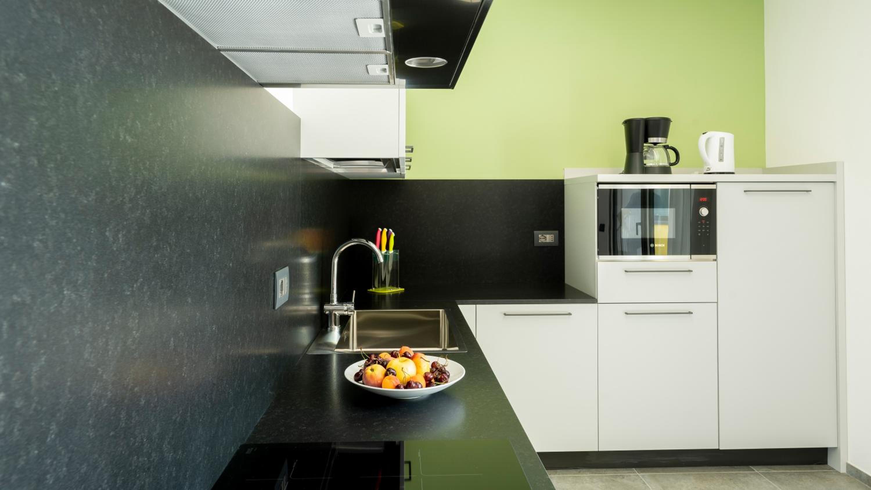 Apartament idealny we wszystkich aspektach wakacyjnego życia. Spokojna miejscowość bez tłumu turystów, jednocześnie łatwy dojazd nad Gardę i do Trydentu. Super czysto i przestrzennie. Doskonałe wyposażenie - bez bezsensownych gadżetów za to z odpowiednią ilością naczyń, sztućców, półek itp. Klimatyzacja w pełni wydolna. Oszałamiający widok na góry z każdego okna łącznie z łazienkowym (apartament Frantoio na pierwszym piętrze - nie jestem pewna czy z parteru też tak jest). Bezpłatne i w pełni dostępne rowery (tereny bardzo rowerowe a ścieżka do ślicznego Arco biegnąca wzdłuż rzeki, wśród gór, winnic i drzewek kiwi zaczyna się blisko apartamentu - łatwa i bezpieczna nawet dla rodzin z małymi dziećmi). Bezproblemowy parking tak w garażu podziemnym (przy większym samochodzie nieco ciasny) jak i przy budynku. Bardzo fajna restauracja (bez kopertowego, co jest pozytywnym ewenementem we Włoszech) w budynku obok. Teren łącznie z basenem bardzo zadbany. Wieczorem latają nietoperze a rano na trawniku pod domem żerują kosy, raz widzieliśmy też dudka. W pełni dostępna pralnia (bez opłat, ale należy zabrać kapsułki - przynajmniej ja nie dojrzałam, żeby były dostępne). Dbałość o ekologię - kosze do segregacji śmieci, klimatyzacja wyłącza się po otwarciu okna. Gospodarze myślą o wszystkim a jednocześnie zupełnie nie ingerują w życie gości. Na zakończenie dostaliśmy w prezencie oliwę z ich własnej produkcji.