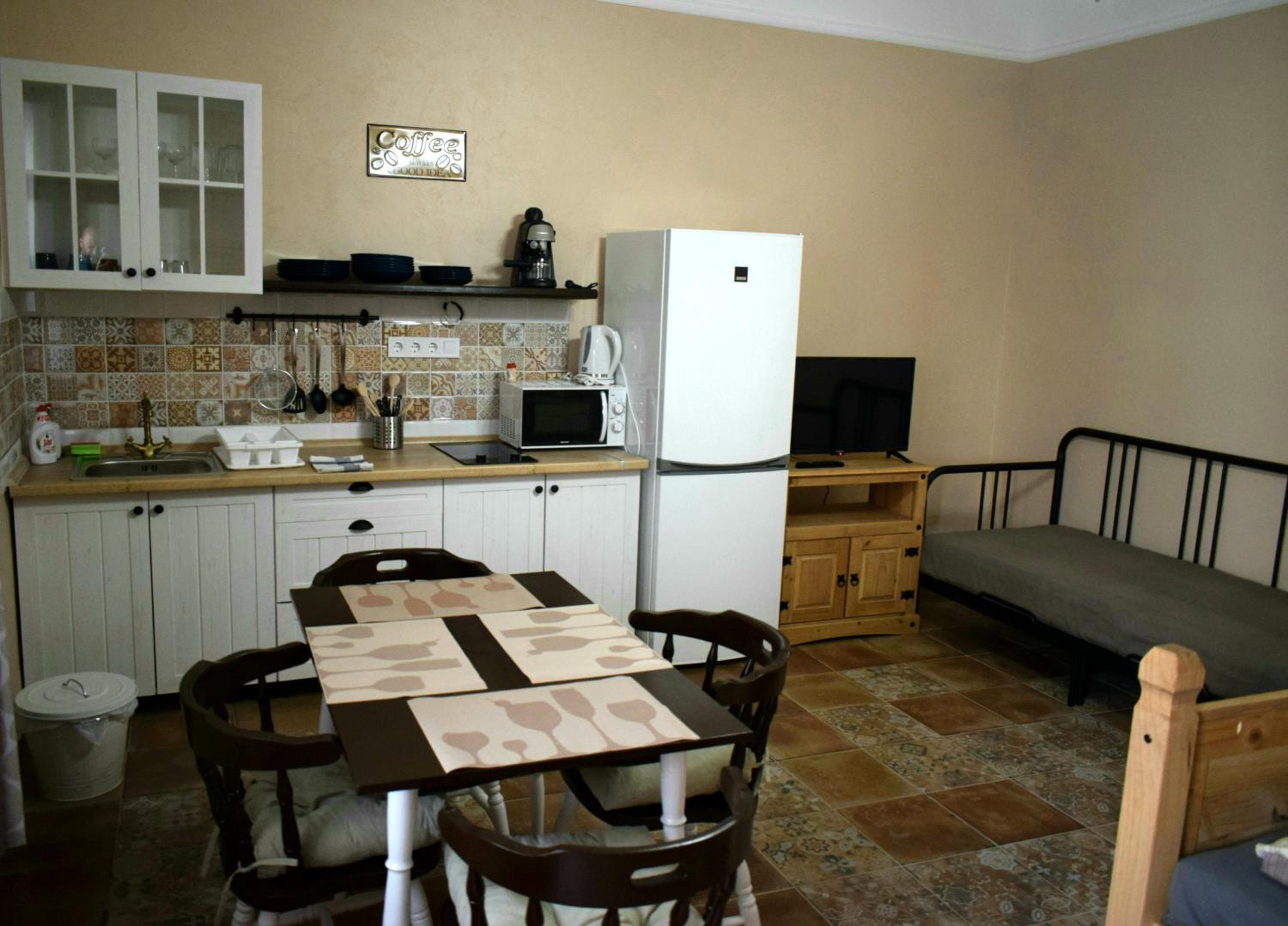 Close to the city center. All you need inside. Taras extra nice for rest.
