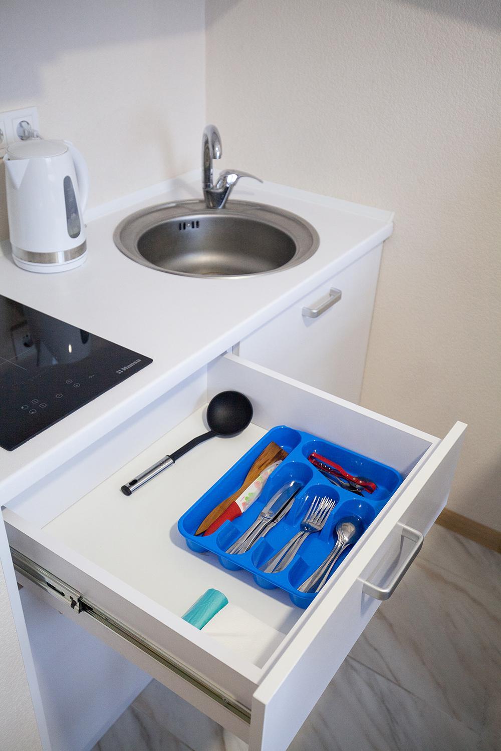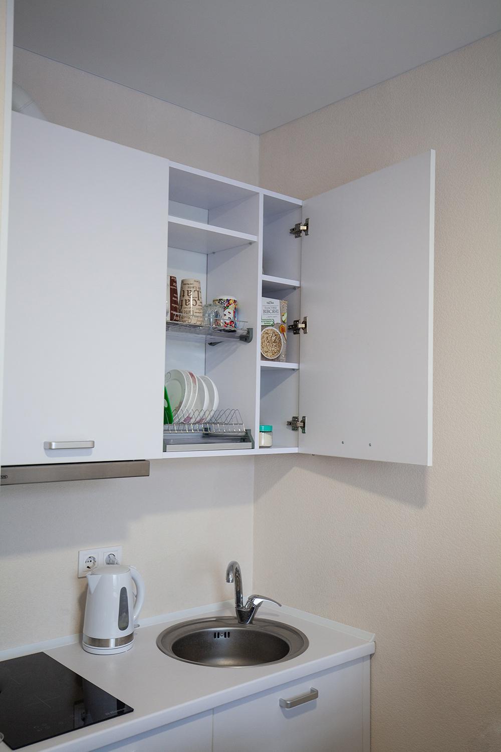 Відсутність сушилки для білизни, прийшлося розвішувати по свій квартири де була можливість, також відсутні вішалки для верхнього одягу. І також відсутність набору для підмітання, мілке сміття час від часу прибирали серветками