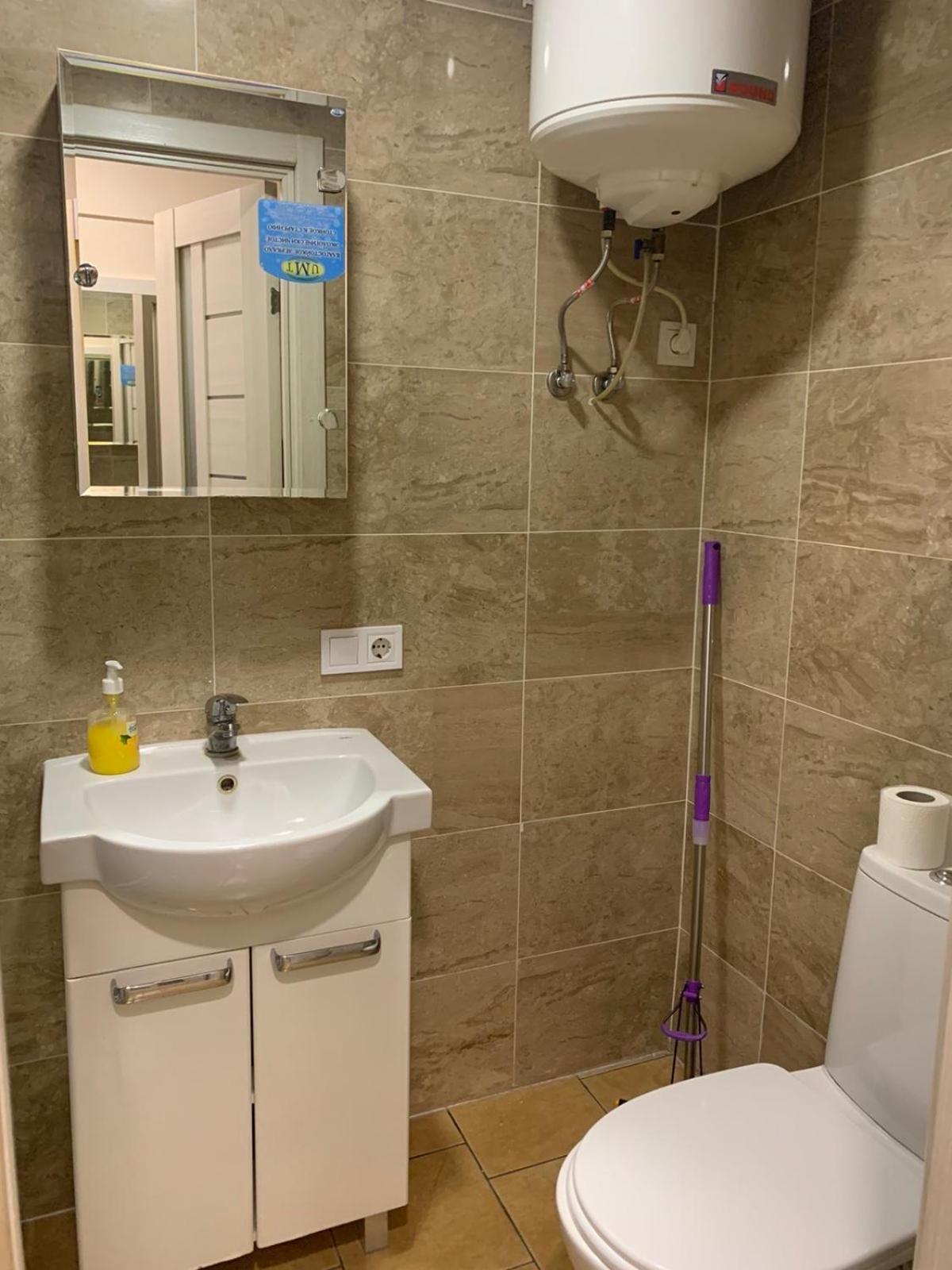 Сантехніка і фурнітура мають дуже втомлений вигляд. Вхідні жвері мають вигляд "після ремонту"