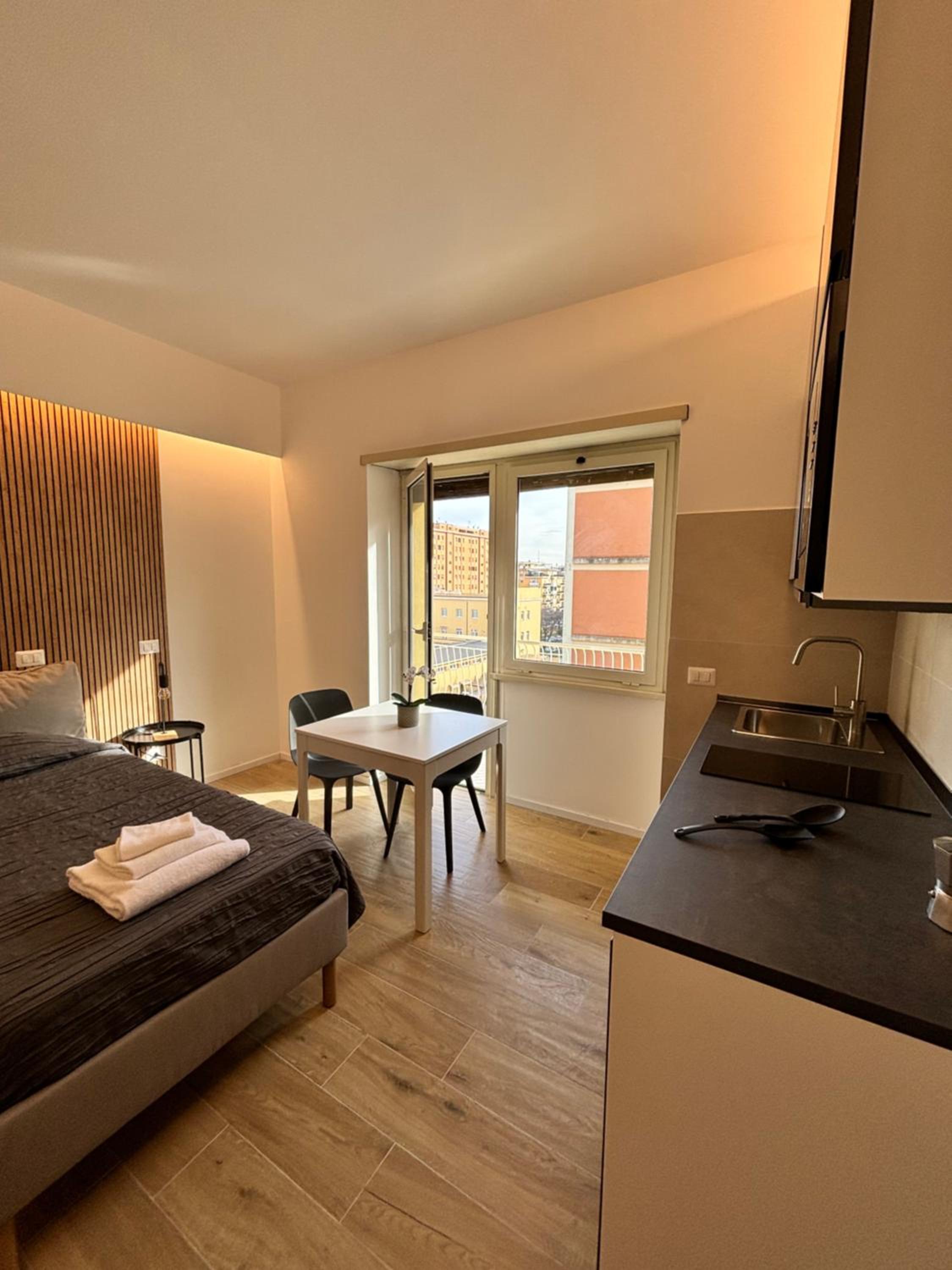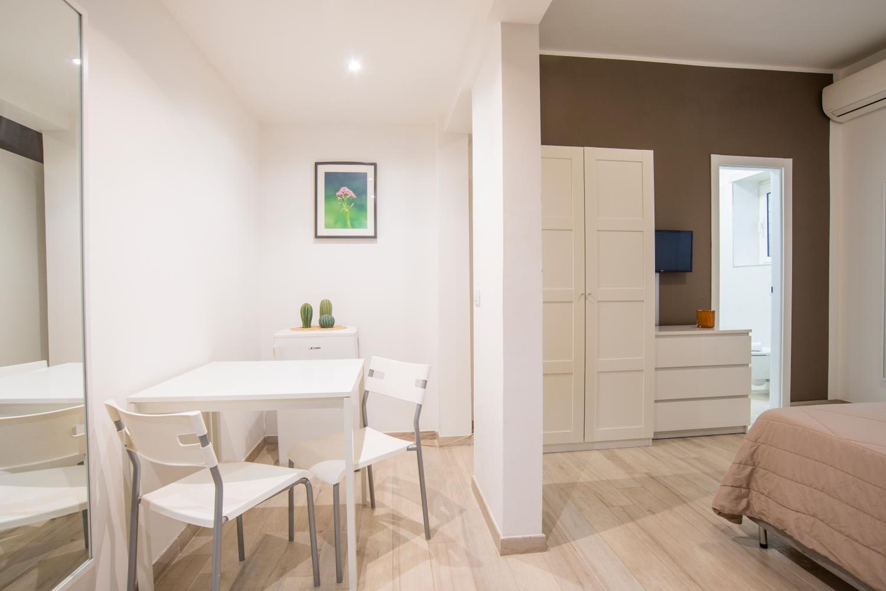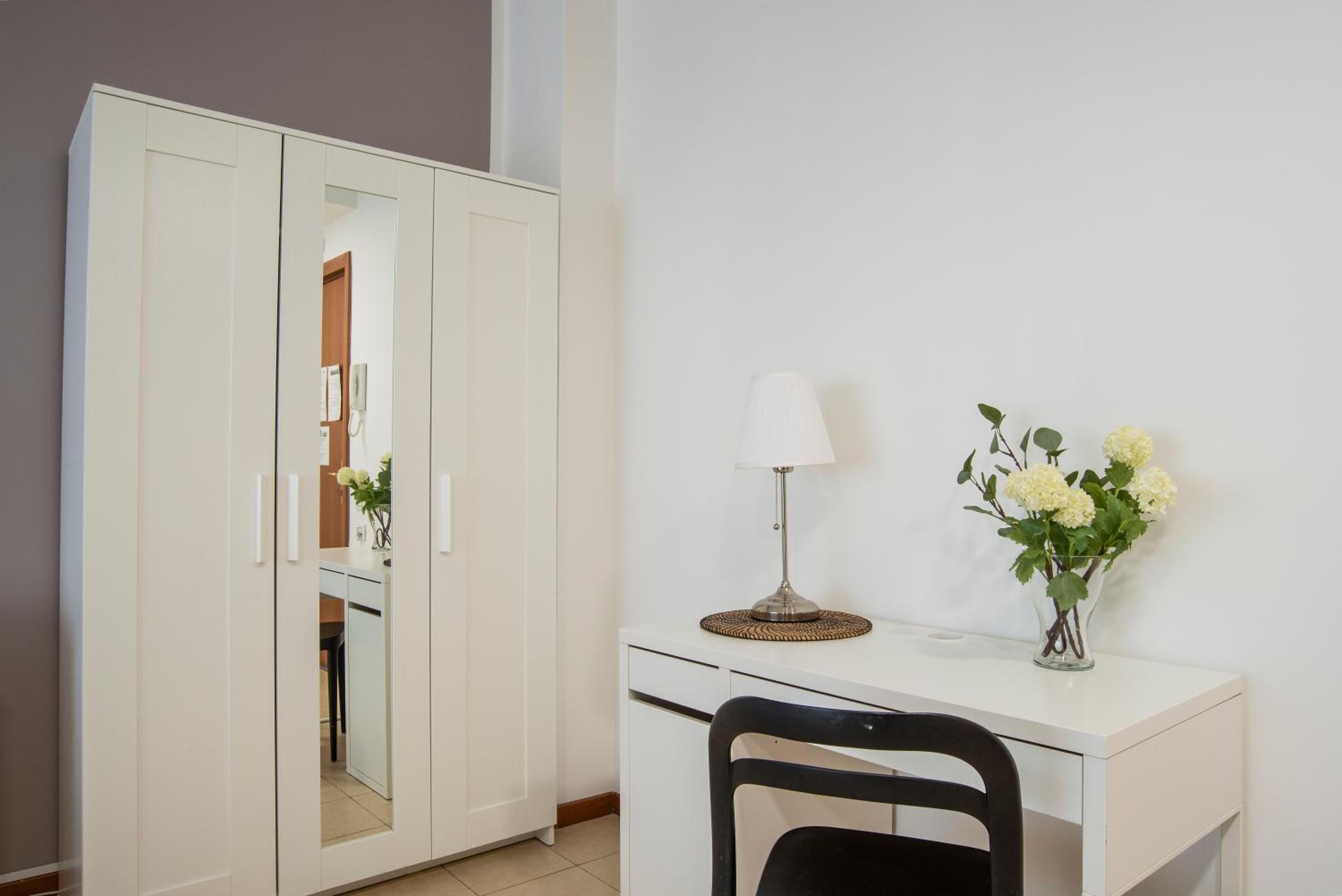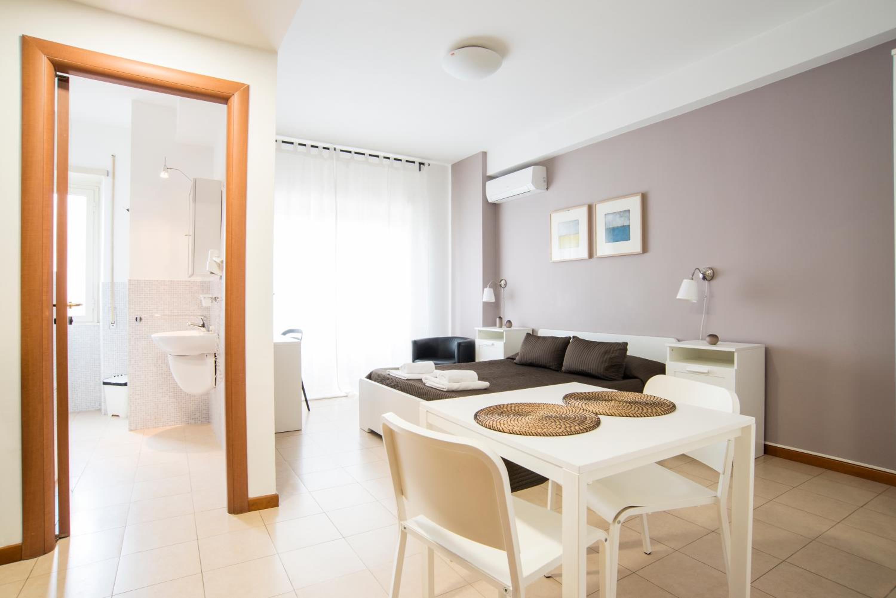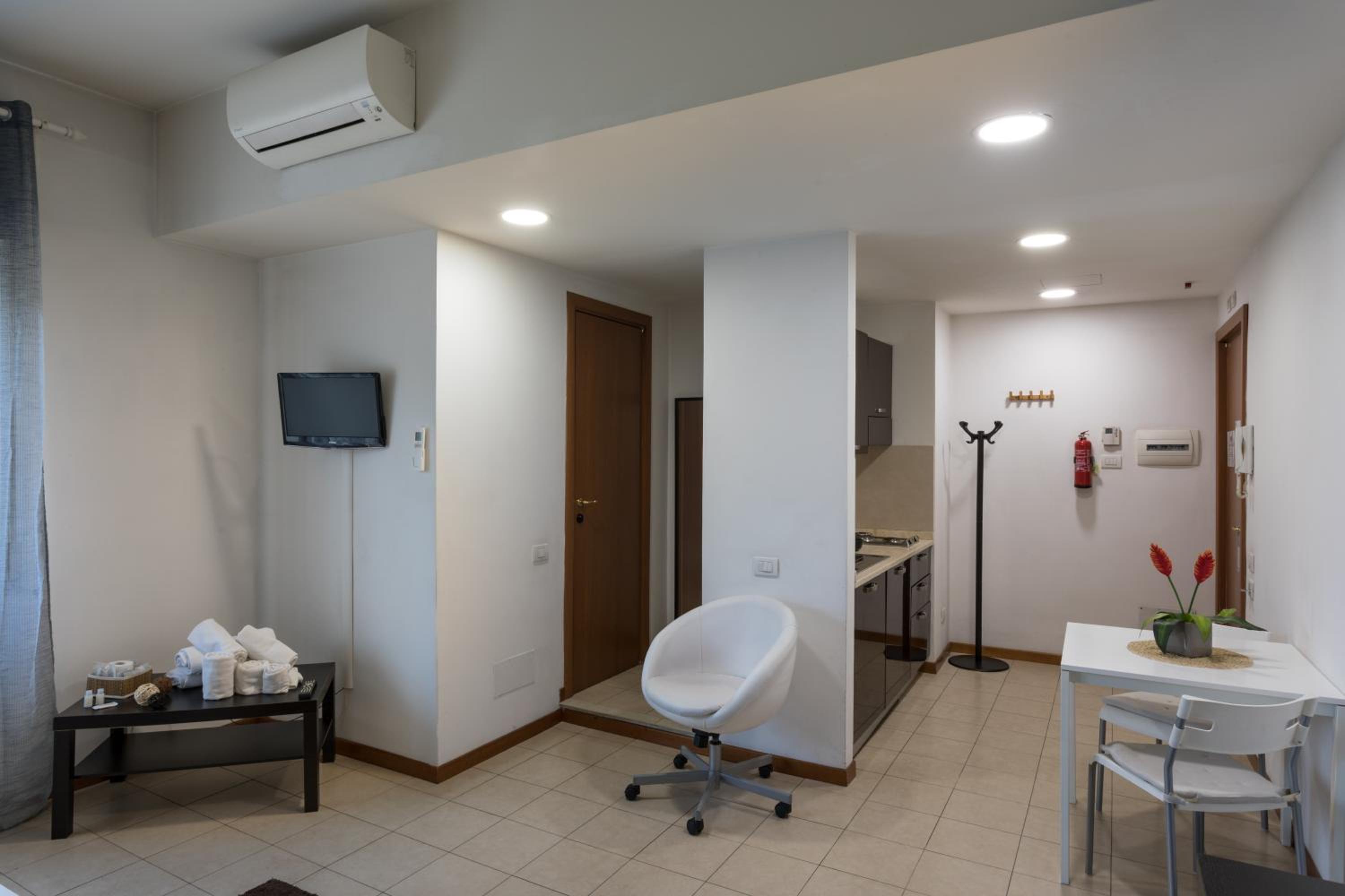 La stanza si presentava abbastanza trascurato, la pulizia non era ottima così come gli oggetti nella stanza (sedia del tavolo da pranzo altamente instabile, presa della lampada da letto rotta, mancanza di appoggi al bagno e specchi rovinati). La doccia del bagno non era ben sigillata e rovinata pertanto ad ogni doccia tutto l'esterno veniva inondato d'acqua e necessitata di essere asciugato con il phon (unica soluzione che si è potuta mettere in pratica ). Ammobiliato in maniera spartana e soprattutto questo che ho segnalato in reception (ma sapevo che non avrebbero mai potuto fare nulla ) l'errato funzionamento del riscaldamento con inverter (mal funzionante) mentre per quanto riguarda il riscaldamento centralizzato mi era stato detto che sarebbe partito in maniera automatica dalle ore 19/21 e dalle 6/9, cosa mai avvenuta (pertanto con 3° all'esterno e senza riscaldamento interno in pieno dicembre )