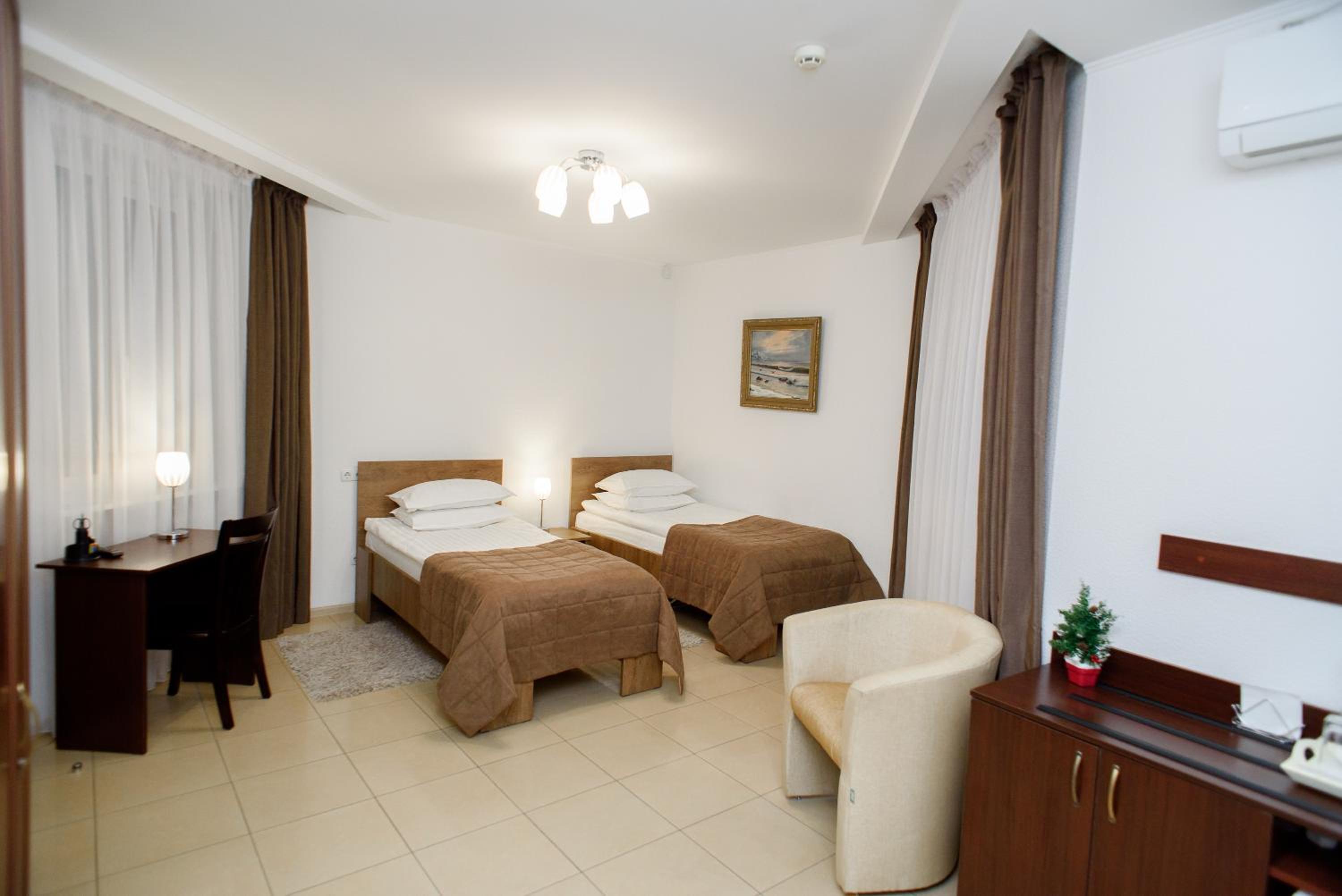 Просторий номер, достатньо вікон, спокійний інтер'єр. Чисто. Прям класно.