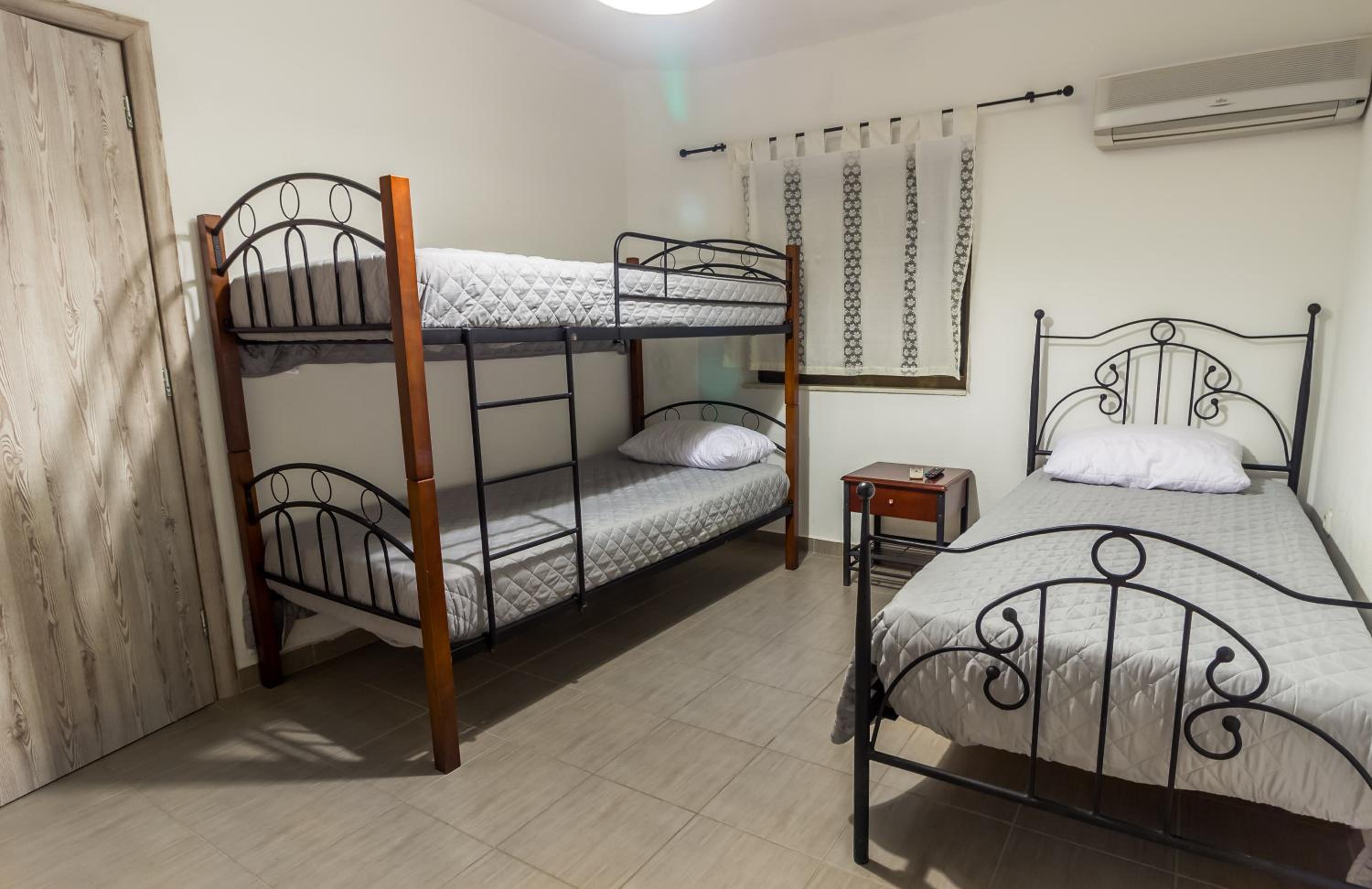 Τα δωμάτια χρειάζονται ανακαίνιση, συγκεκριμένα καλό θα ήταν να αλλάξουν τα κουφώματα, καθώς δεν υπήρχαν σιτες και δεν ήταν ασφαλές το κλειδωμα των παραθύρων.Το μπάνιο είχε χαλασμένη ντουζιέρα και έλειπε το ένα τζαμί-πορτα οπότε τα νερά έτρεχαν σε όλο το πάτωμα.