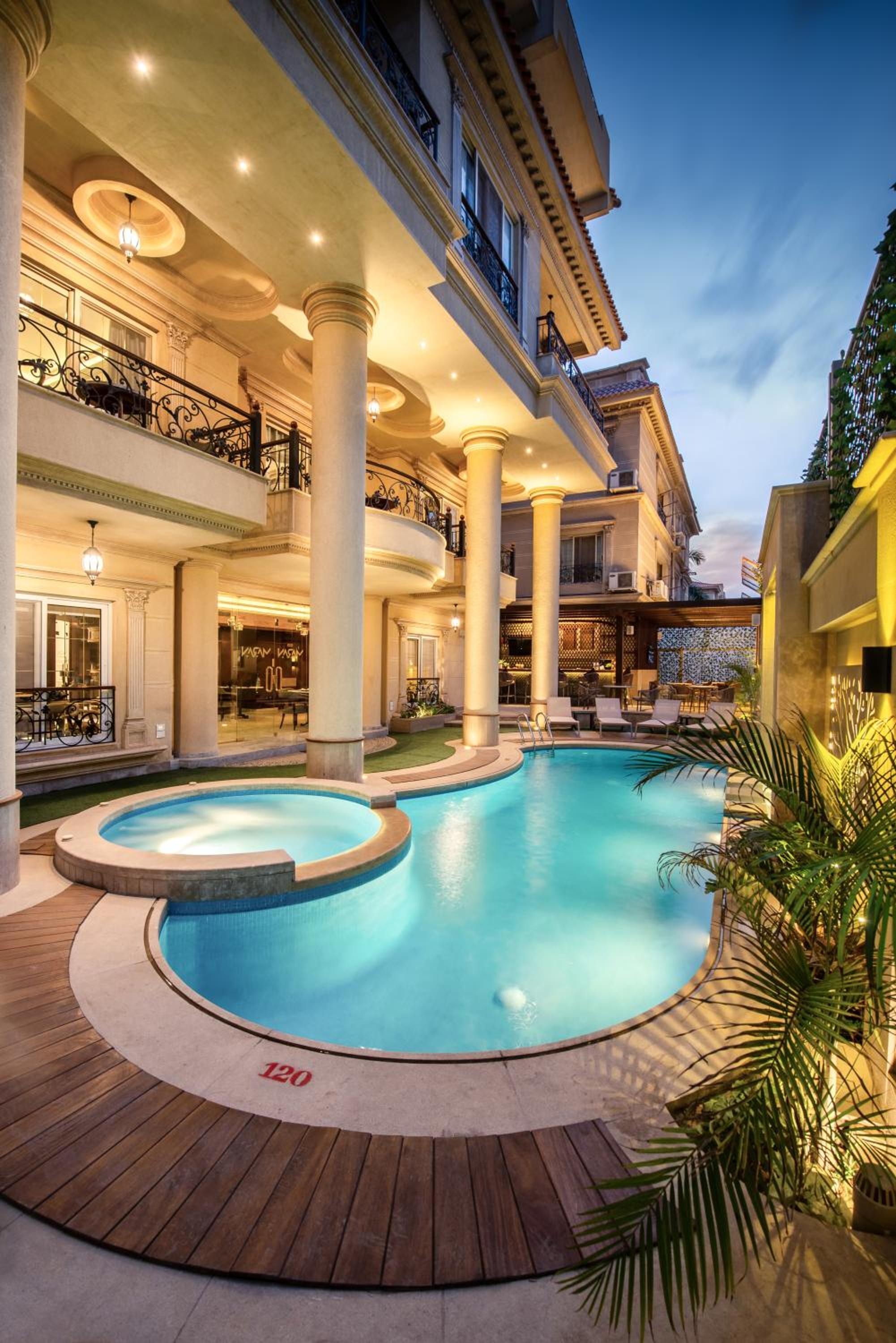 The Maran is a good place to stay. It is a Residence - with rooms/suites, a pool, small bar, breakfast area and pool. 24 hour reception. It's location in New Cairo looks a little bit away from the main sites (e.g. Giza) but in practice was manageable (circa 40 mins). It is in a recent development and the facilities in the room are modern. It is a 15/20 minute walk from Downtown (5 minutes by Uber) which has a good range of upmarket shops and eating places and restaurants (particularly Jouzoor - Palestinian restaurant). It is welcoming and service is good. We were fortunate to have the services of a driver who picked us up and other transport links would need to be explored. We stayed there twice during a week's tour (5 nights in total)