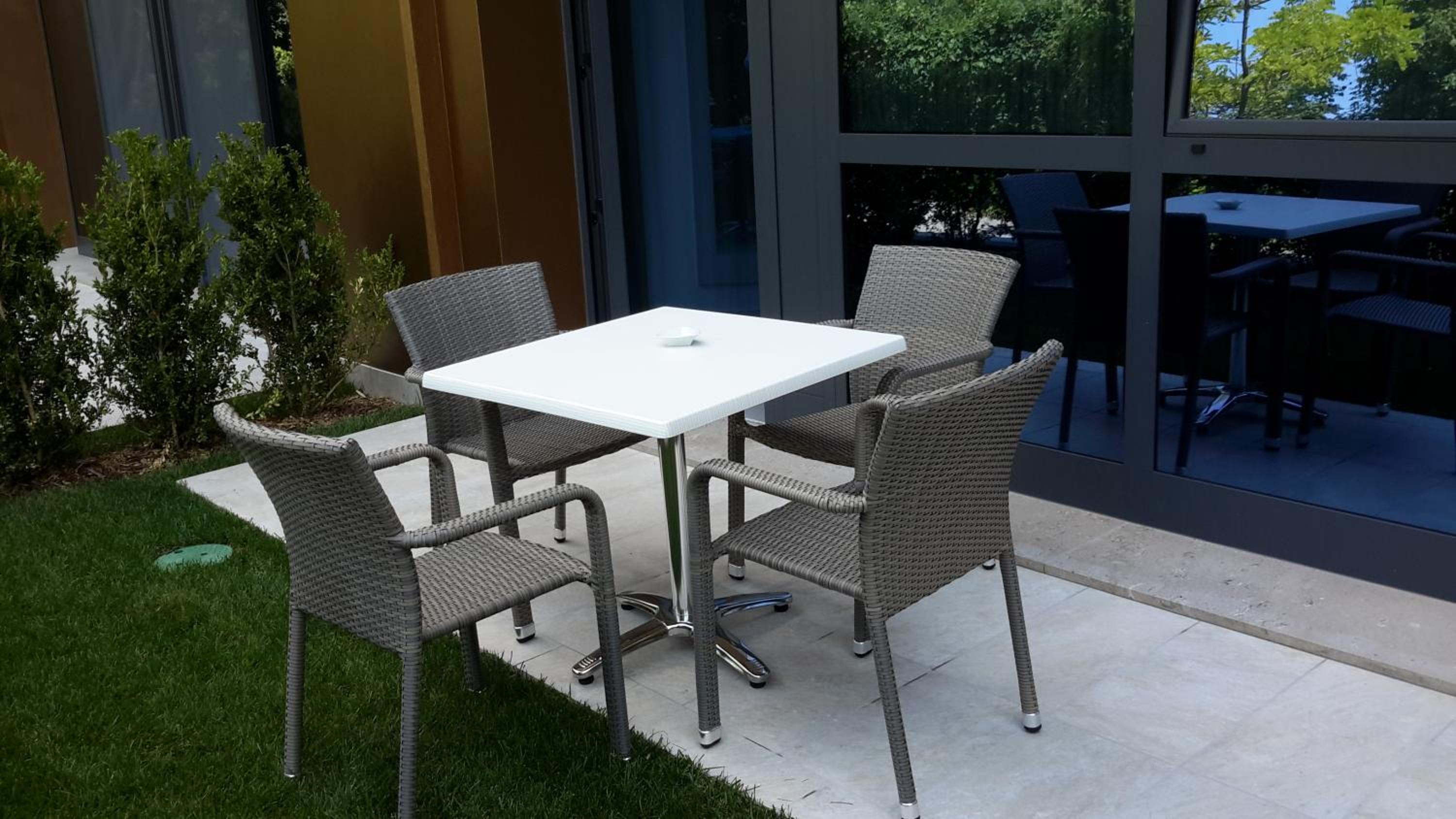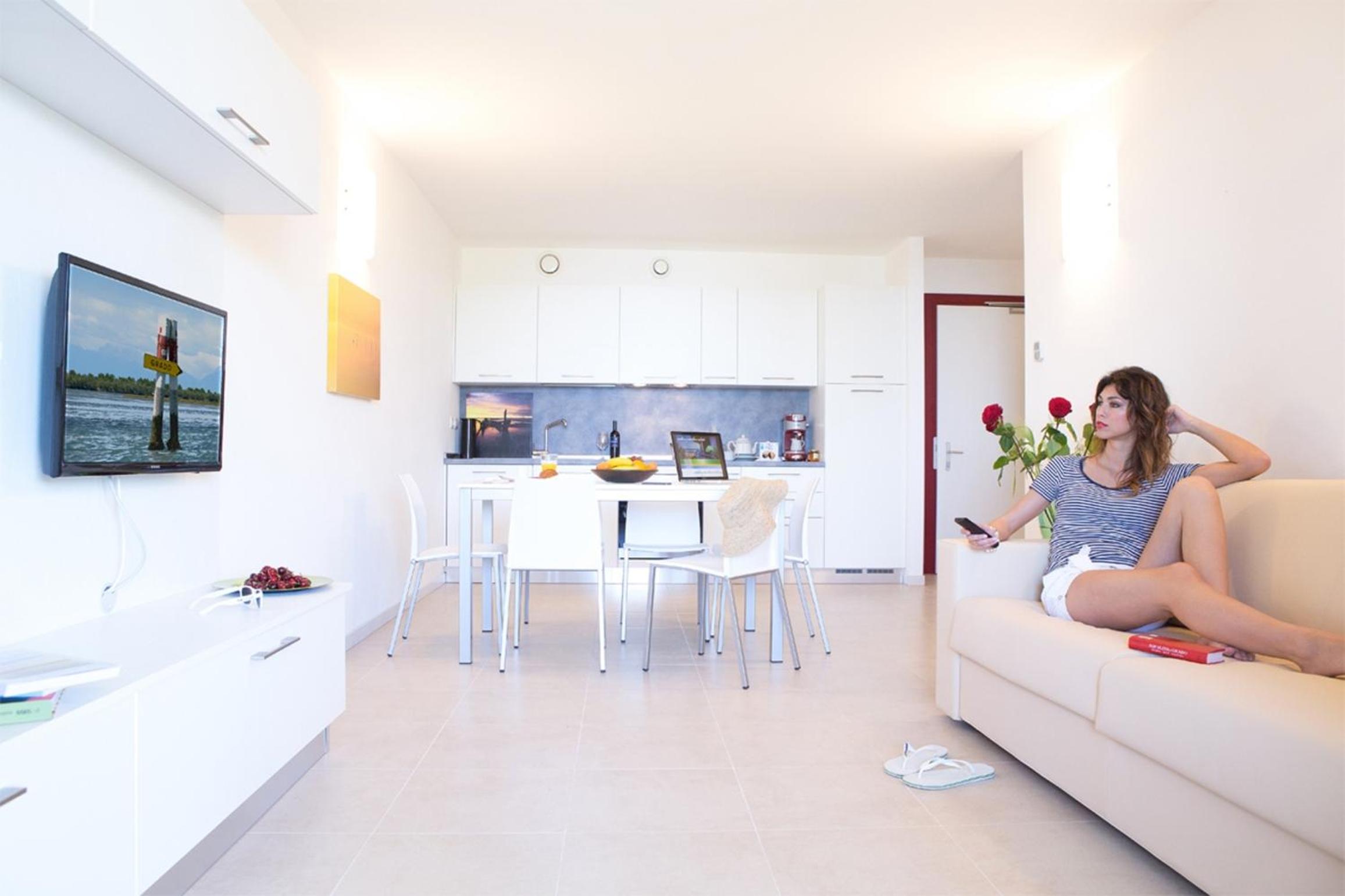 The property offers modern-style apartments with a furnished balcony, kitchenette, TV, and a bathroom with a hairdryer, ensuring a comfortable stay for guests.