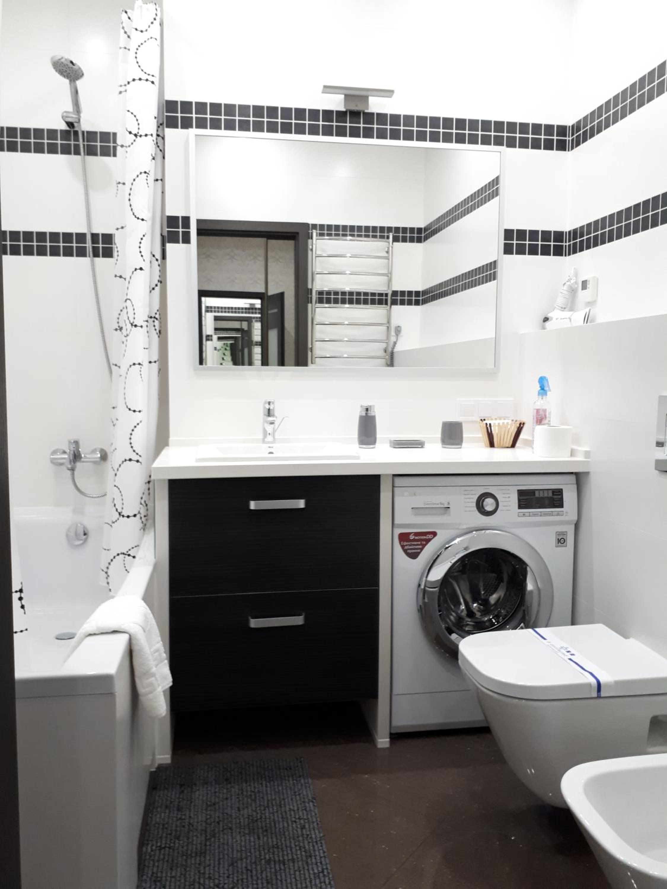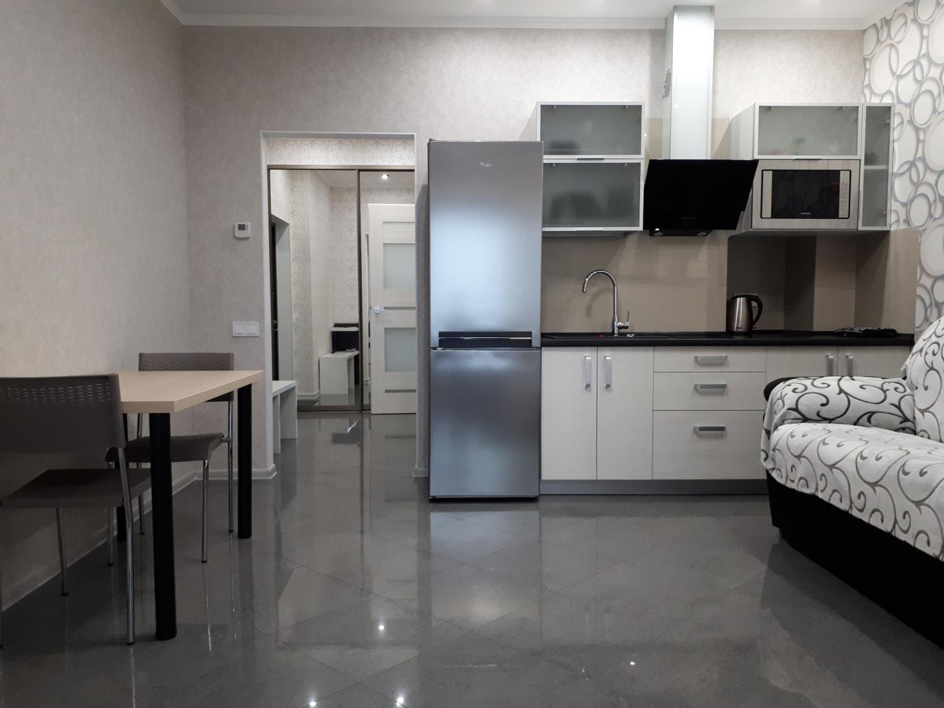 В апартаментах свіженький ремонт, білосніжна постіль та рушники, все чистенько .Є міні кухня з усім необхідним приладдям, де можна готувати їжу. Фантастичний вид на місто з 23 поверху . Порадував косметичний набір у ванній та одноразові капці .