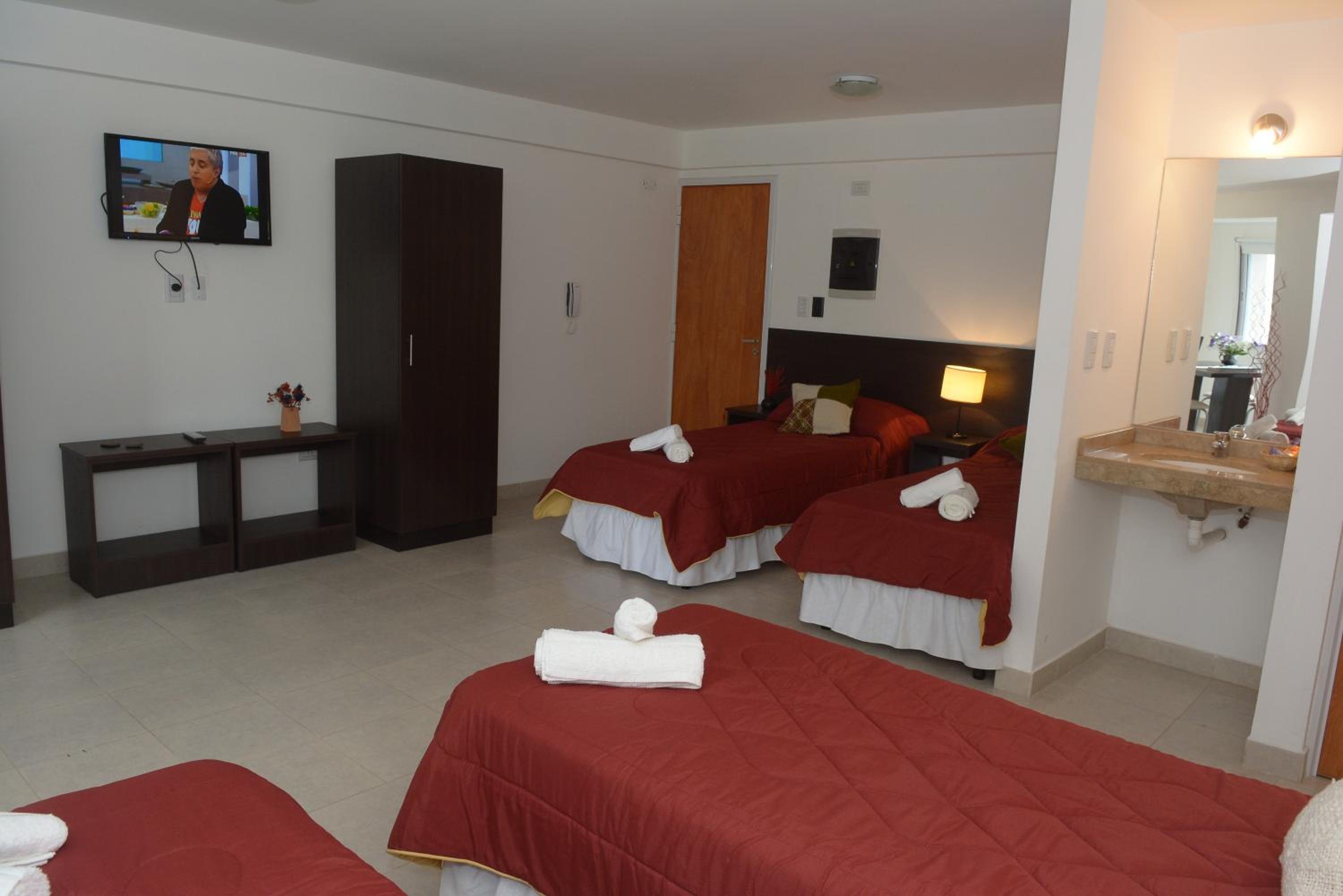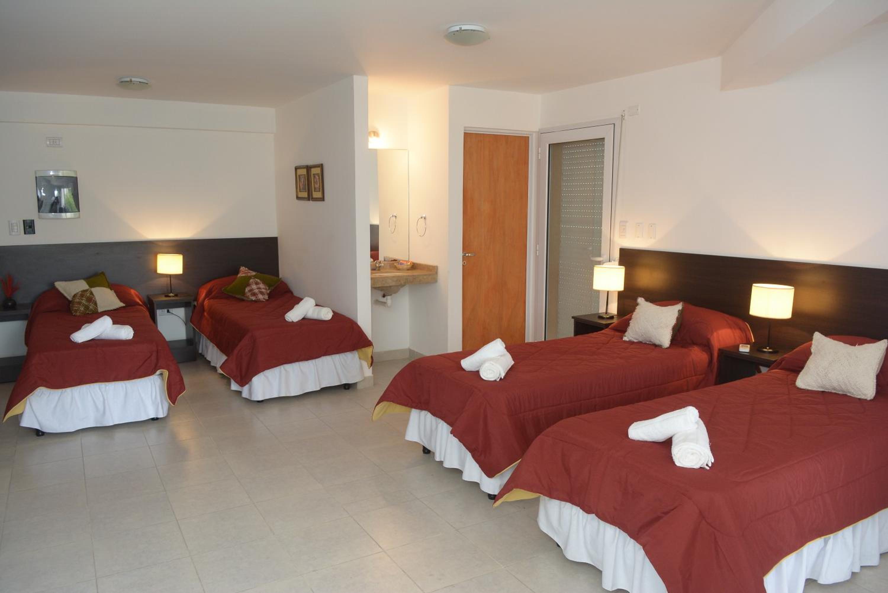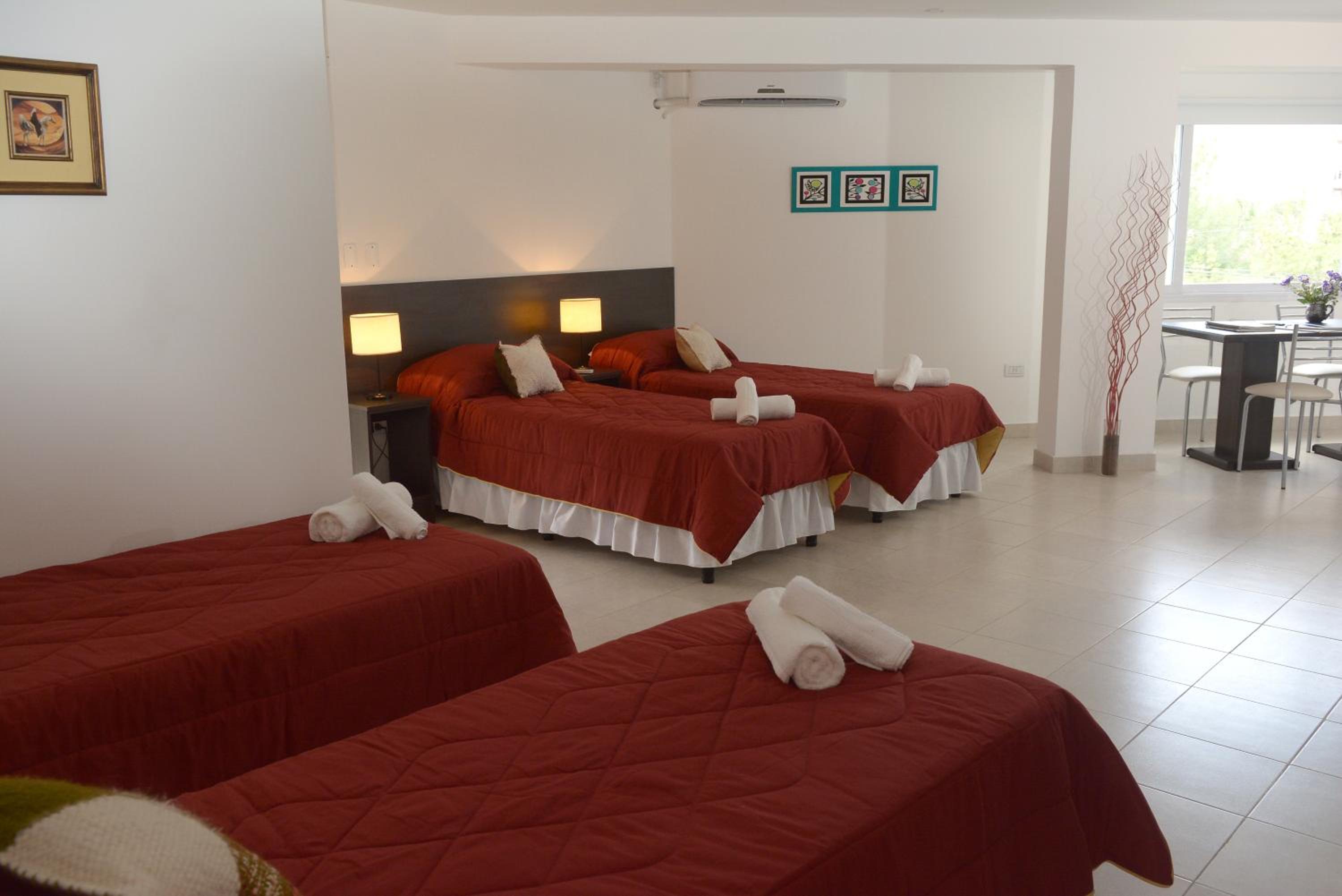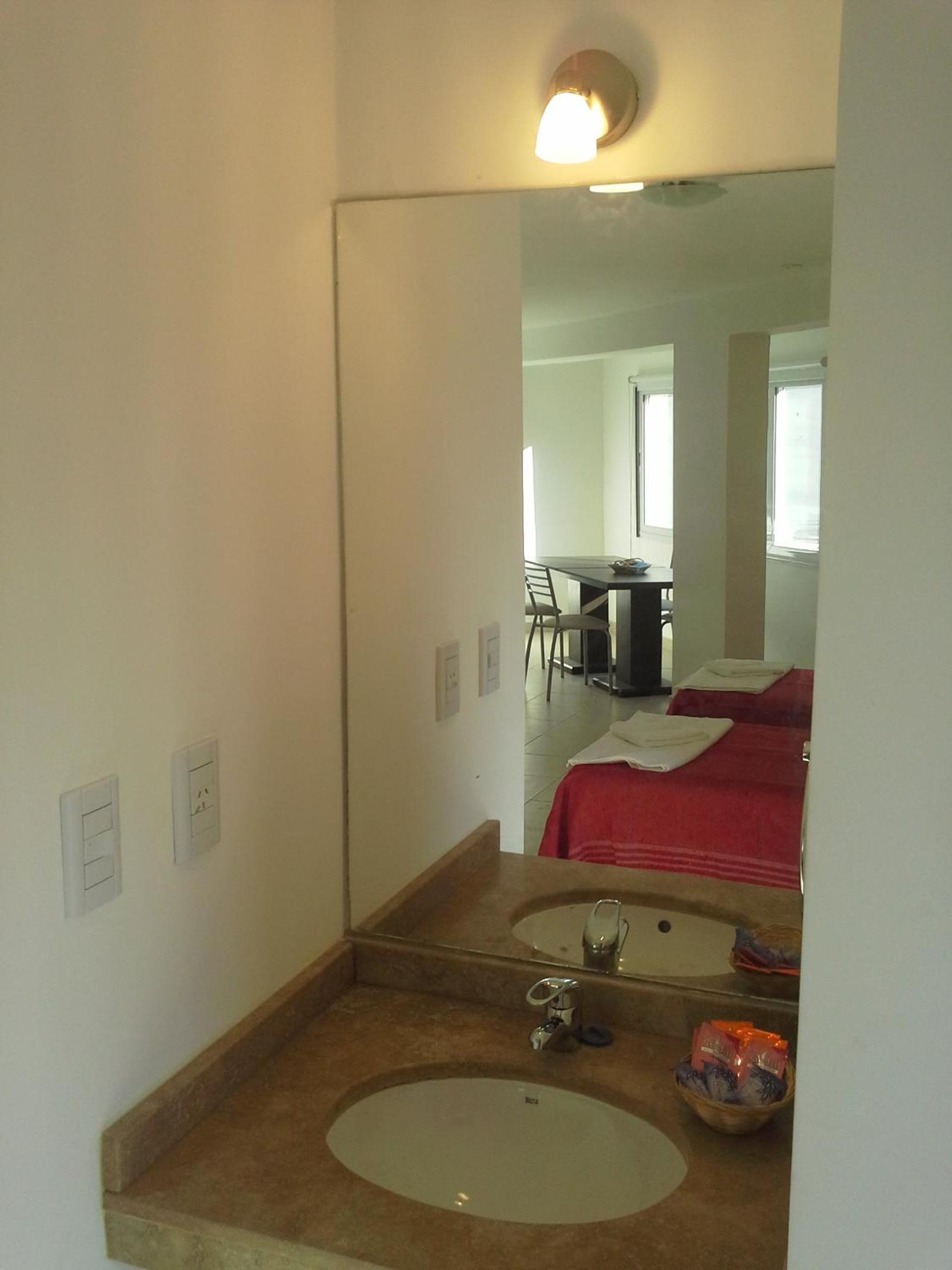 En el que dormimos con mi esposo, había un jabón usado en el baño, y de toalla de mano había una alfombra. El papel higiénico parecía lija. Además, las almohadas super incómodas y el acolchado tenía una mancha blanquesina, que daba la pauta que no fue lavado.... Un asco. El dto que era para 3 (por el cual cobraron $69.000 las 2 noches)Sin embargo, tenía 1 solo juego de toallas. Cuando reclamamos, nos dieron una toalla rota y gastada, diciendo que encargado no dejó otras. Nos querían cobrar $8.000 para que pudiéramos dejar las valijas hasta las 19hs, o de lo contrario obligarnos a dejar el dto a las 10 de la mañana. Todo era un reclamo. Desgastante y estresante.