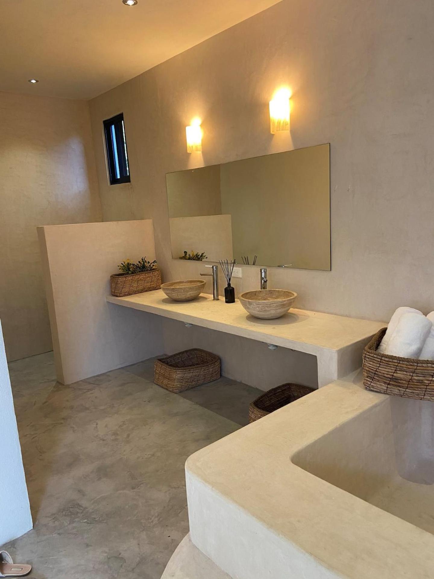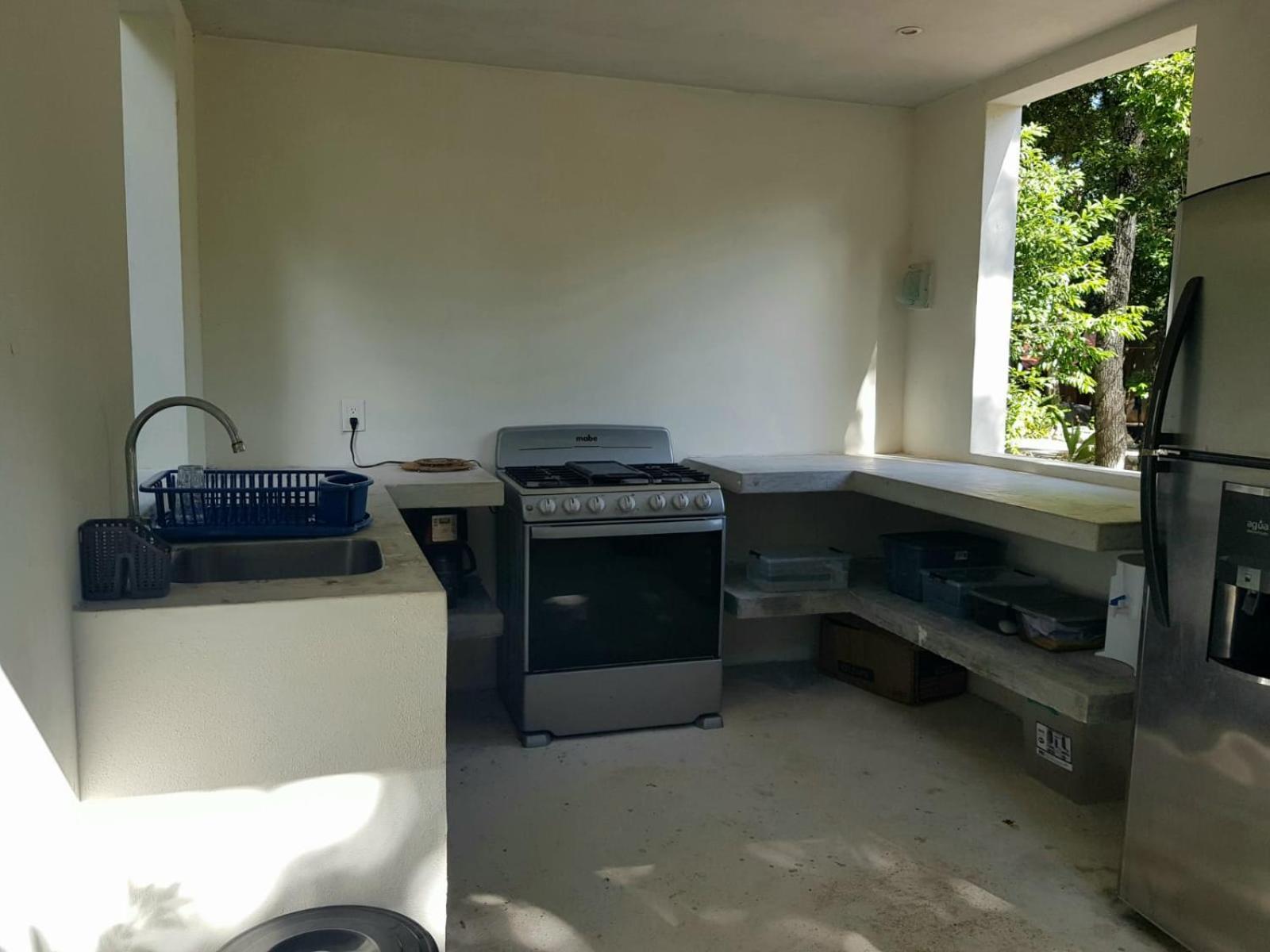 What a pleasant surprise and at such a good price, especially seeing what is offered in the area. The road in from the highway is well marked to find Santuario, you do have to pay attention. It is a dirt road but in good condition, probably took us little over 5 minutes. I had stayed in the area before, so I was familiar with it. Coming from Cancun, you do have to look out for the turn off, it is before you reach the Akumal turn, 3 kilometers down the road. We were met by Manuel, a very kind and helpful person. The room is expertly designed, the polished concrete work is excellent. The room has few furnishings but a pleasing design. Everything worked perfectly, the bed was comfortable, and the fans kept the room a nice temperature; the large windows all have very good screens. The bathroom area is lovely. The icing on the cake is the beautiful private cenote, while there were other guests, we had it to ourselves. I think that there are 4 units in the guest house, one was occupied, while we were there. The communal kitchen is a 1-minute walk from the room, everything you need for cooking is supplied. The kitchen area is not new, but it is sufficient, the huge open-air palapa sitting area adjacent to the kitchen is very nice as is the landscaping. Santuario is very new, still being worked on, but more than adequate for a lovely jungle stay. There are spider monkeys, you do have to be aware, they apparently are little thieves! There are 2 good restaurants in Akumal, not even 10 minutes by car, I think that there are others. Akumal is so much nicer than Tulum, no comparison; Tulum is terribly overrun now, but there is a good supermarket there.