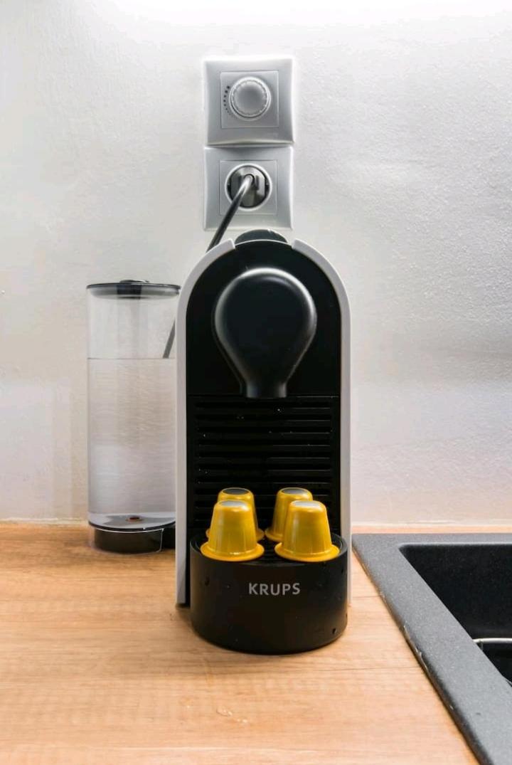 -Automat do espresso z kapsułkami, kapcie, szczoteczki, płyny do mycia w łazience, napoje w lodówce