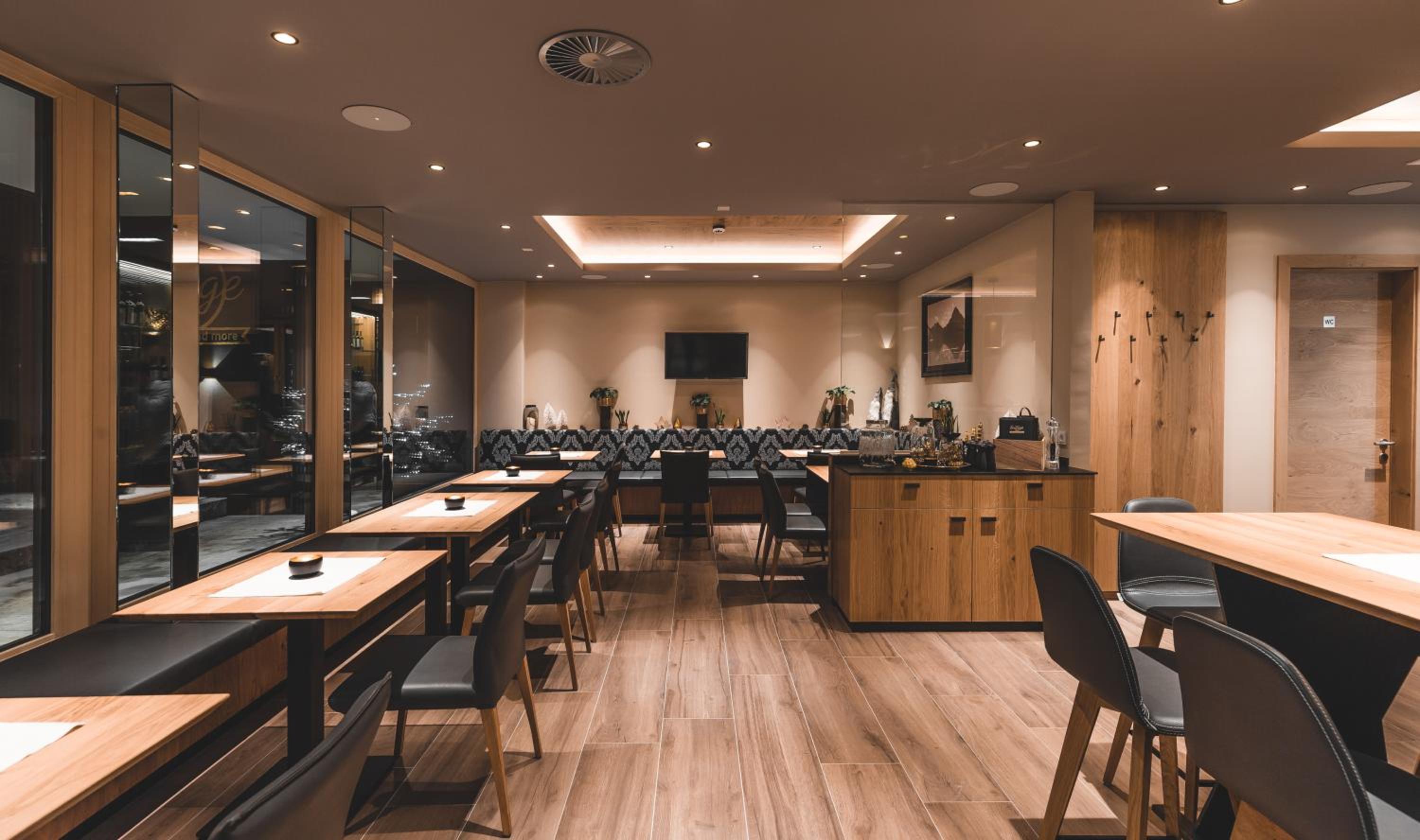 Für ein 4-Sterne-Haus war das Frühstück unterirdisch. 4 kleine Scheibchen Schinkenspeck statt Schinken, Kochschinken mit gewelltem, hart getrockneten Rand, 2 normale Brötchen und 2 Körnerbrötchen, wovon 2 innen auf 2 cm hart waren, also mindestens vom Vortag, vermutlich noch älter. Minischälchen mit 1 x Marmelade-, 1 x Frischkäse, 1 x Leberwurst, 3 x Butter, 1 x Margarine, alles nur Mini-Fertigtöpfchen. Einziger Lichtblick: auf Angebot kam für uns 2 Erwachsene je 1 Ei als Rührei frisch, 2 pro Person wären aber wünschenswert gewesen. 1 Brotlaib zum selbstsbschneiden außer den 4 Brötchen und lieblos offen liegenden (6) Scheiben teils trocken und 1 sehr wässerig schmeckender Orangensaft ergänzen das Spartanische Bild. Frisches Obst gab es nur in einem Korb mit ungeschnittenen 3 Apfelsinen / Äpfel. Übrigens: für uns was das Frühstück um 9.30 Uhr definitiv für ca. 1.250 Euro für 4 Nächte keine 2 Sterne wert. Dass man erst an ca. 8 Uhr frühstücken konnte, war für uns kein Problem, aber vielleicht für Skifahrer, die um 8.30 Uhr auf der Piste stehen wollen.