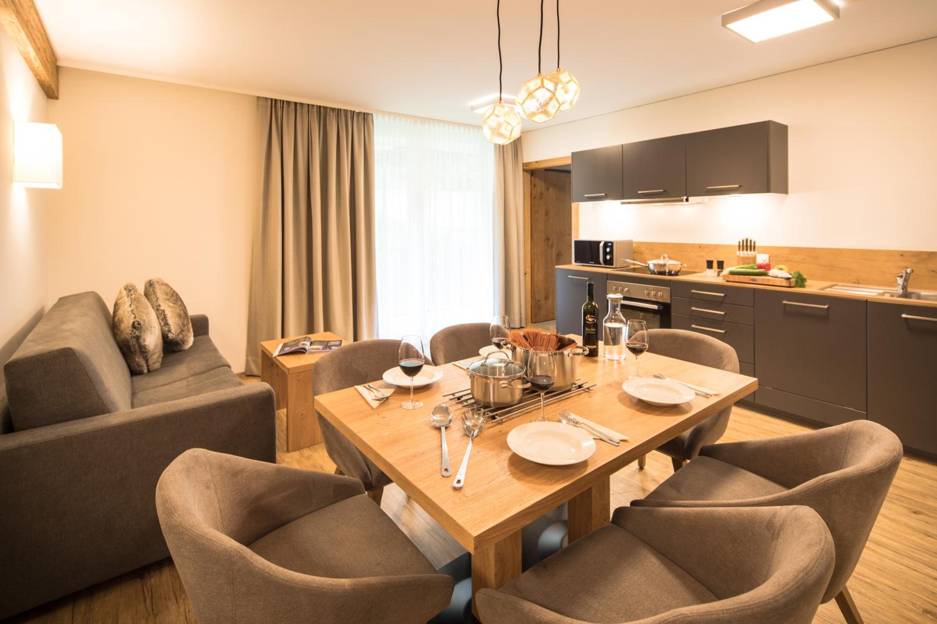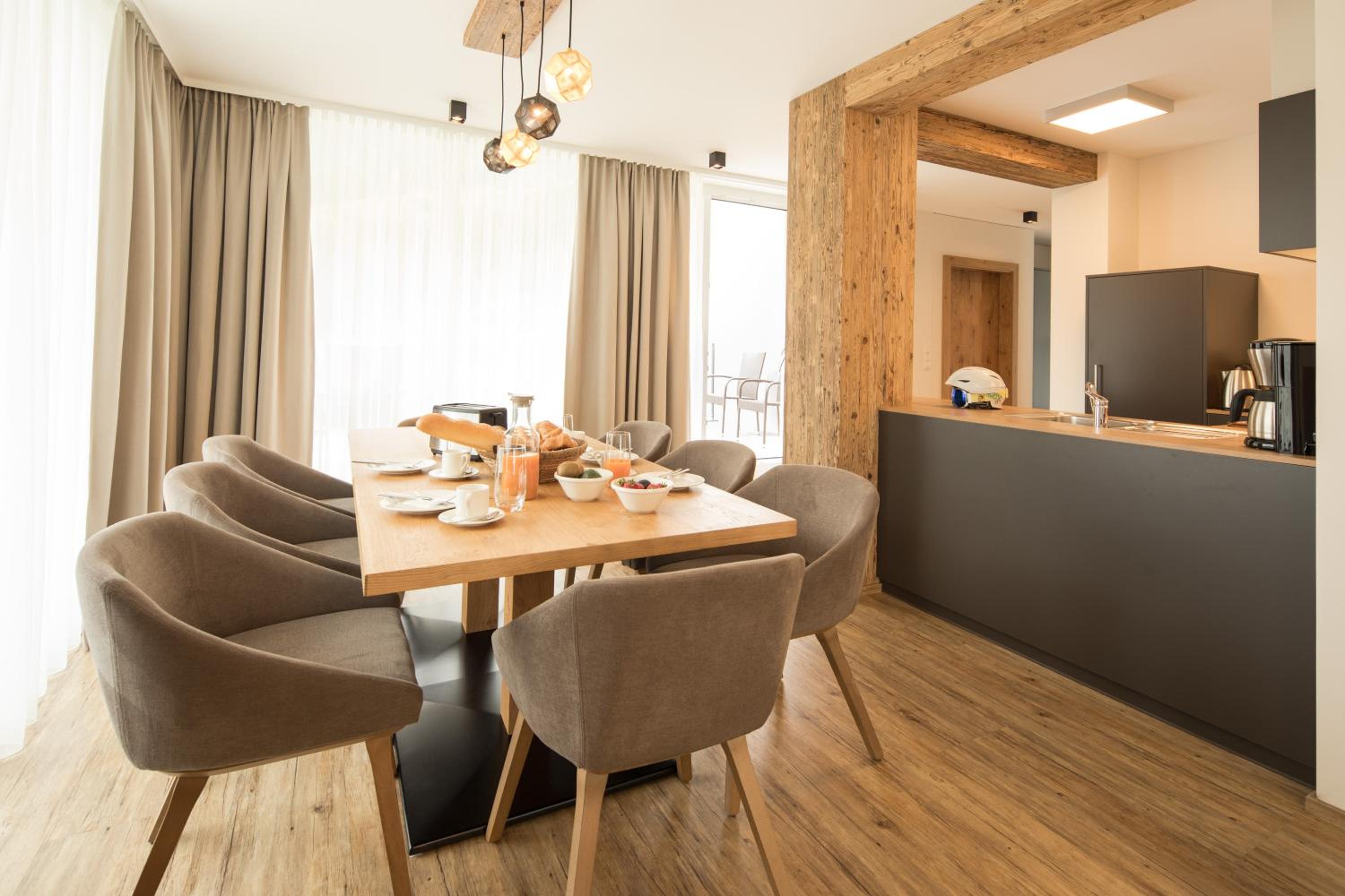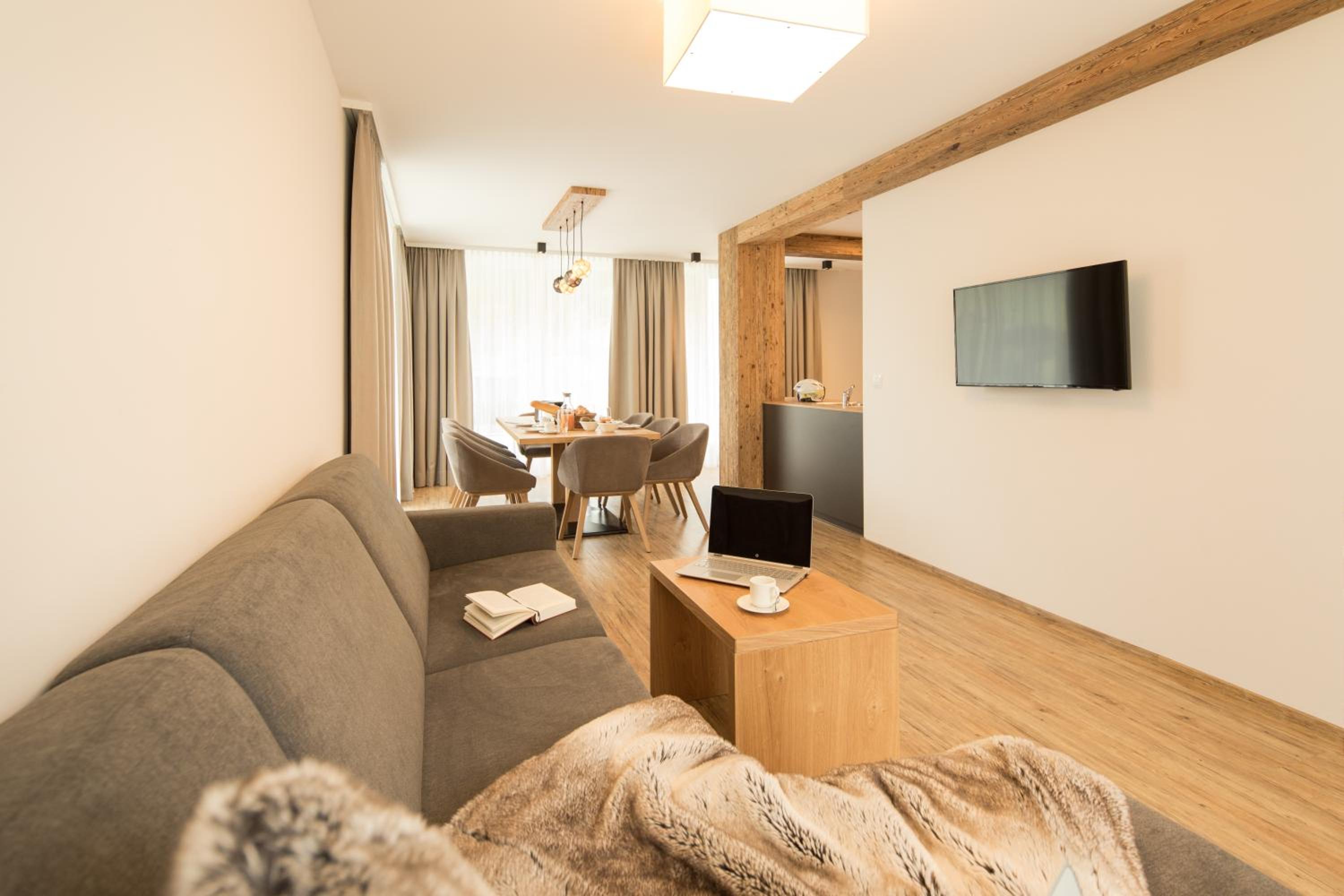 The property was really nice and modern, but with a traditional twist. The staff were really friendly and helped us get settled at the property. They were really helpful by providing lots of information about the ski resort, buses, taxis, restaurants, supermarkets etc. Ski passes can be bought from the property, which saves time and hassle at the main lift stations. The buses are every 30 mins and stop a very short walk from the hotel, approx 110 metres away. The resort has an excellent taxi service which is 20 euros into the main town, something we used to get back to the apartment after a day on the slopes.