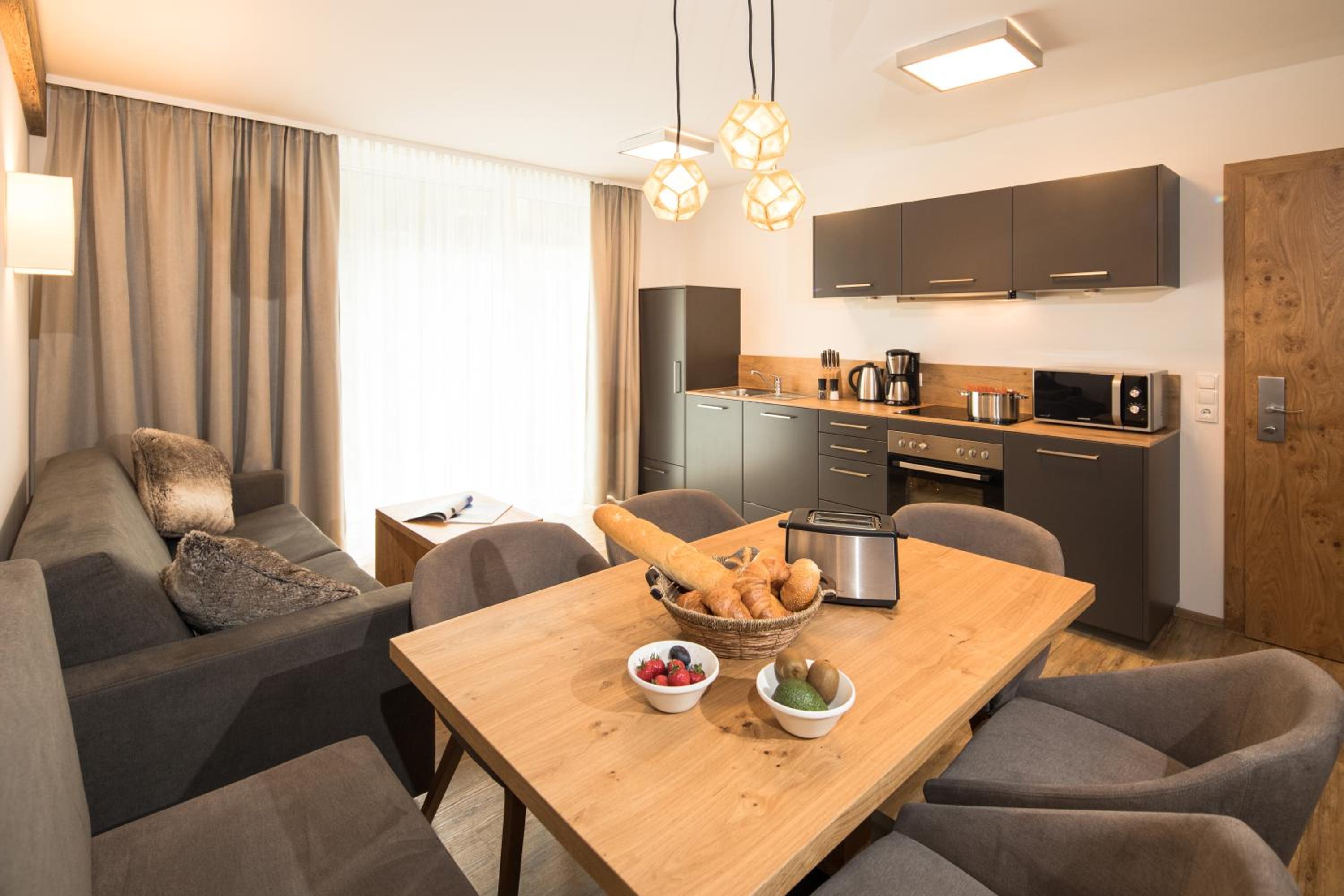 Very friendly owners who don't mind going the extra mile for your comfort. The appartment was very neat and looked like it was only about 2 years old even though it was 7 years old. The beds were good, bathrooms more than big enough, nice big terrace and good chairs at the dining table. Trash gets cleared every day, sheets once a week and bath linnen whenever you want it to. You can also have bread delivered at the door in the morning but we didn't use this service. Silvretta card for the cable cars and highway are included in the price of the accomodation.