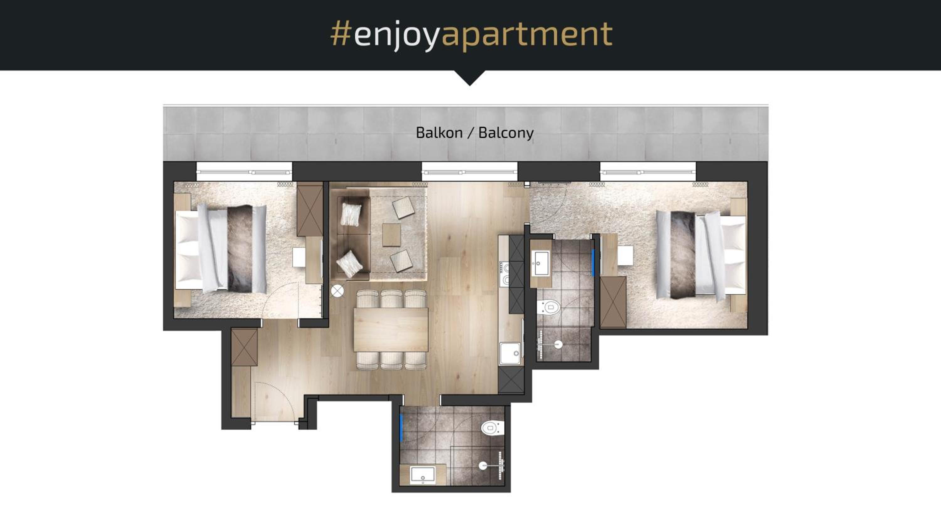 Nice appartement with nice sleeping rooms & bathrooms.