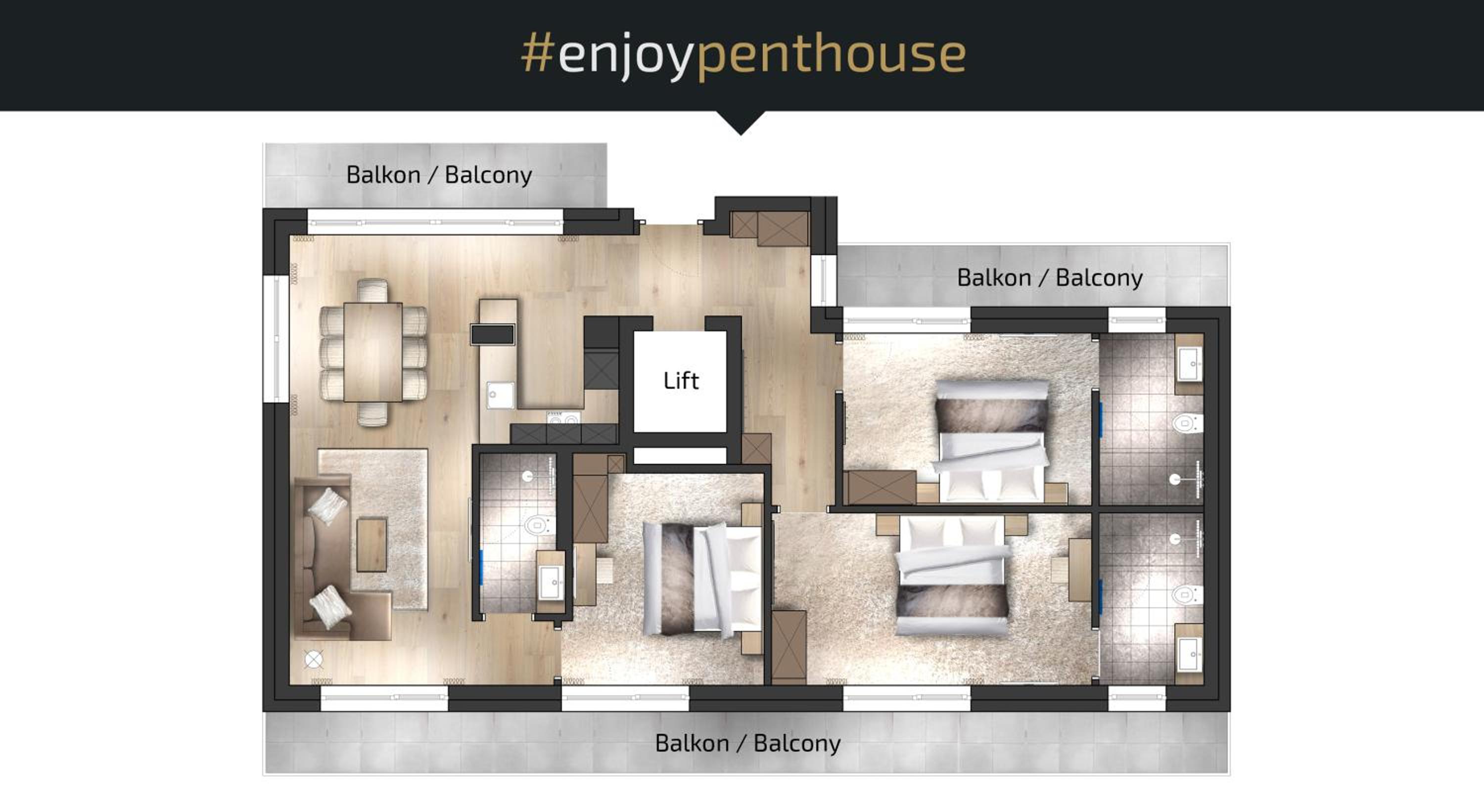 Everything! The penthouse is really spacious, it’s in a quiet place and easy to get to the ski lifts by the free bus. The beds are super comfy, it has a proper kitchen and three bathrooms…it’s amazing.