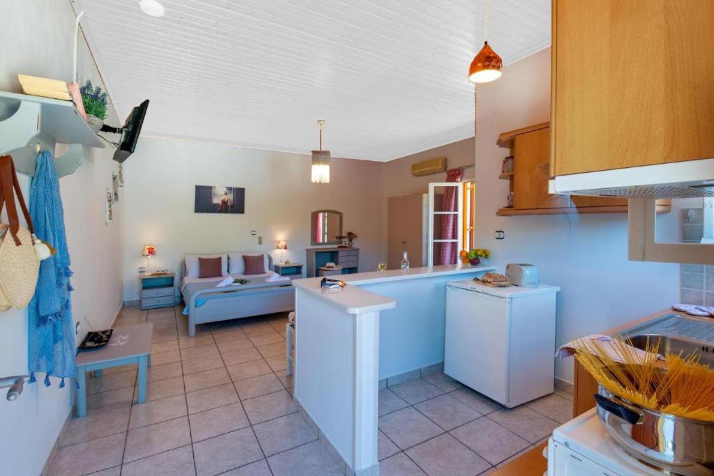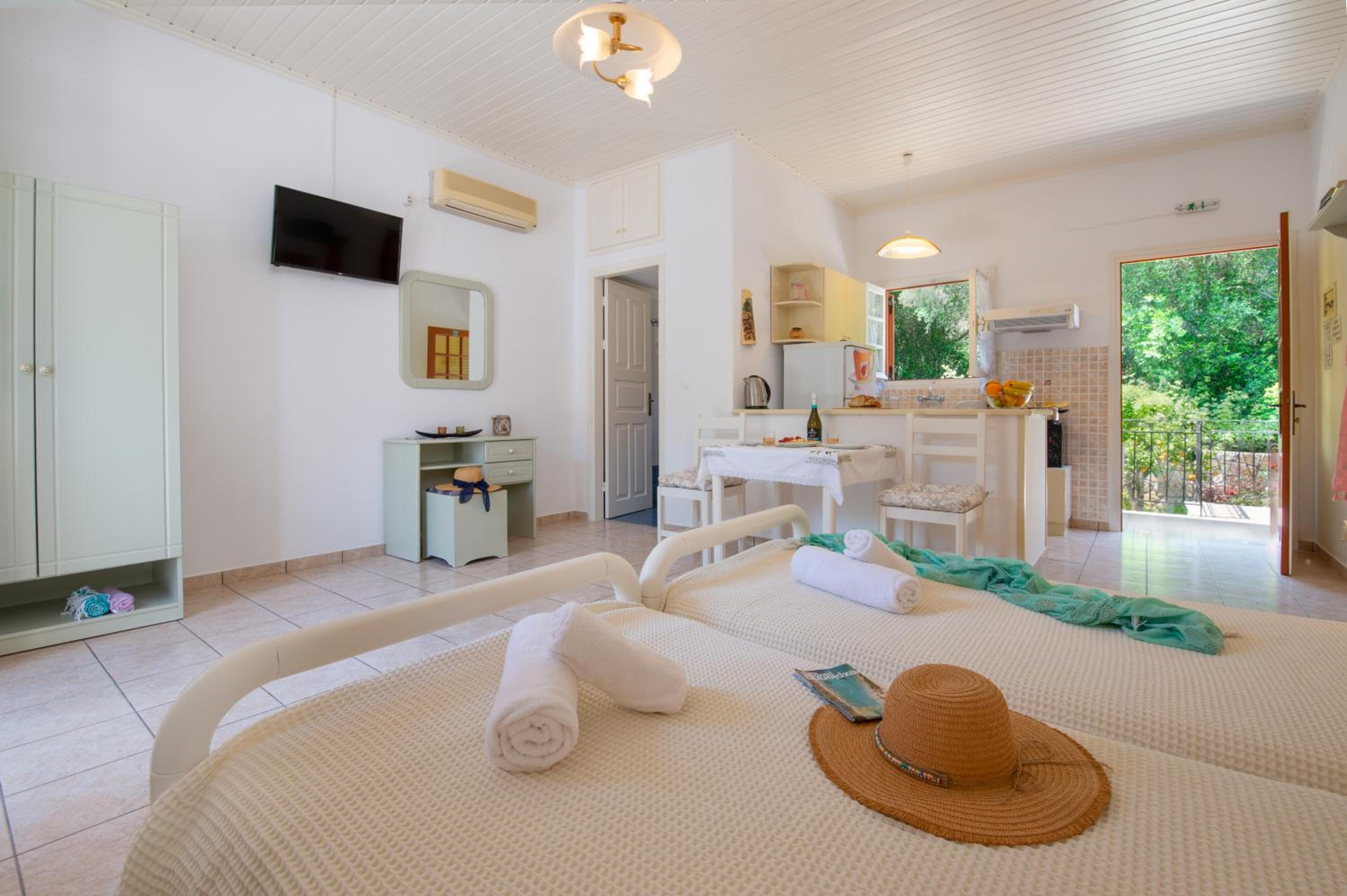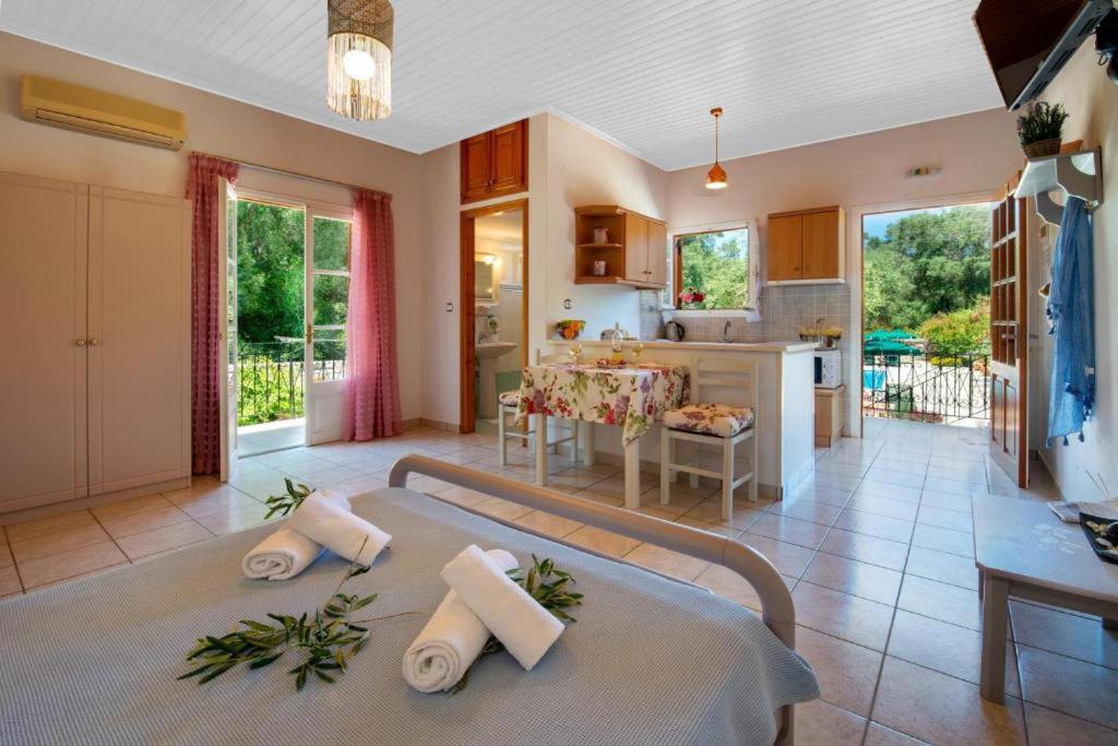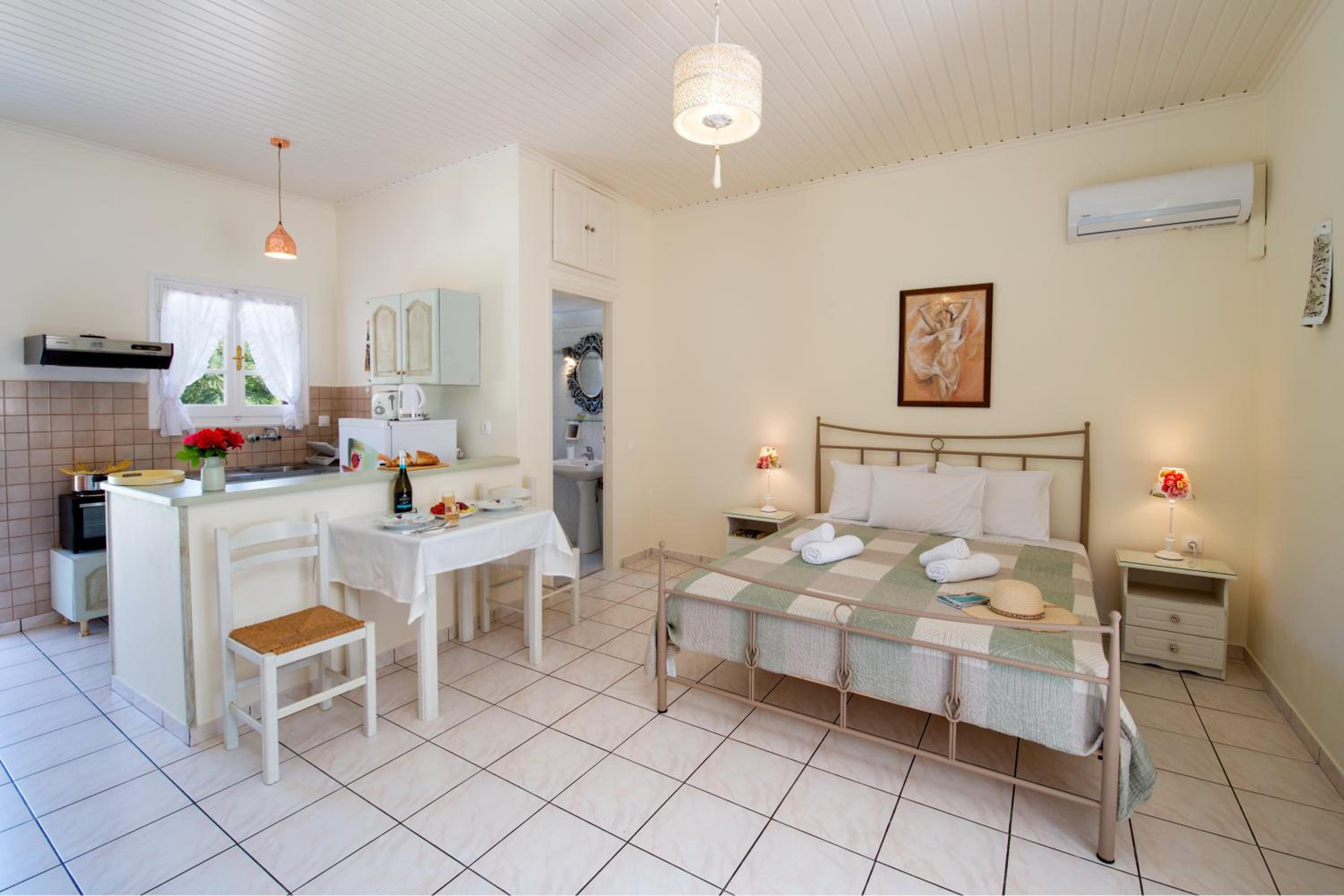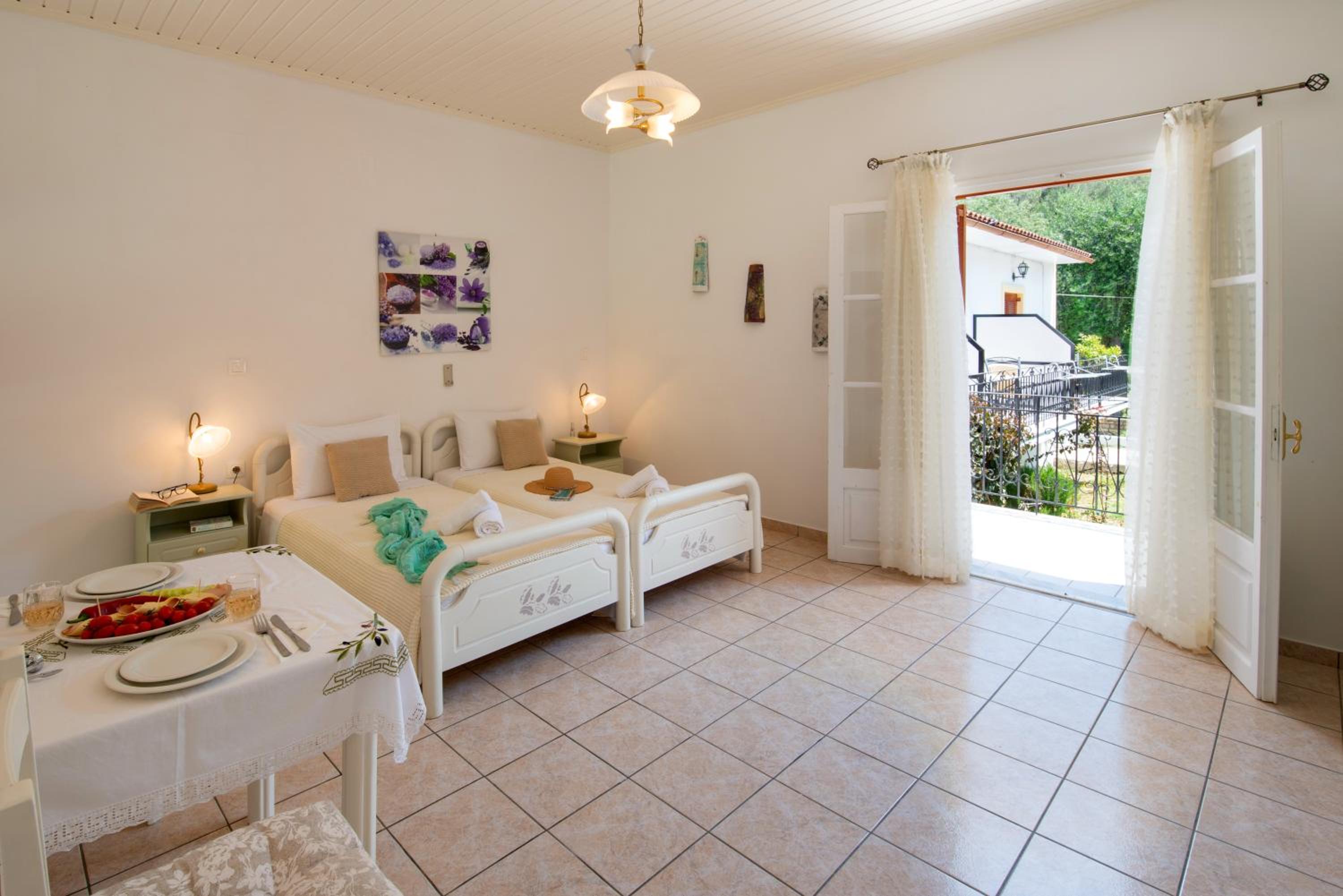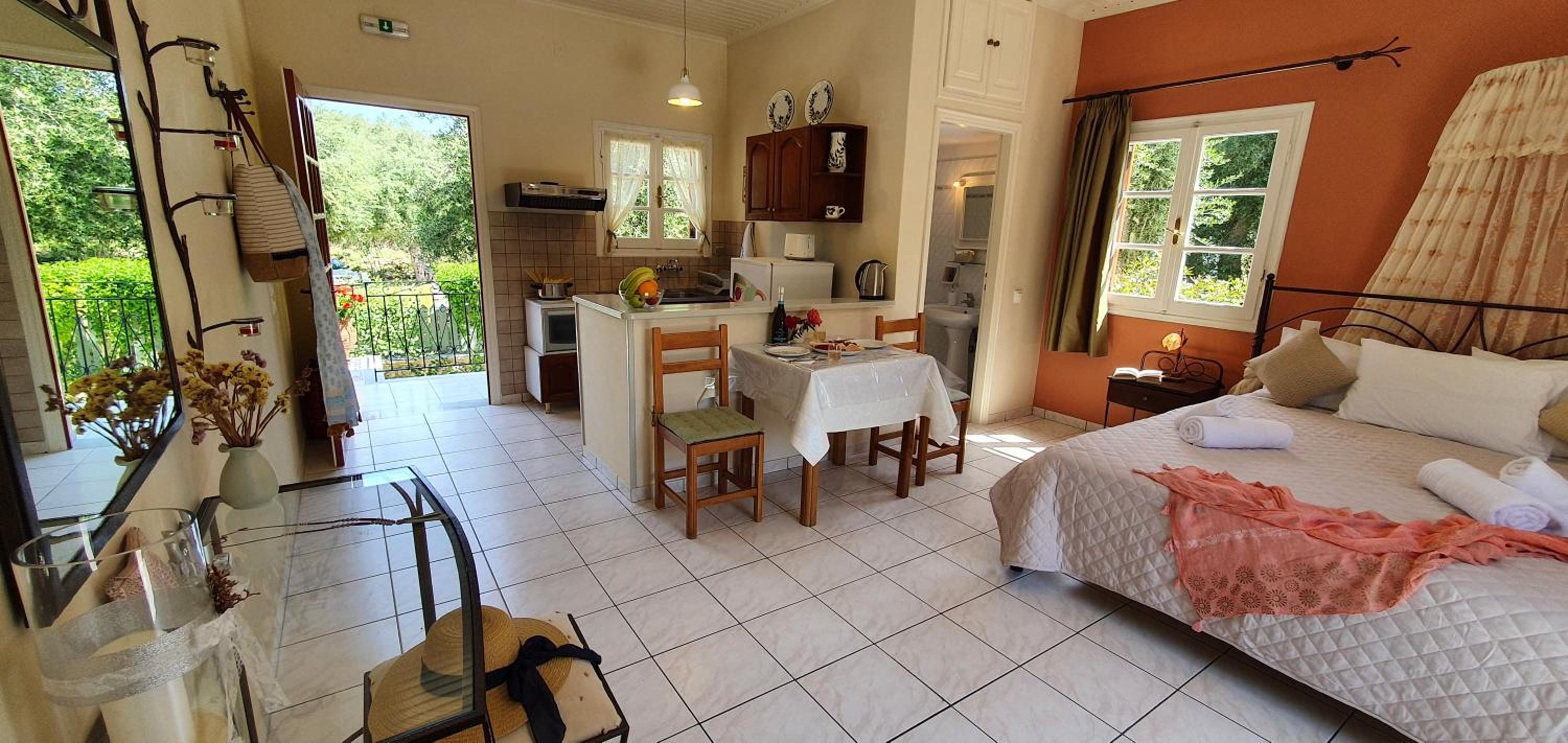 Super studio de grande taille dans un écrin de verdure, un peu à l' écart mais à proximité du centre de Lakka. Au calme, ce studio offre tout ce dont on a besoin pour des vacances paisibles et réussies. Très propre, 2 terrasses pour le logement permettant de petit déjeuner ou dîner en extérieur. La climatisation est bien appréciée. Bons conseils du propriétaire pour les balades et tours de l ile. Je recommande vraiment cet endroit. La piscine est très agréable, équipée de bains de soleil. Bordée d oliviers exceptionnels, ce lieu est vraiment hyper agréable.