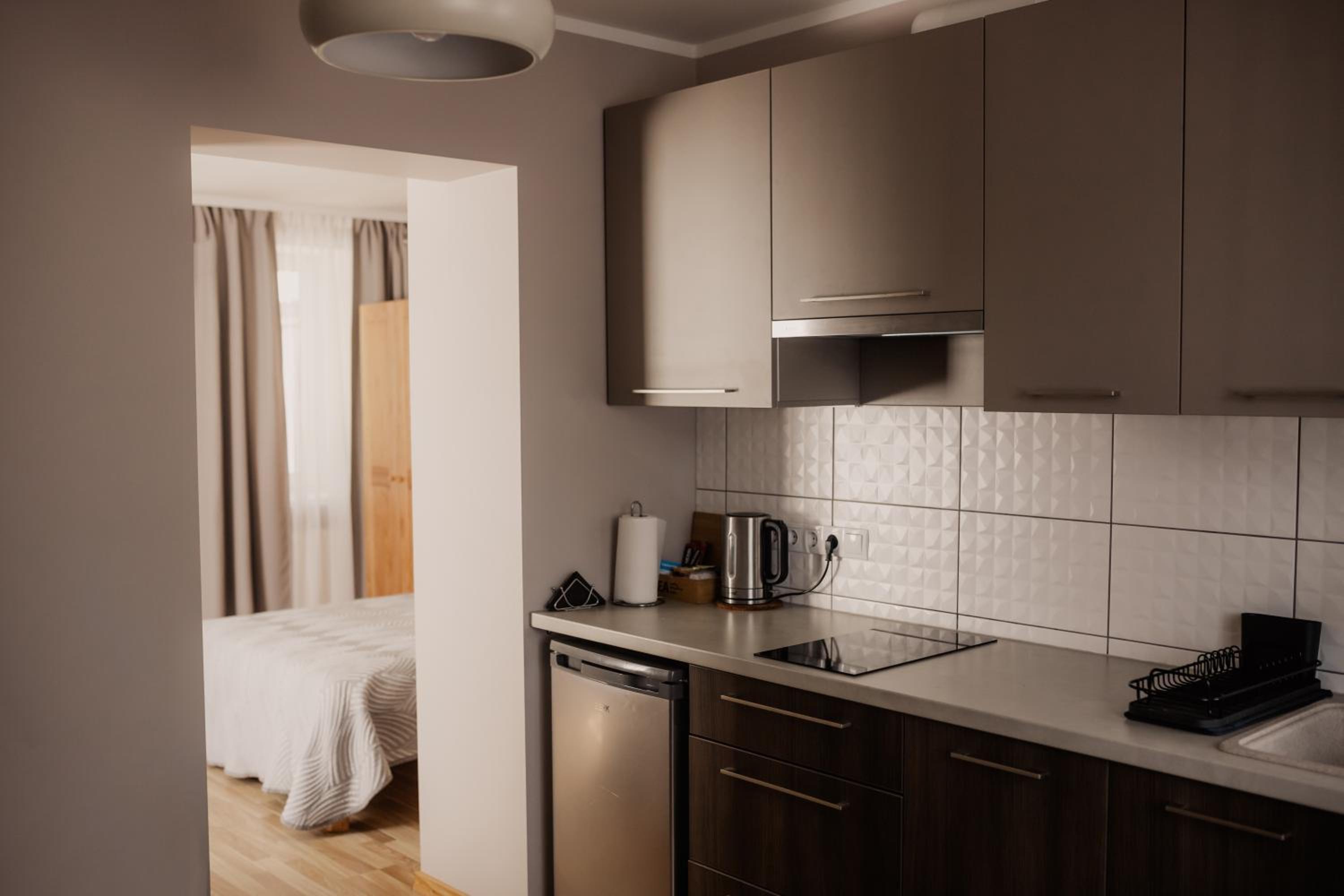Замечательное месторасположение, красивый вид из окна. Хороший интернет. Достаточно комфортные номера. Миникухня со всем необходимым. Набор полотенец полный. Достаточно мебели. Хорошие гардины. Чисто. Все работает, техника исправна.