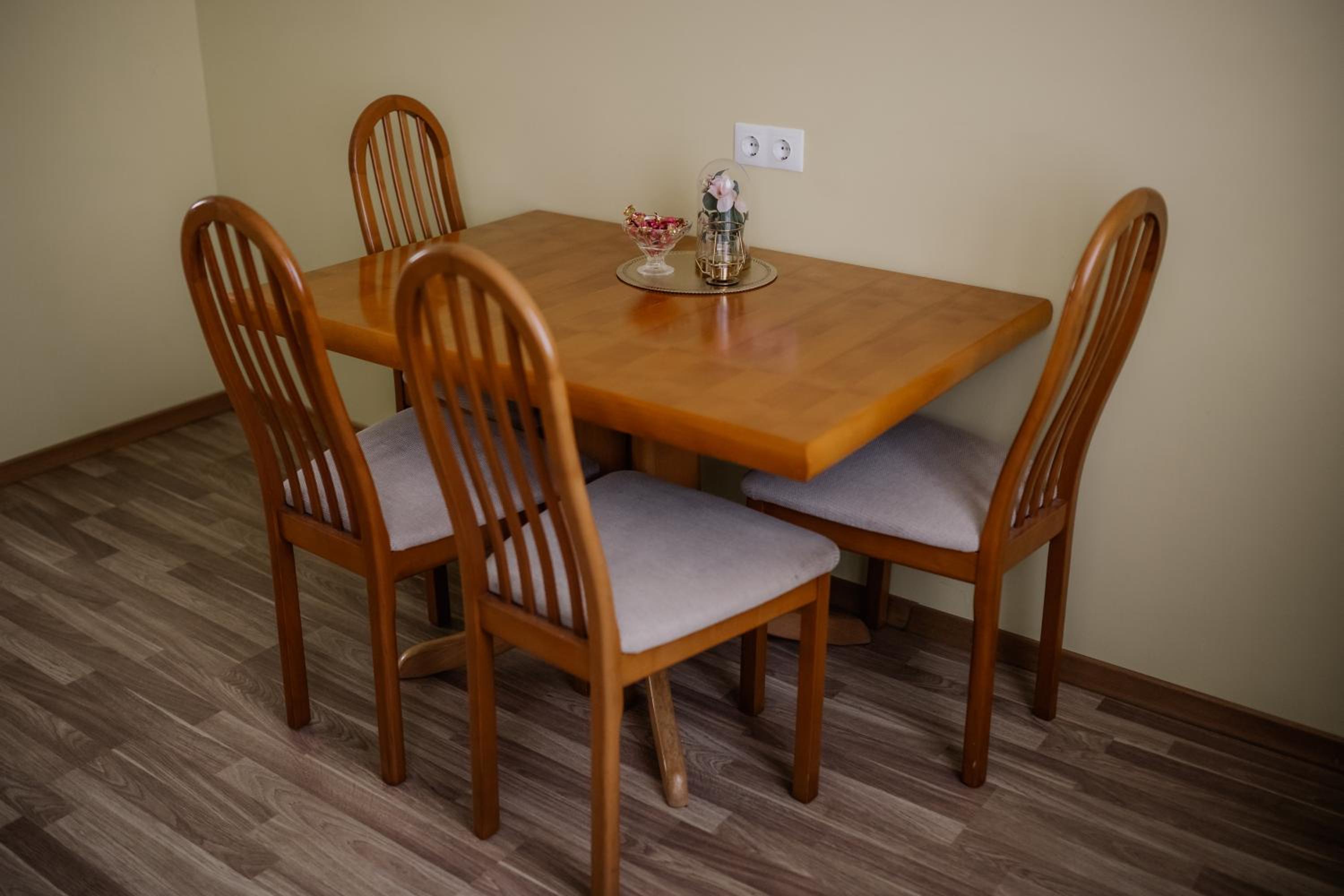 Звукоизоляция условная (по прошлому заезду помню). Нет полотенцесушителя в ванной. Хотелось бы тапочки: пол холодный на 1 этаже. Нет фильтра для воды. Вода жесткая, накипь в чайнике серьезная.