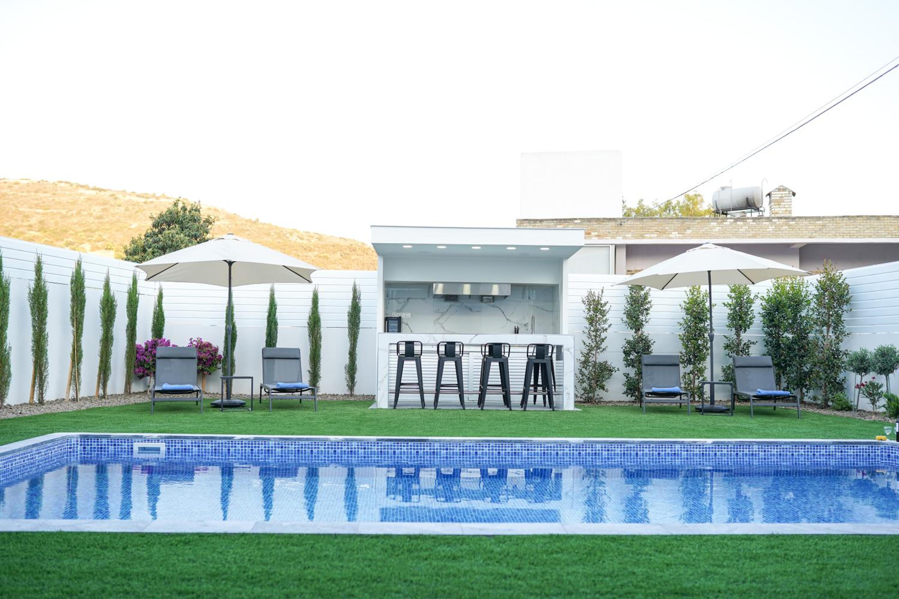 1. Relaxation and Recreation: Guests at Kamaroporta Luxury Apartments can unwind in the hot tub or soak in the pool while enjoying picturesque garden and inner courtyard views.