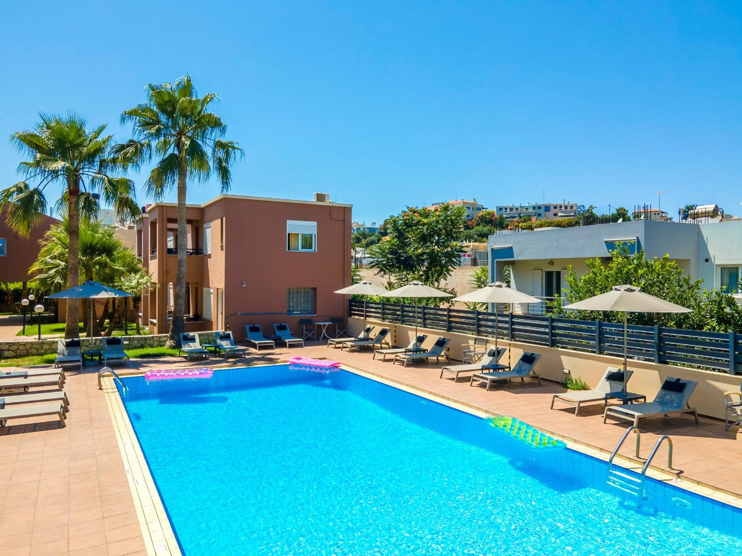 Fantastische gastvrijheid, heerlijk zwembad, schoon en netjes! Dichtbij zandstrand met verhuur ligbedden en strandtent en dichtbij bushalte om naar de oudstad van Chania te gaan. 10 min rijden.