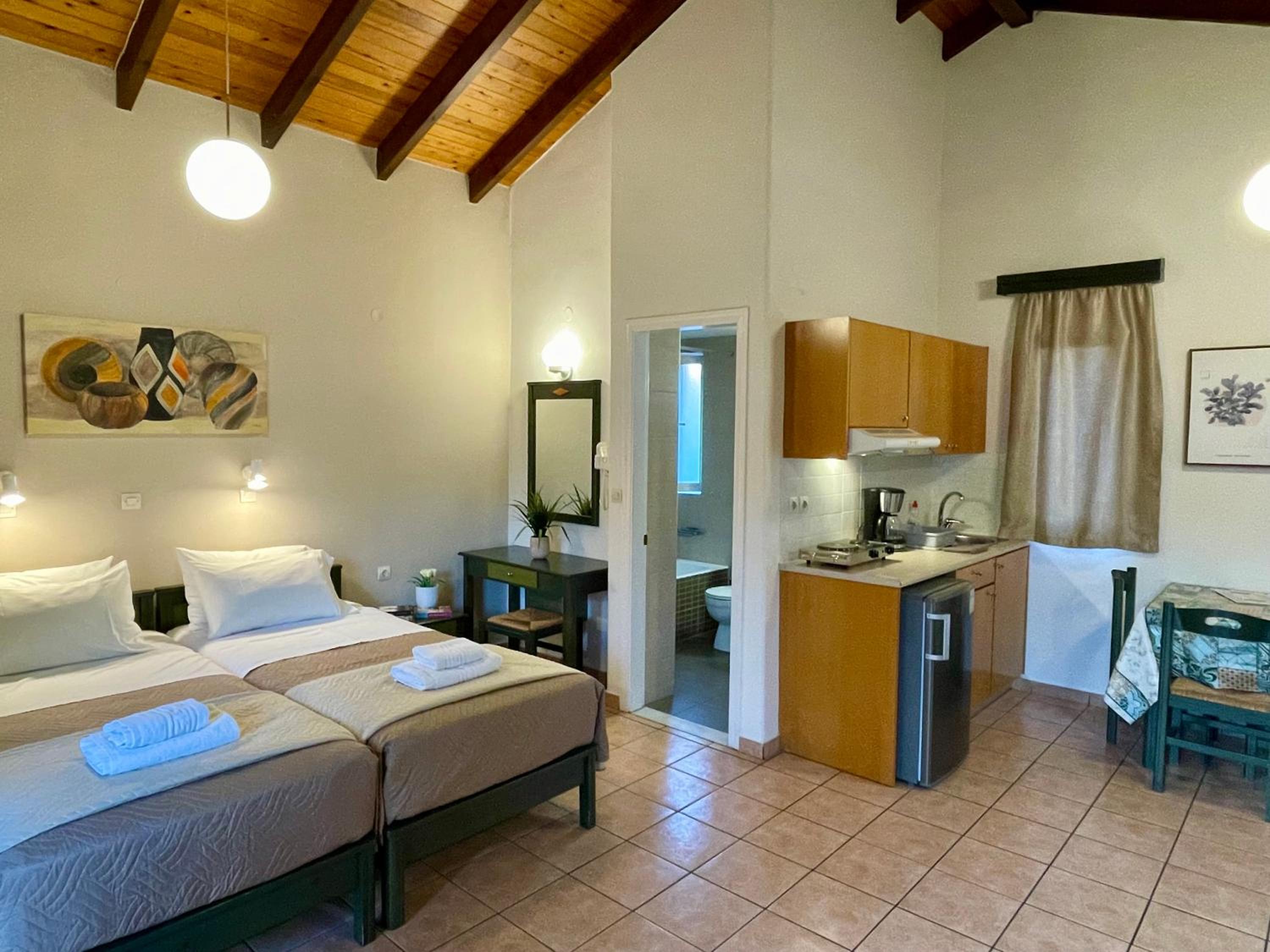 Κλιματισμός σε υπνοδωμάτιο και σε κύριο χώρο. Άνετο μπαλκόνι. Φιλικό προσωπικό. Προσιτές τιμές για οικογένειες