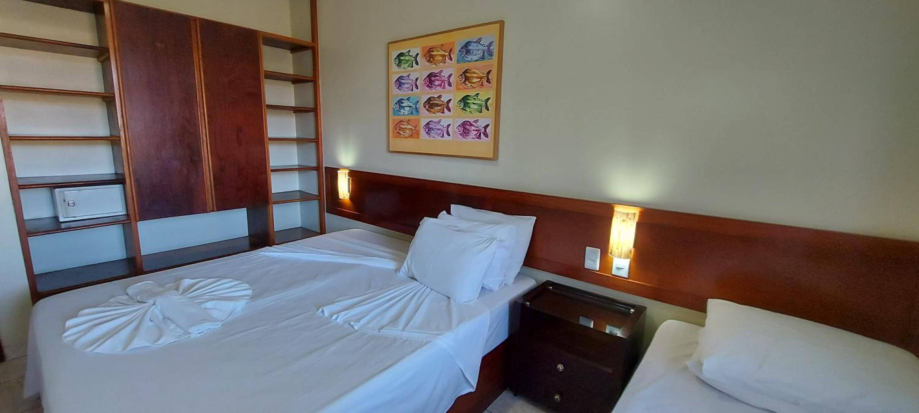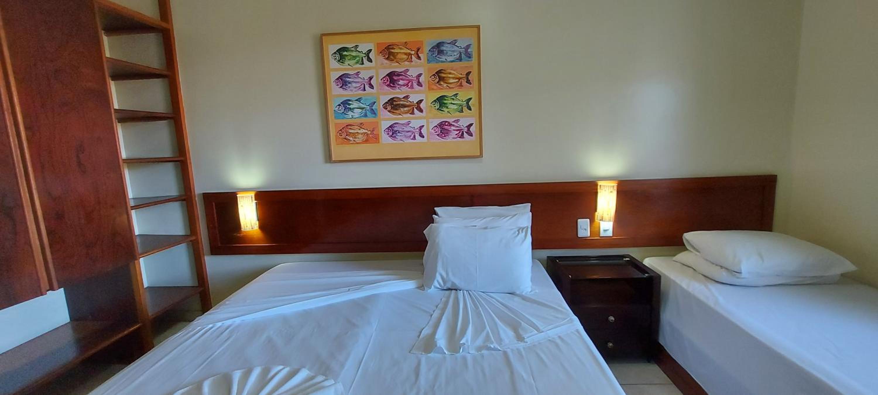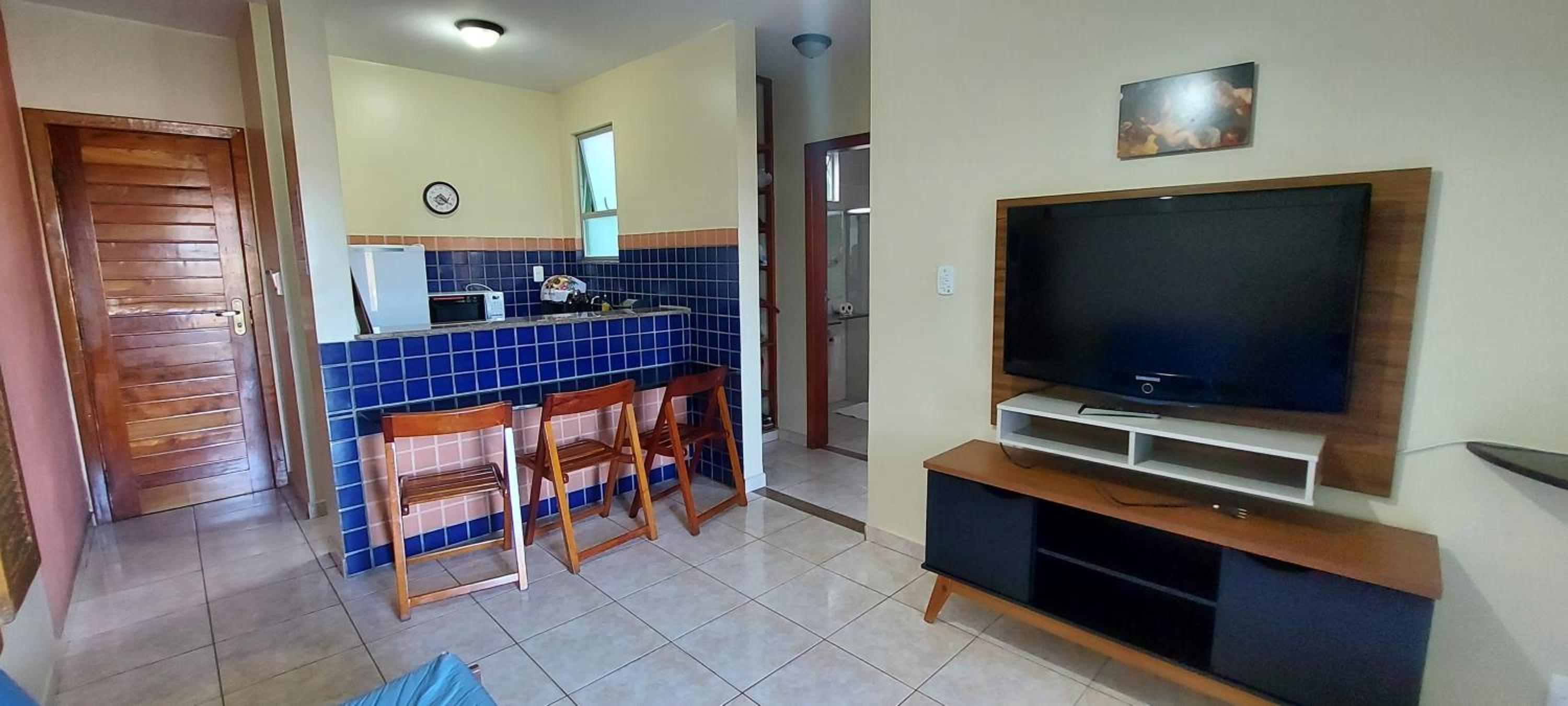 Quarto confortável, com pequena cozinha que contava com todos os utensílios para uso. Na varanda havia um secador de roupa, o que foi excelente para nós, para colocar toalhas, cangas e biquínis para secar. O ar condicionado funcionou muito bem. Tem Wi-Fi exclusivo para o quarto em que ficamos, colocado pelos proprietários do apartamento, com excelente qualidade. Ótimo chuveiro. No quarto há 2 televisões, mas nem tivemos tempo para usar. O café da manhã do hotel é espetacular! Funcionários atenciosos e simpáticos. O restaurante do hotel também serve almoço e jantar, com ótimos valores, e as refeições são muito caprichadas e saborosas. Valeu muito mais a pena jantar no hotel do que na rua em alguns dias. O hotel está localizado longe do centro, mas em frente à praia de Taperapuan, com alguns restaurantes, lanchonetes e farmácia próximos. Nossa estadia foi ótima! Voltaremos, com certeza!