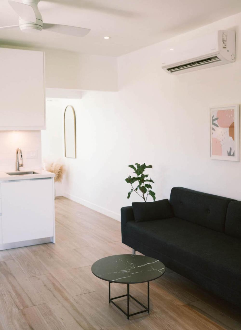 so clean, even the shampoos are like spa, perfect bed , kitchen, pool with an ocean view , living room, smart tv, good air confectioning, the staff is available