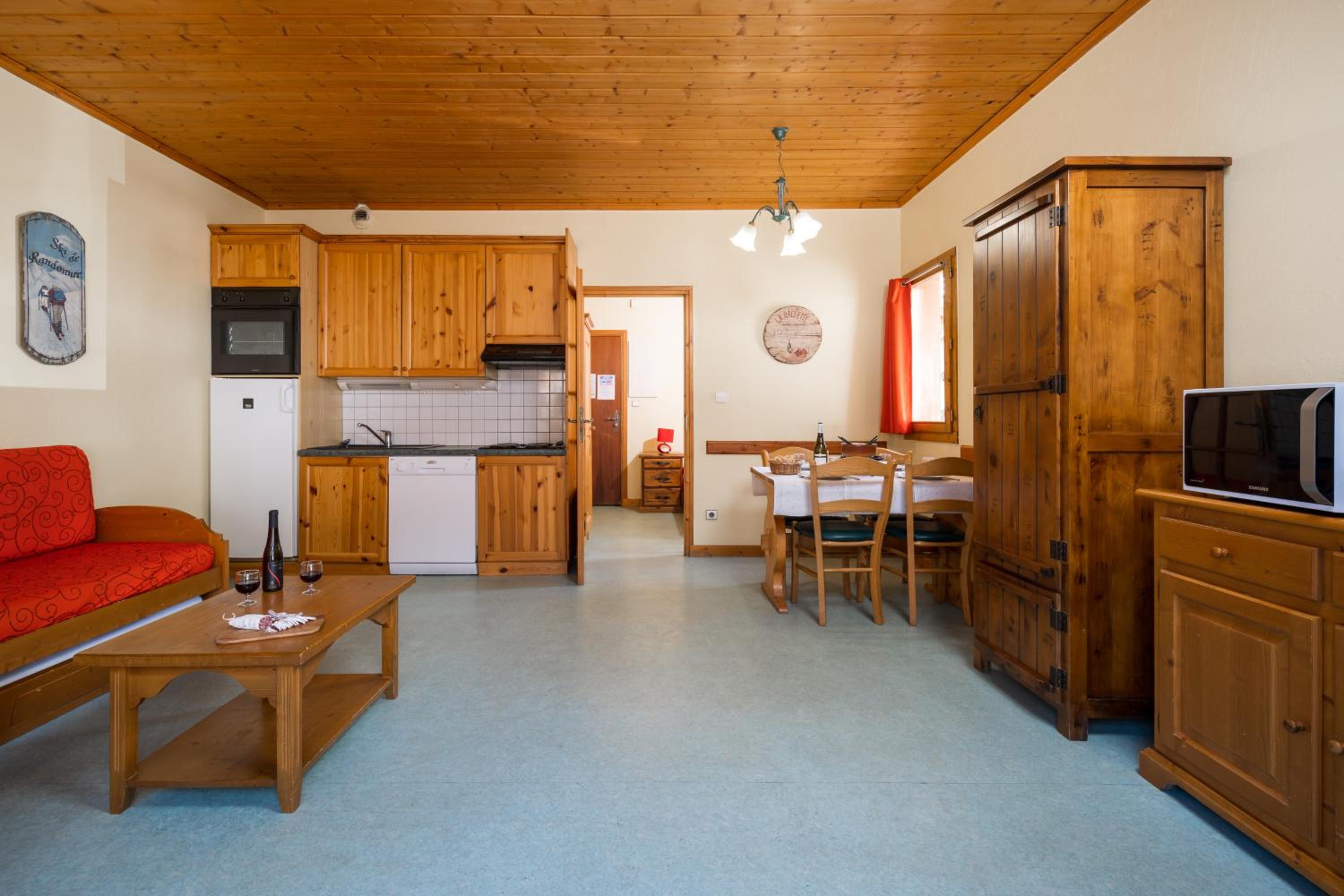 Experience the ultimate mountain getaway at Alpes Roc residence. Nestled in the stunning Vanoise National Park, our chalet-style apartments offer the perfect retreat just steps away from the ski slopes. Enjoy breathtaking mountain views from your private balcony and unwind in the cozy living area equipped with a TV. Our modern apartments feature all the amenities you need, including a fully-equipped kitchenette.