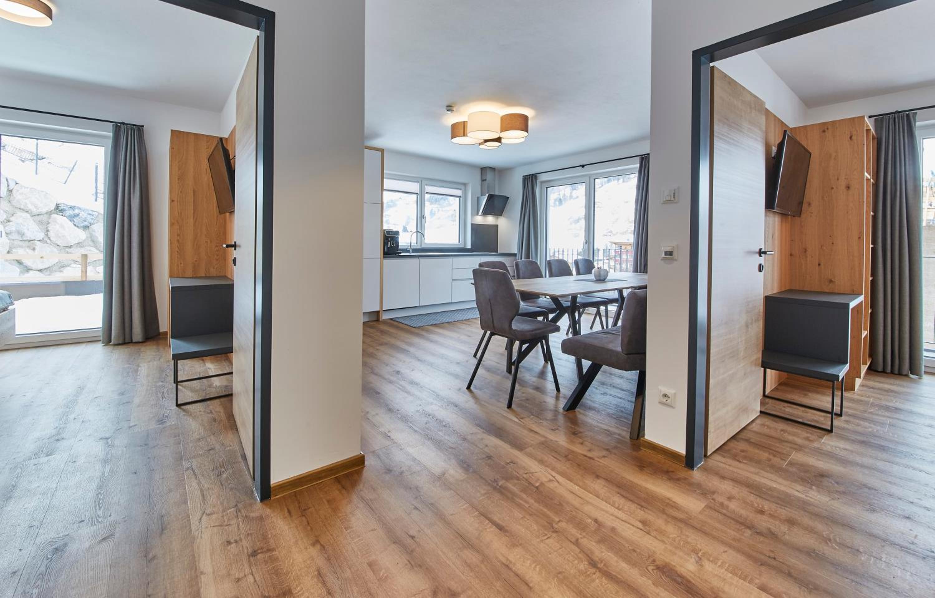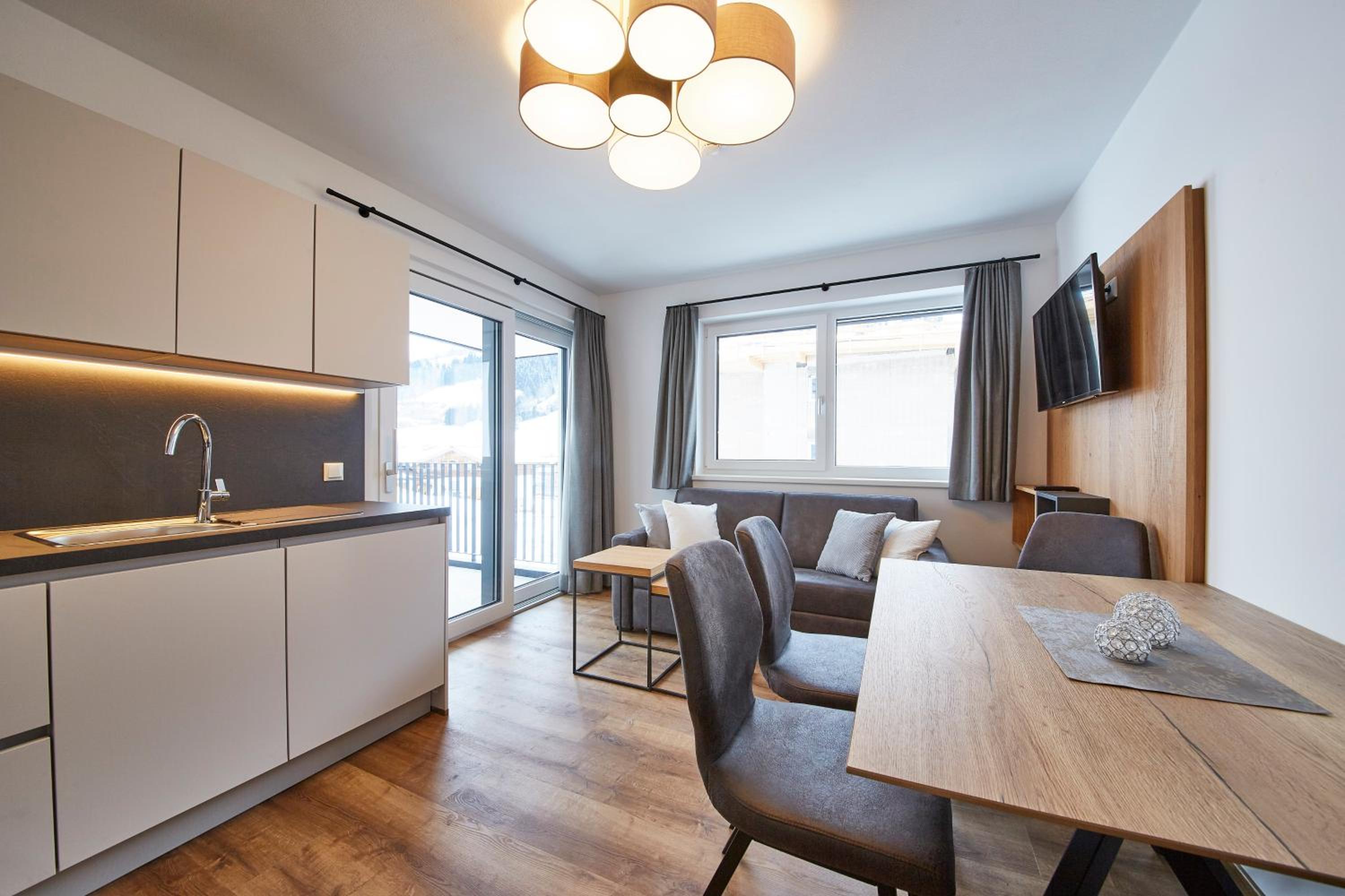 The Wiesl Lodge Saalbach offers contemporary accommodation with balconies and stunning mountain views. Guests can enjoy a fully equipped kitchen, comfortable seating areas, and modern amenities such as flat-screen TVs and free WiFi.