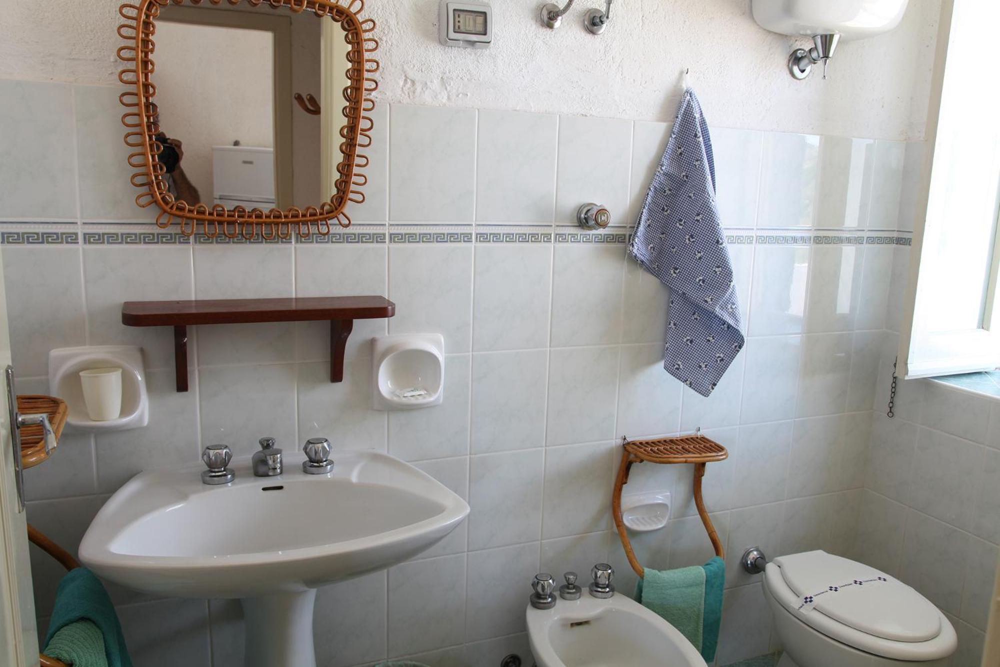 Il bagno aveva la porta che non chiudeva bene, non c'era una mensola di appoggio sul lavandino, solo un piccolo specchio in bagno per tutta la casa e la doccia col soffione fisso, scomoda per lavarsi. Inoltre non c'erano abbastanza prese di corrente.