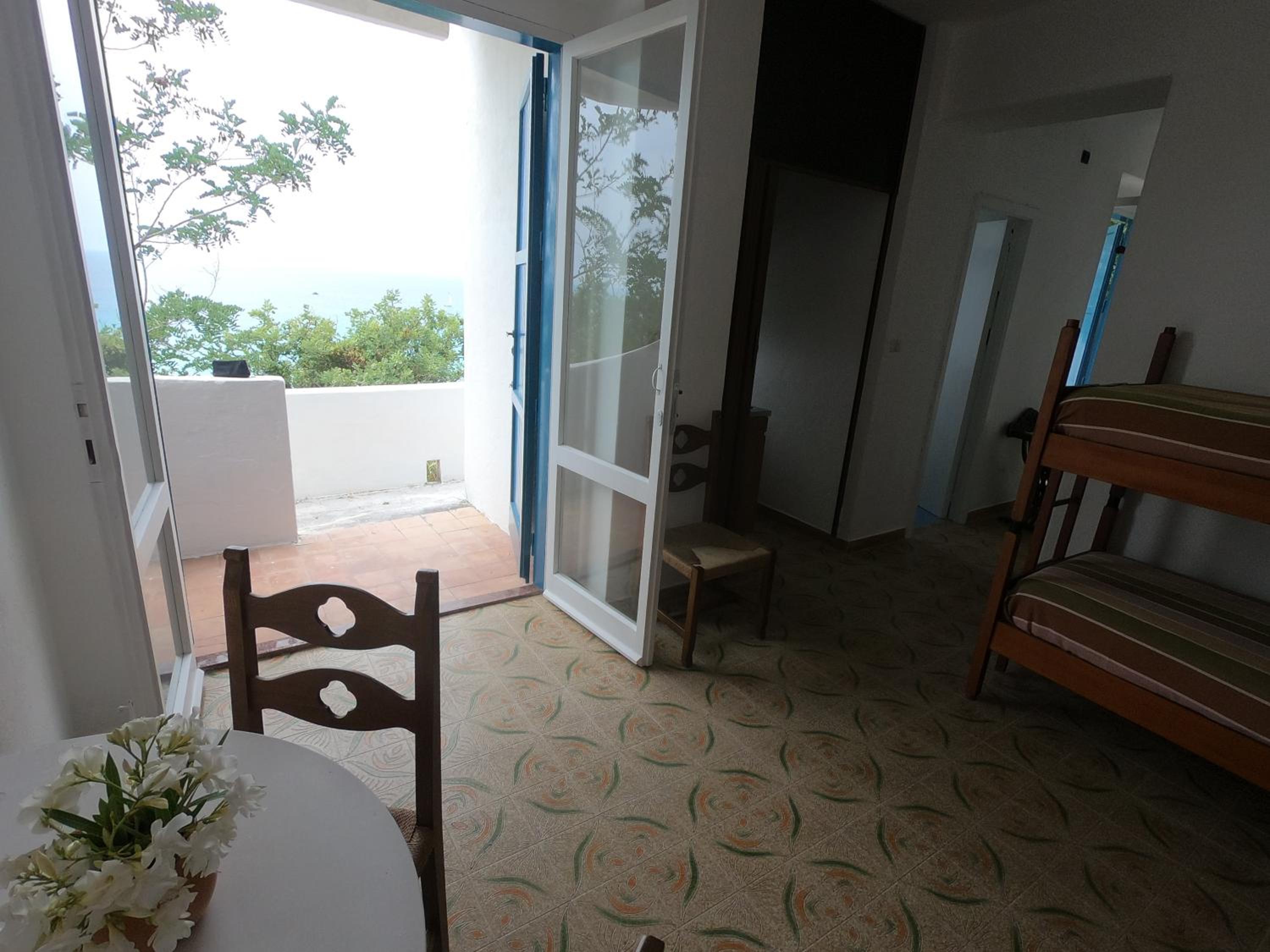 Los atardeceres espectaculares desde la terraza de la habitación, las vistas y el ruido de las olas por la noche. Elisabeth, muy amable, nos indicó perfectamente cómo llegar, y nos dio agua y fruta la primera noche y nos preparó un plato de productos típicos de la zona la segunda, que estaba delicioso. La playa, con hamacas y sombrillas a nuestra disposición, está a 5 minutos a pie con una cuesta bastante pronunciada, que luego resulta menos de lo que parece. Muy tranquila, y con aguas transparentes. La zona de hamacas es de arena, pero en el agua hay piedras, por lo que es recomendable llevar escarpines. El apartamento, aunque algo viejillo, estaba muy limpio, y la verdad es que la ubicación, las vistas, la playa privada y la amabilidad de Elisabeth compensan eso con creces. La urbanización tiene zonas comunes con mesas y sillas y miradores para los que se alojan en habitaciones sin vistas al mar. Además tiene parking gratuito