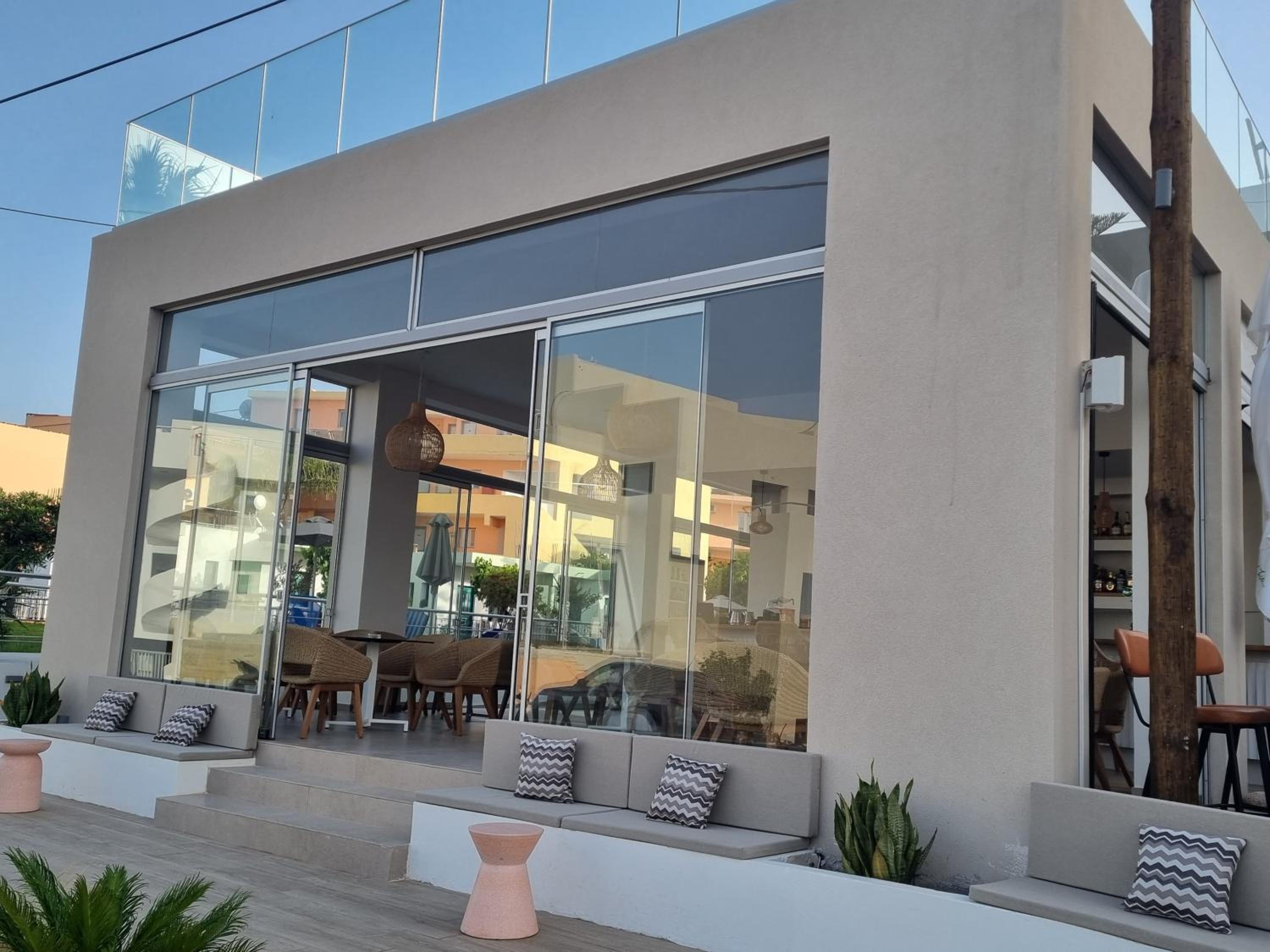 We stayed here for 3 nights as part of a longer holiday in Crete; great location and the room was very comfortable/modern. Welcoming and friendly staff, some helpful recommendations about what to do and even some help arranging a taxi to Chania which was much appreciated. Bar was also a cool space, bonus that it had football showing!