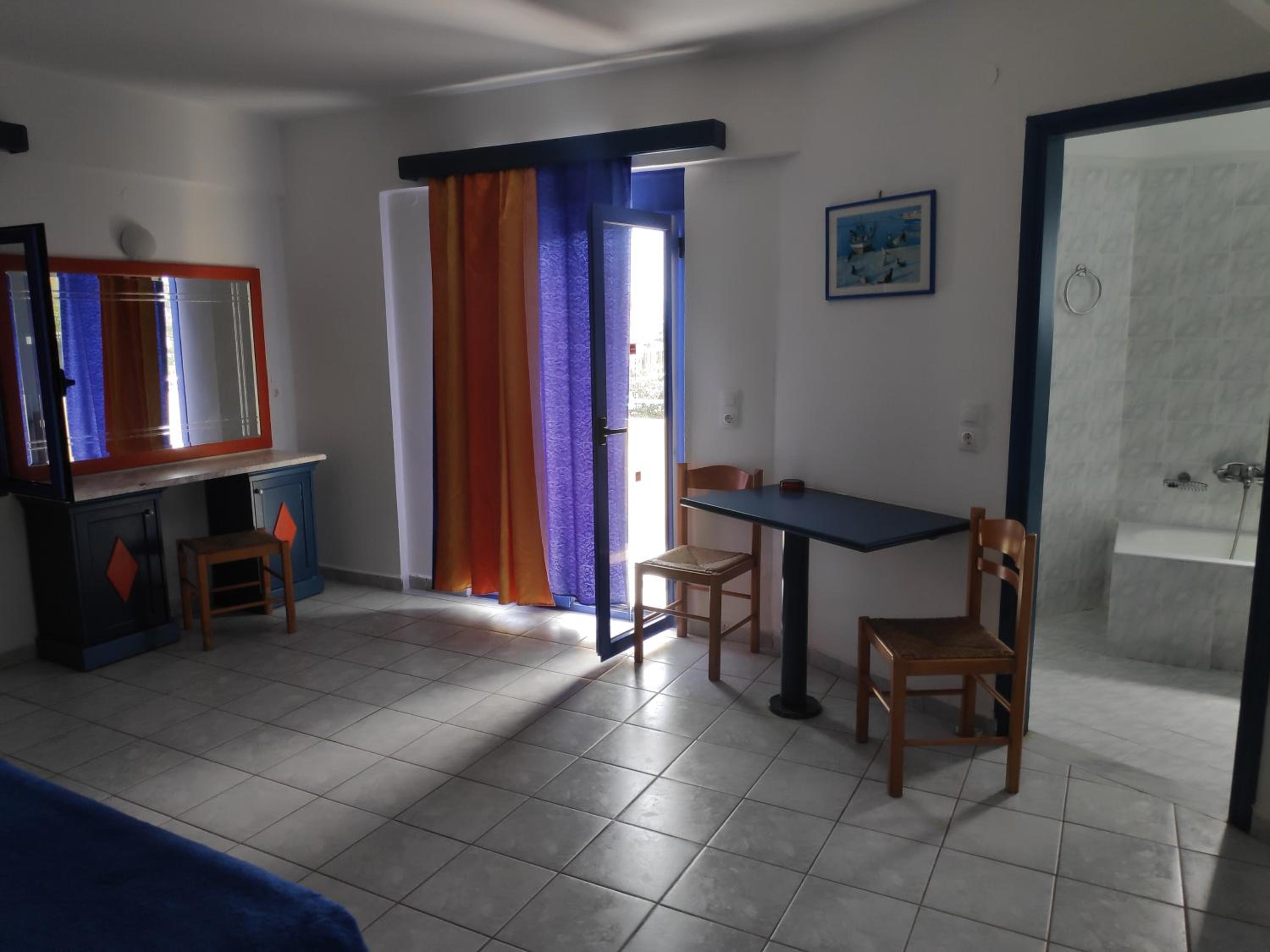 The bathroom is a bit dated and cramped, particularly the shower where it is impossible to shower without the shower curtain sticking to you as so narrow space. Also the hook for the shower head is not at head height, it is only about half the height you would expect. Strange. The swimming pool is quite small. But you can see it on google maps aerial view so you can check (no google maps streetview for this street though) . Having said all that, I was pleased overall and I feel it does represent very good value for money. In fact I would say that it was better overall than i though it might be for the price. Aircon is 6 euro extra per day - I did know that when I booked - but I reiterate here in case some people have not read that.