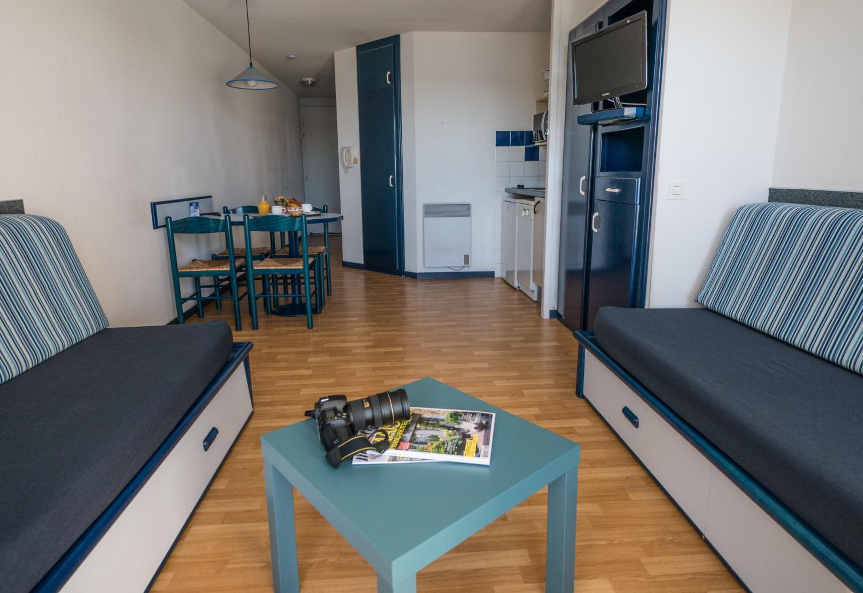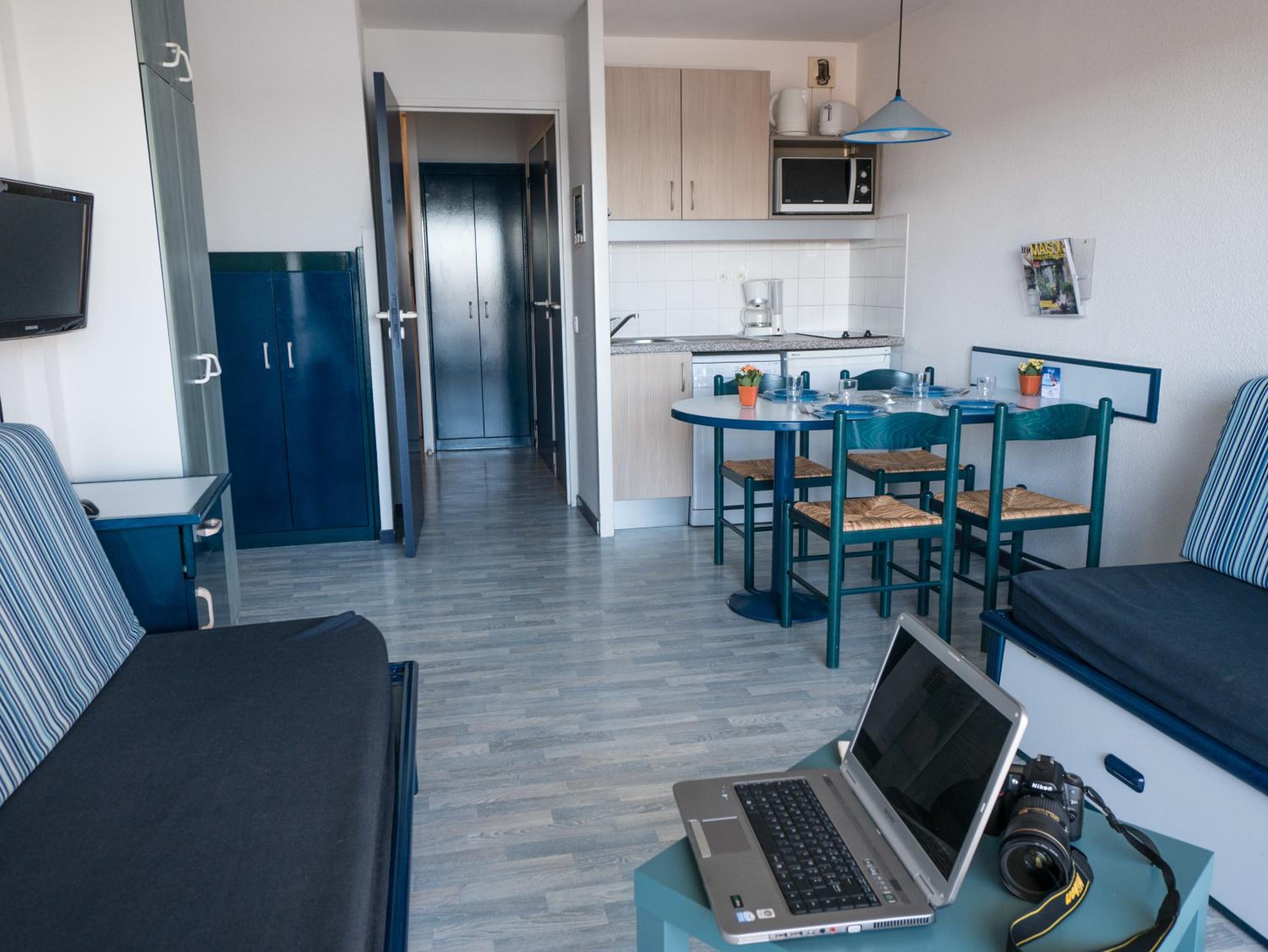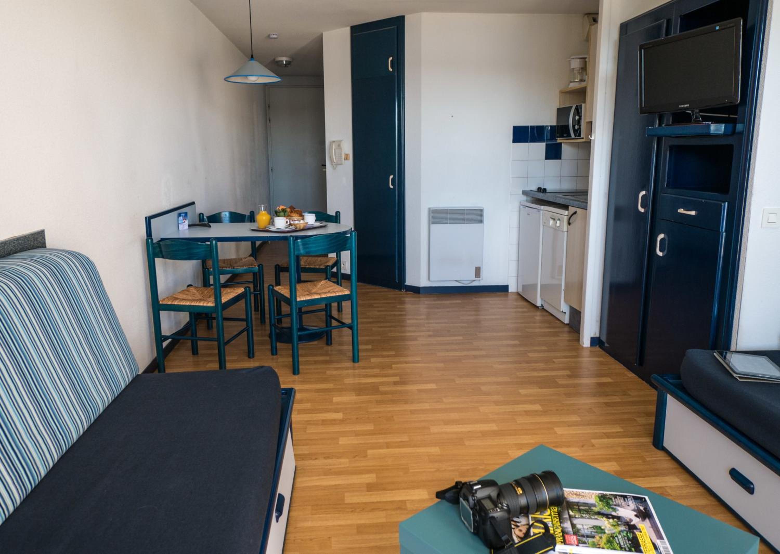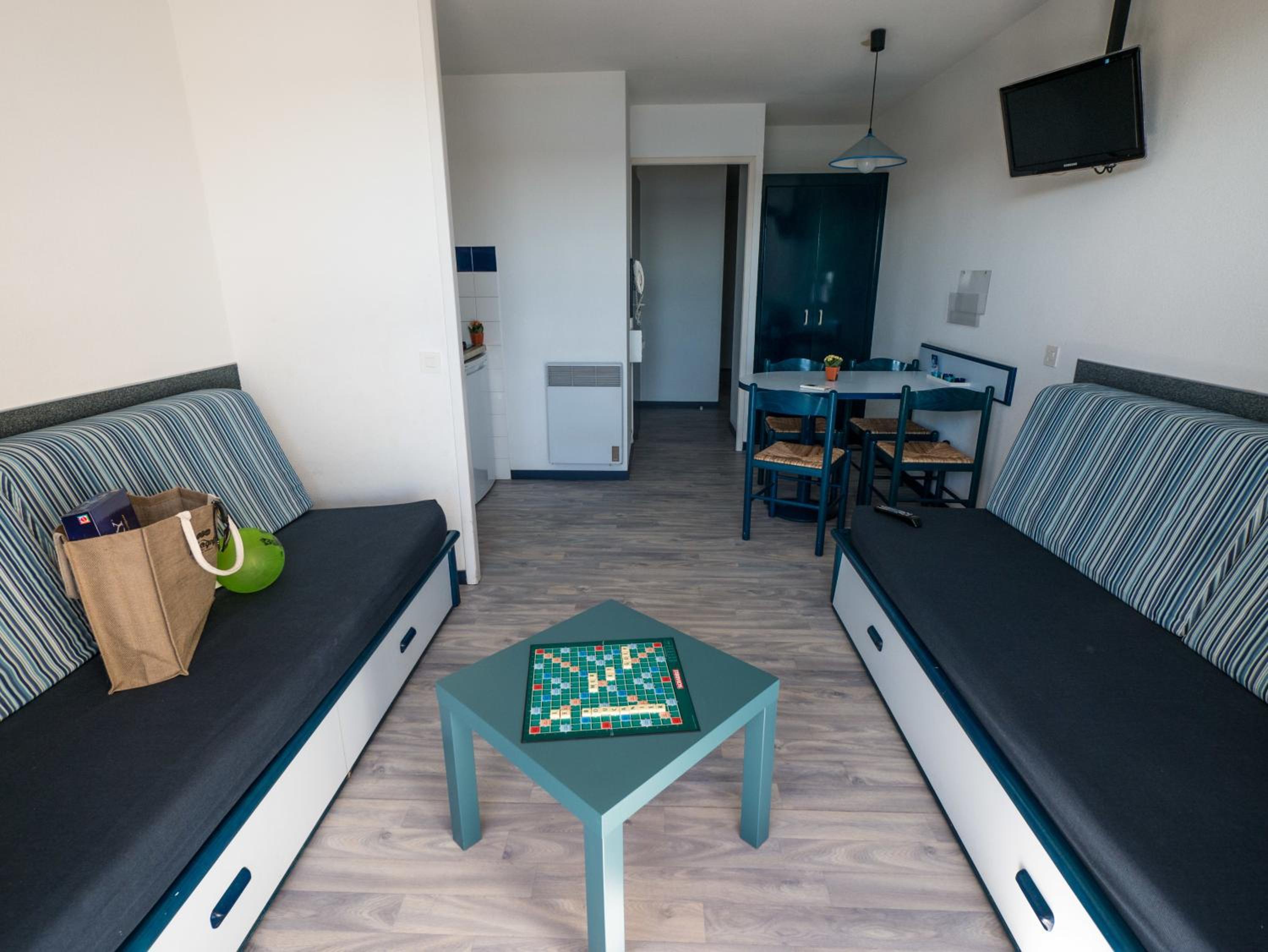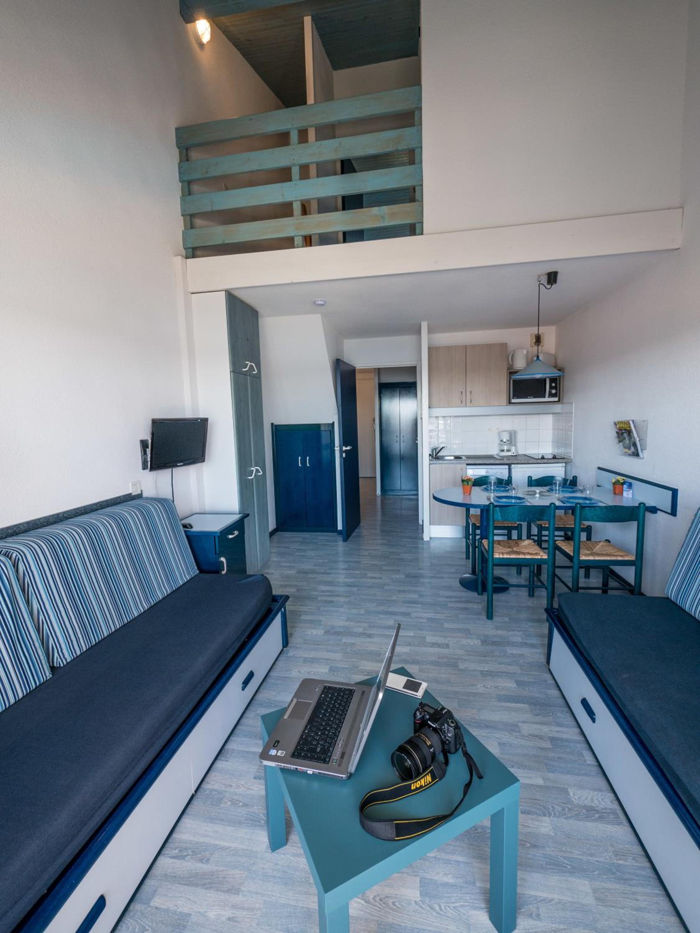 The kit includes: 1 cot with 1 bed sheet and 1 high chair for infants from 6 months old. For stays from 1 to 6 nights, end-of-stay cleaning is included, although the kitchenette and dishes still need to be cleaned by the guest.