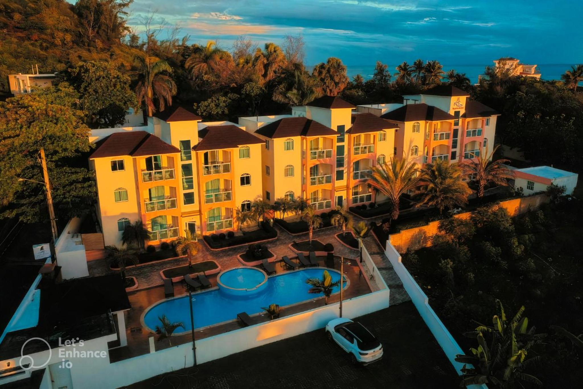 Excelente, lugar facil de llegar cerquita de muchos lugares turisticos en Puerto Plata. Las facilidades estaban limpias y el personal fue muy amable, hasta nos dieron recomendaciones de lugares para comer rico. La piscina muy comoda y tiene su area bajita perfecta para los que viajamos con niños. En resumen, buen lugar a buen precio con facilidades comodas.