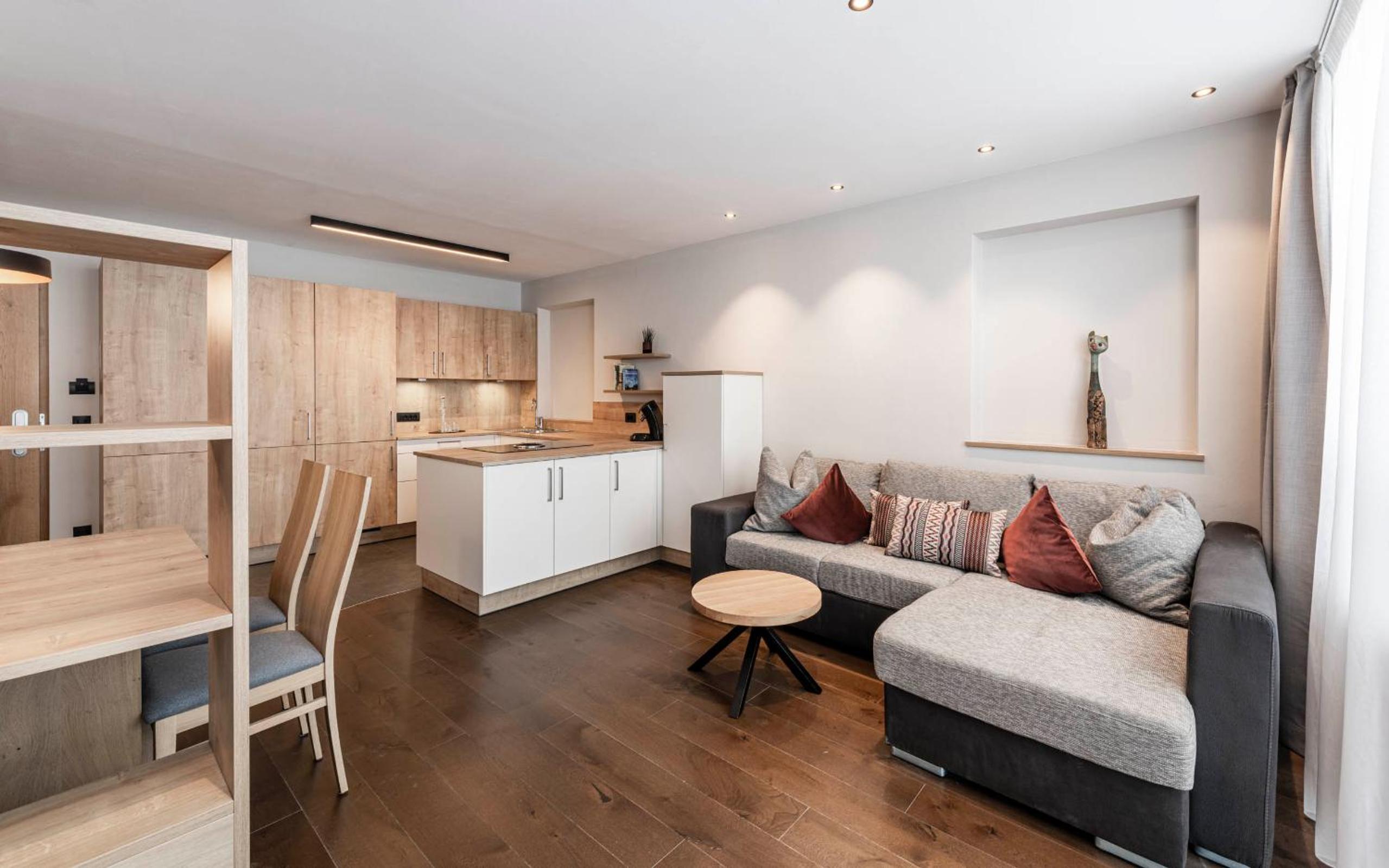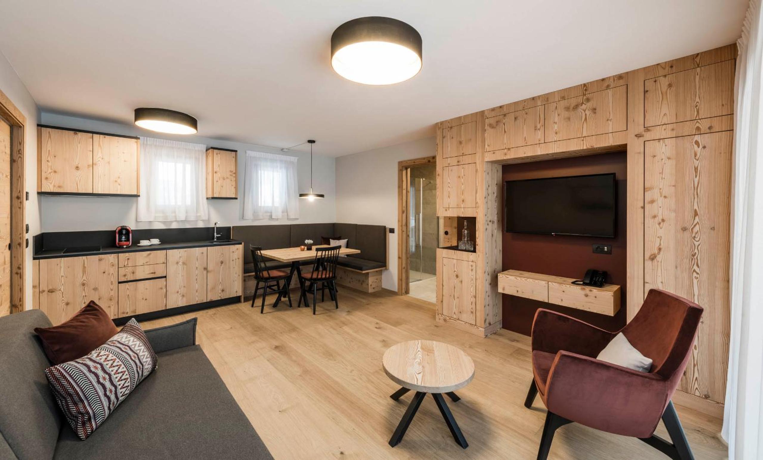 Krásné, nové apartmány. Vkusně a dostatečně zařízené včetně kuchyňky, ve které není pouze mikrovlnná trouba. Pohodlné jsou jak postele, tak i rozkládací gauč, na kterém se pohodlně vyspí dvě děti i dva dospělí. Ideální je poloha v dochozí vzdálenosti od lanovky malého lyžařského střediska. Součástí komplexu je také wellness s malým bazénem (pro děti více než dostačující), 3 saunami a odpočívací místností, malá posilovna, prostorná lyžárna je samozřejmostí. Vítaný bonus je pak kryté podzemní stání. Perfektní byly čerstvé snídaně s bohatým výběrem lokálních surovin. Vše velmi kvalitní a chutné. Rozhodně se vrátíme!