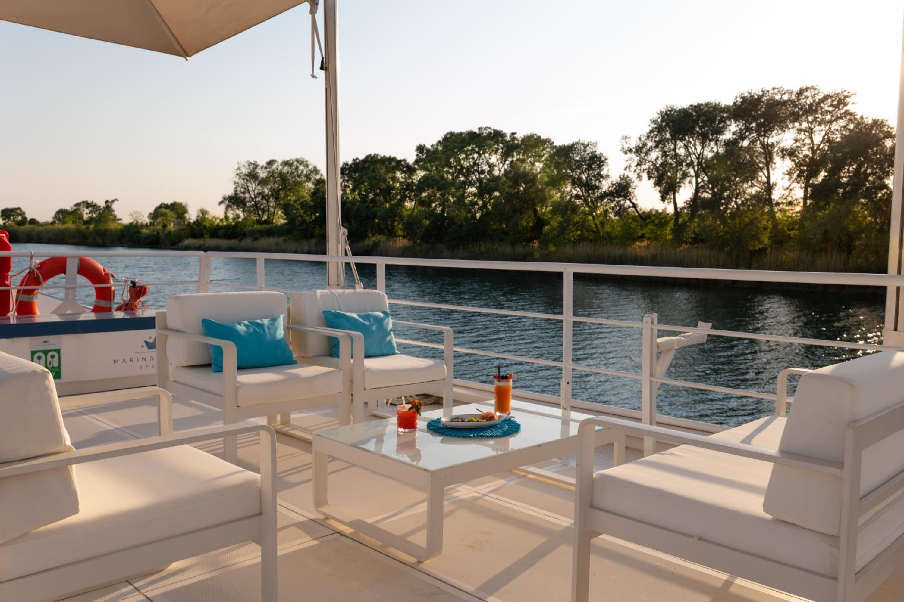 Experience the ultimate comfort in our air-conditioned houseboats with private terraces and multiple living spaces. Enjoy the unique dining experience on a large ferry boat located on the river, adding a touch of exclusivity to your stay.