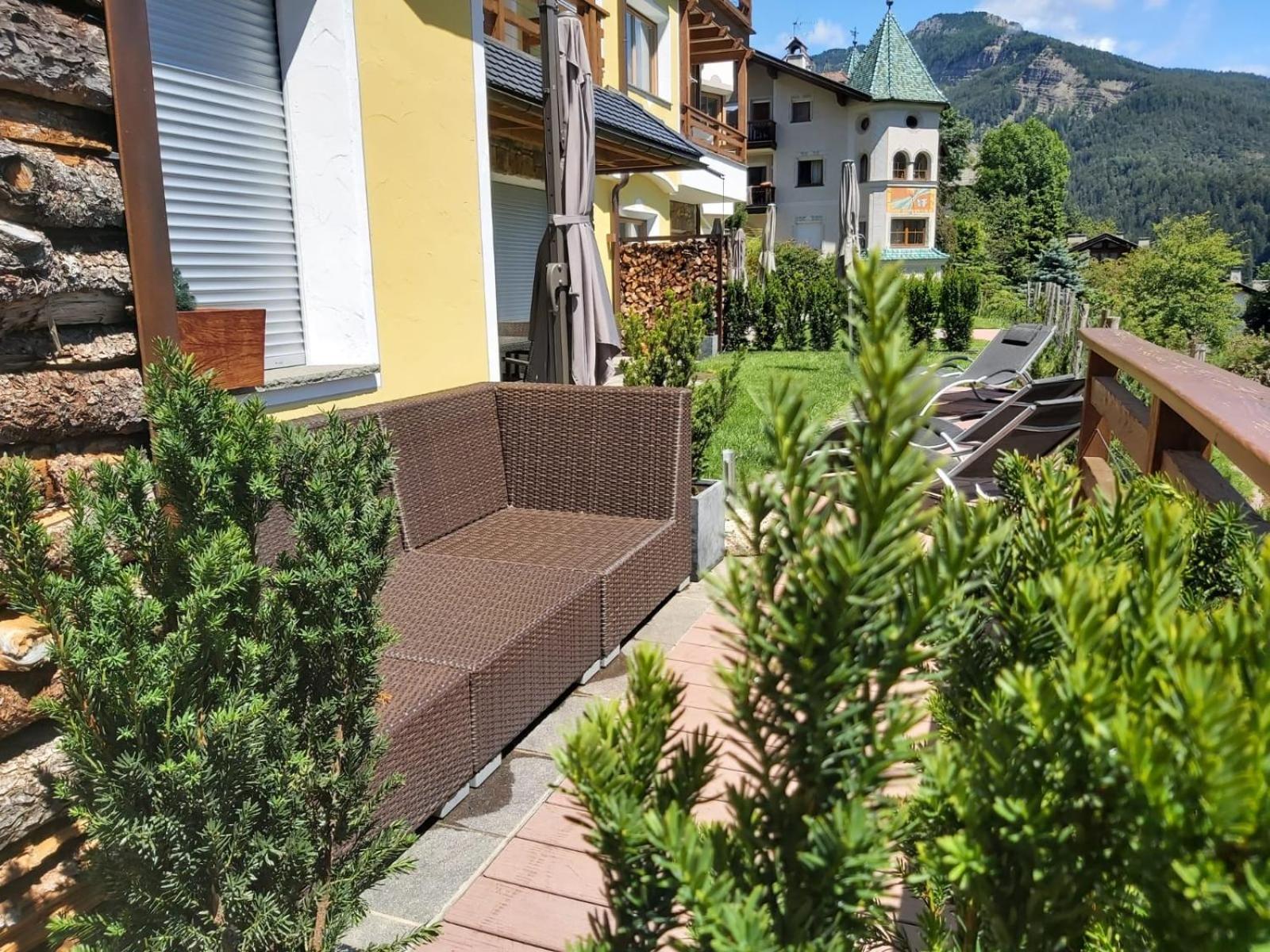 Experience the beauty of the mountains from your private terrace at Chalet Alpinflair. The fully equipped apartments offer modern amenities including flat-screen TVs and kitchenettes.